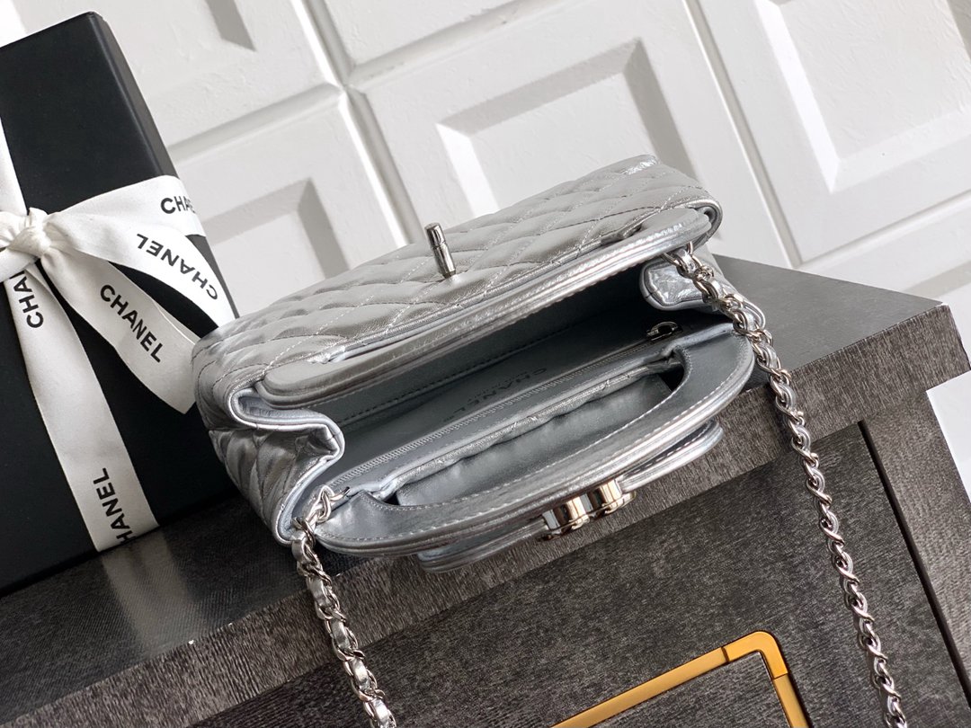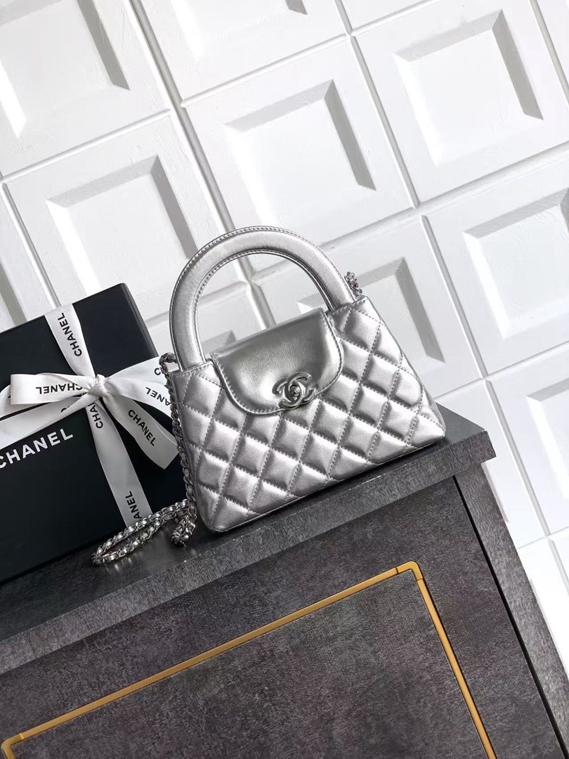 chanel 25a Kelly Nano Bag sliver shiny lambskin sliver hardware