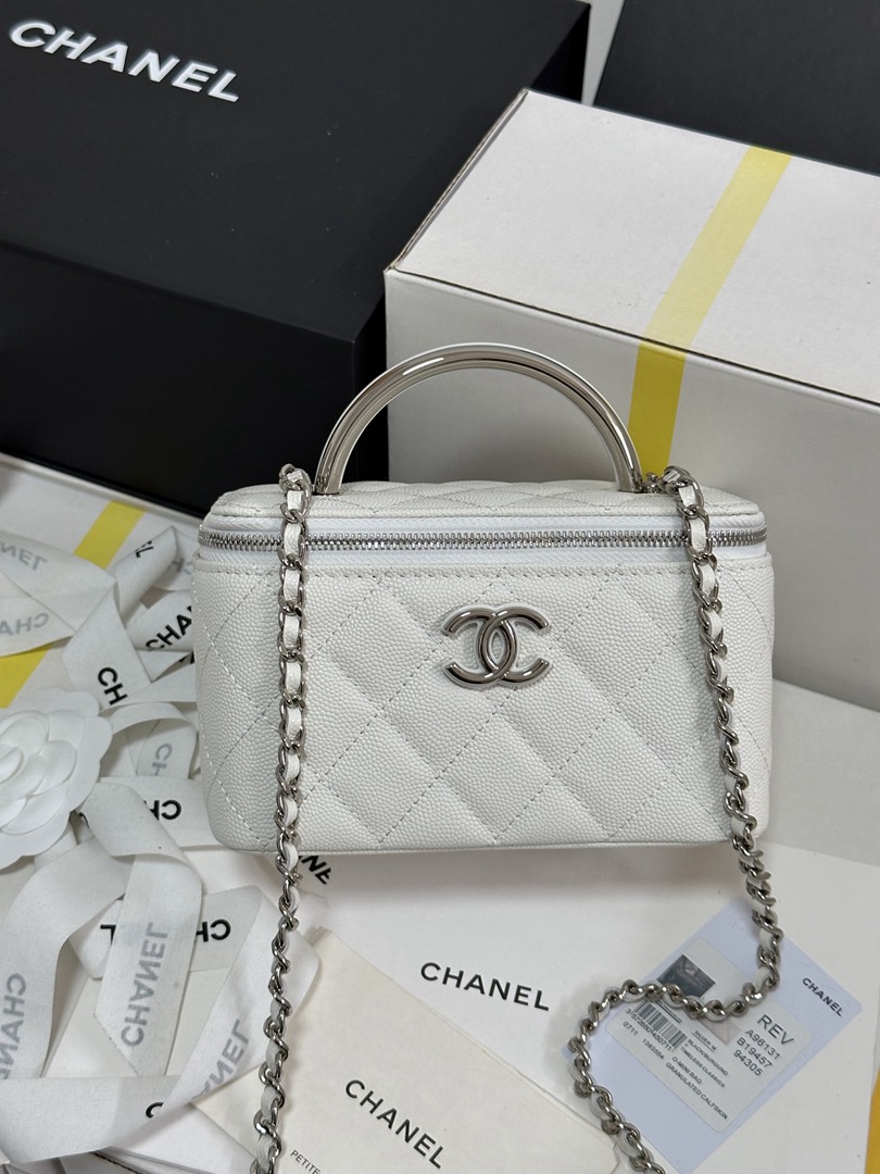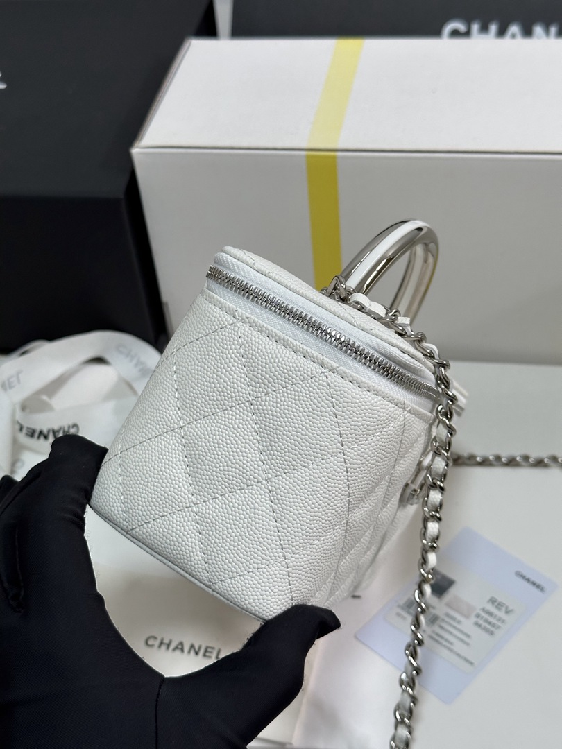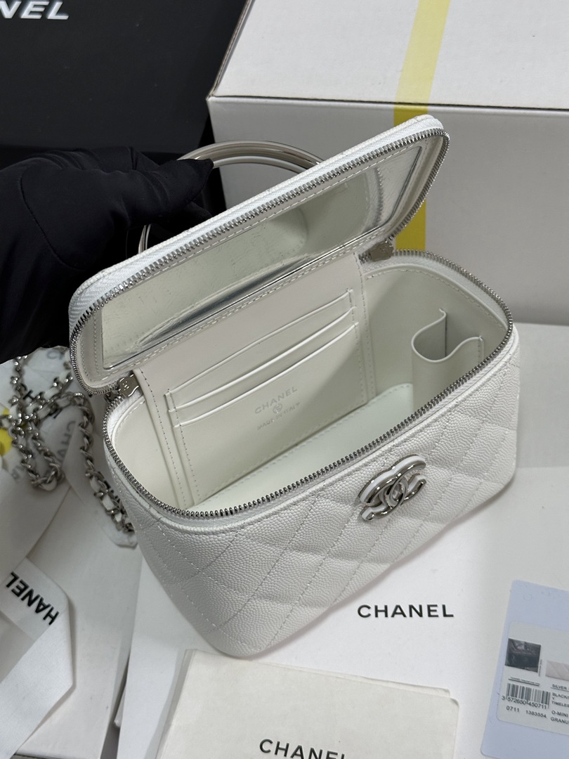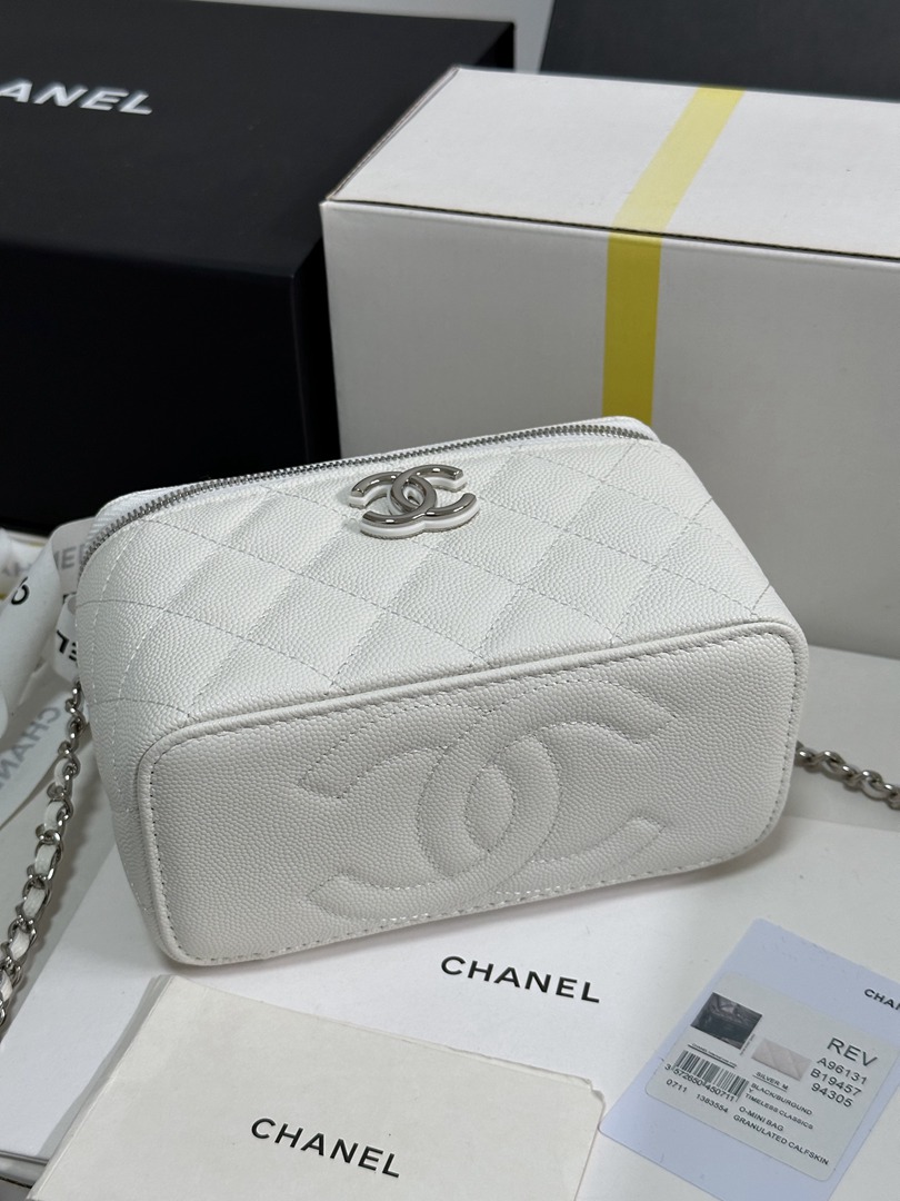chanel 25p Vanity Case bag white caviar calfskin sliver hardware
