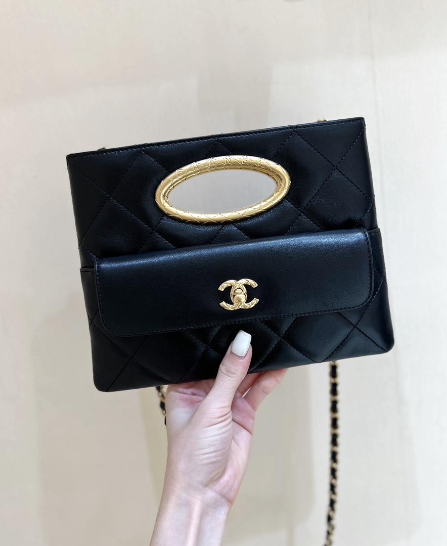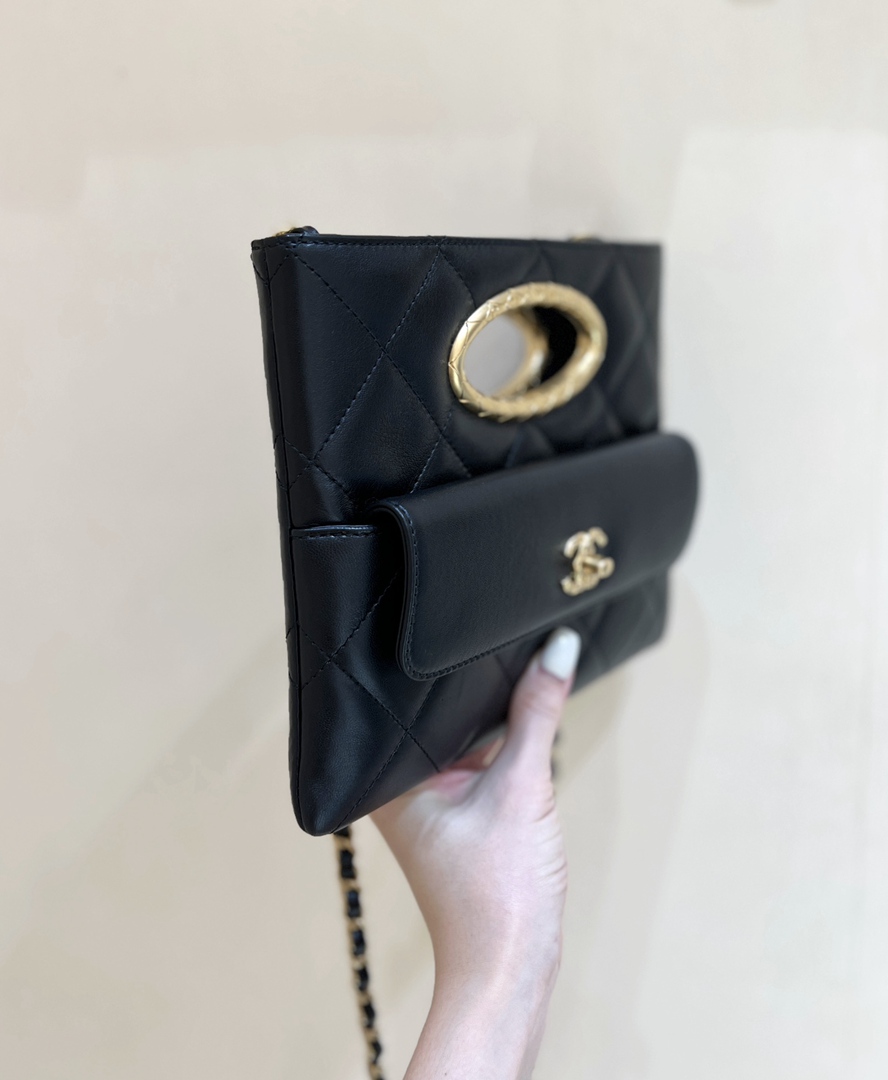chanel 24b clutch bag black shiny lambskin gold hardware