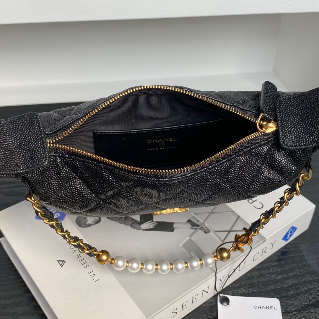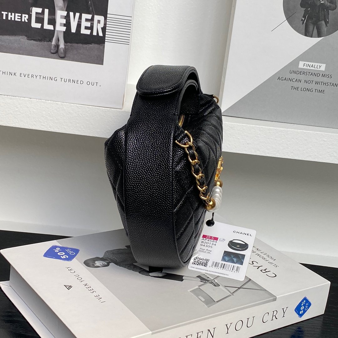chanel 25s Pearl Crescent bag black grained calfskin gold hardware