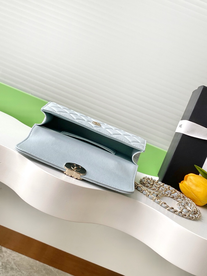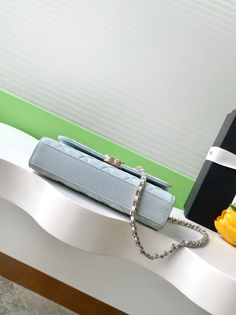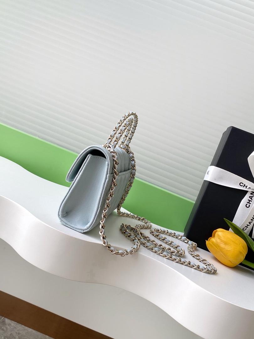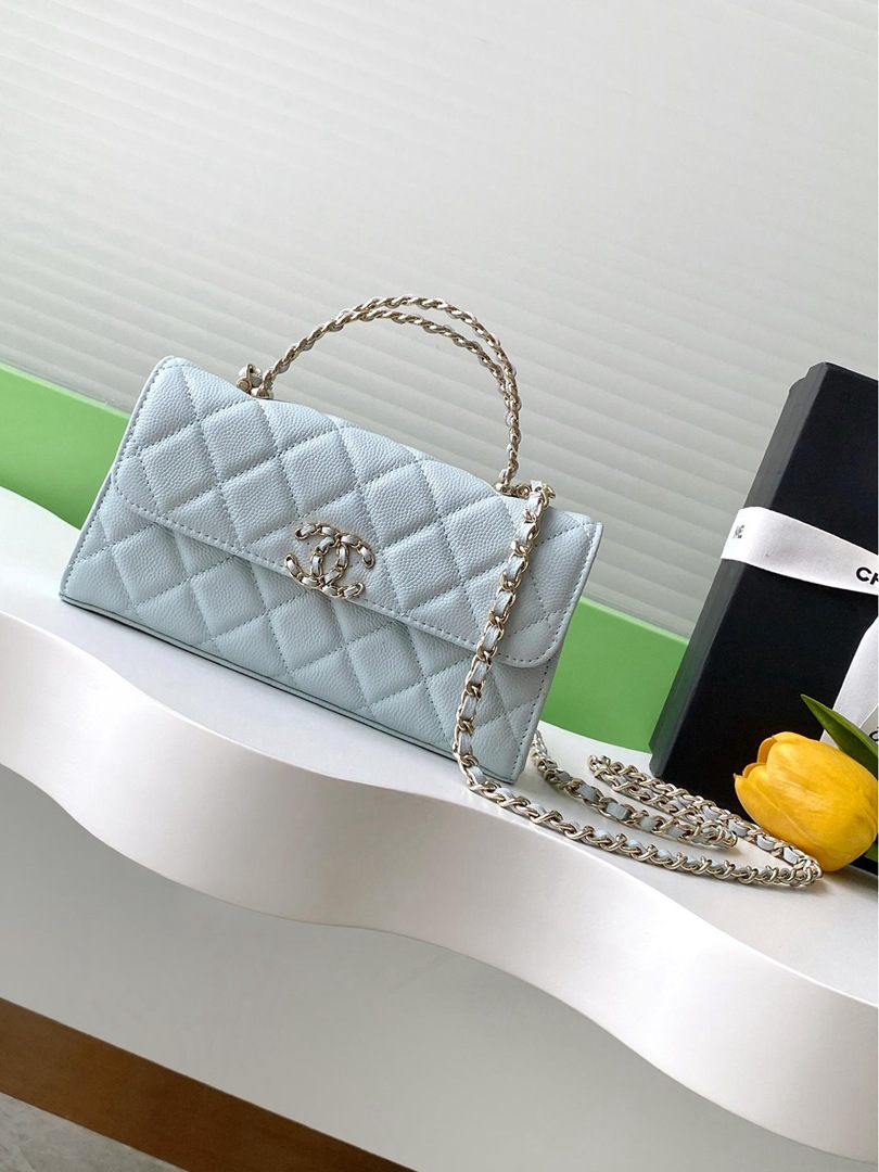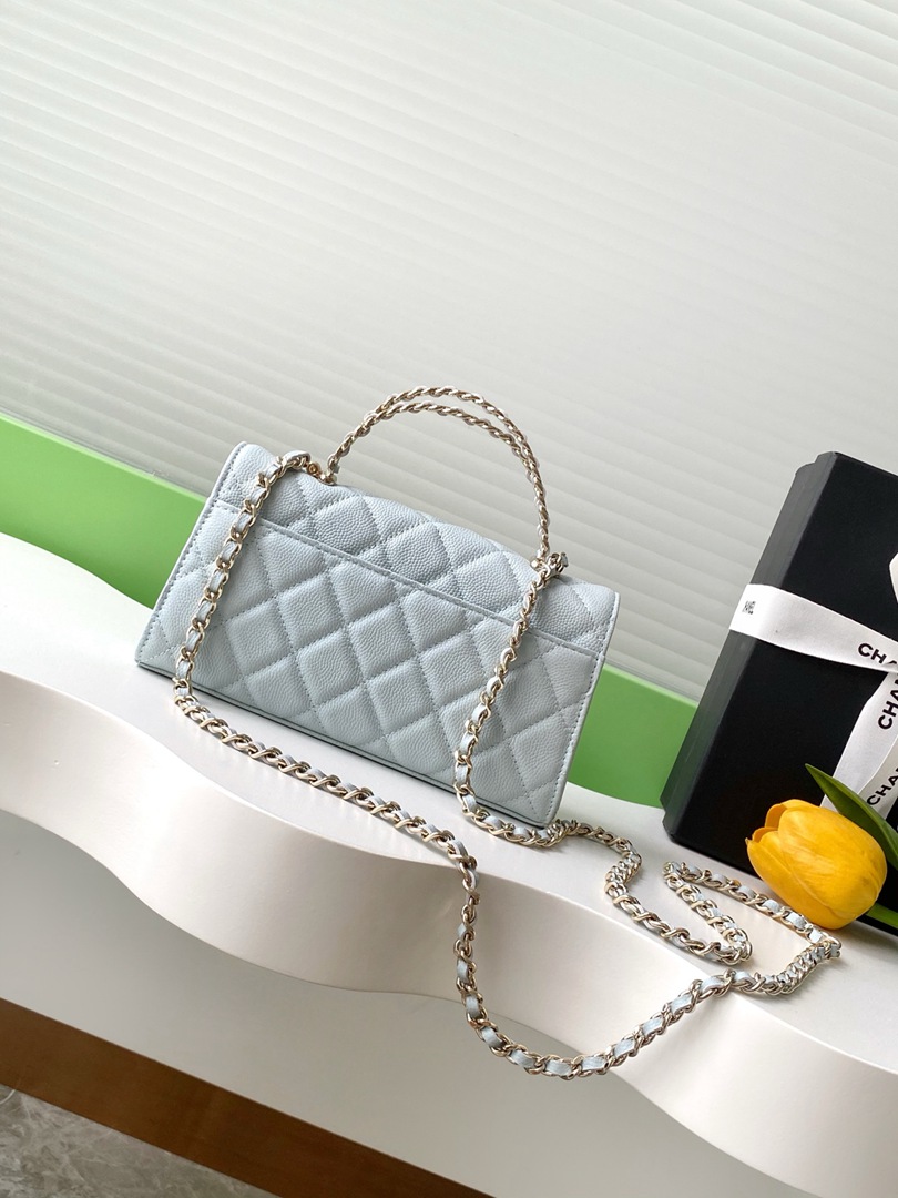chanel 25a Cross handle horizontal kelly bag lignt blue grained calfskin sliver hardware