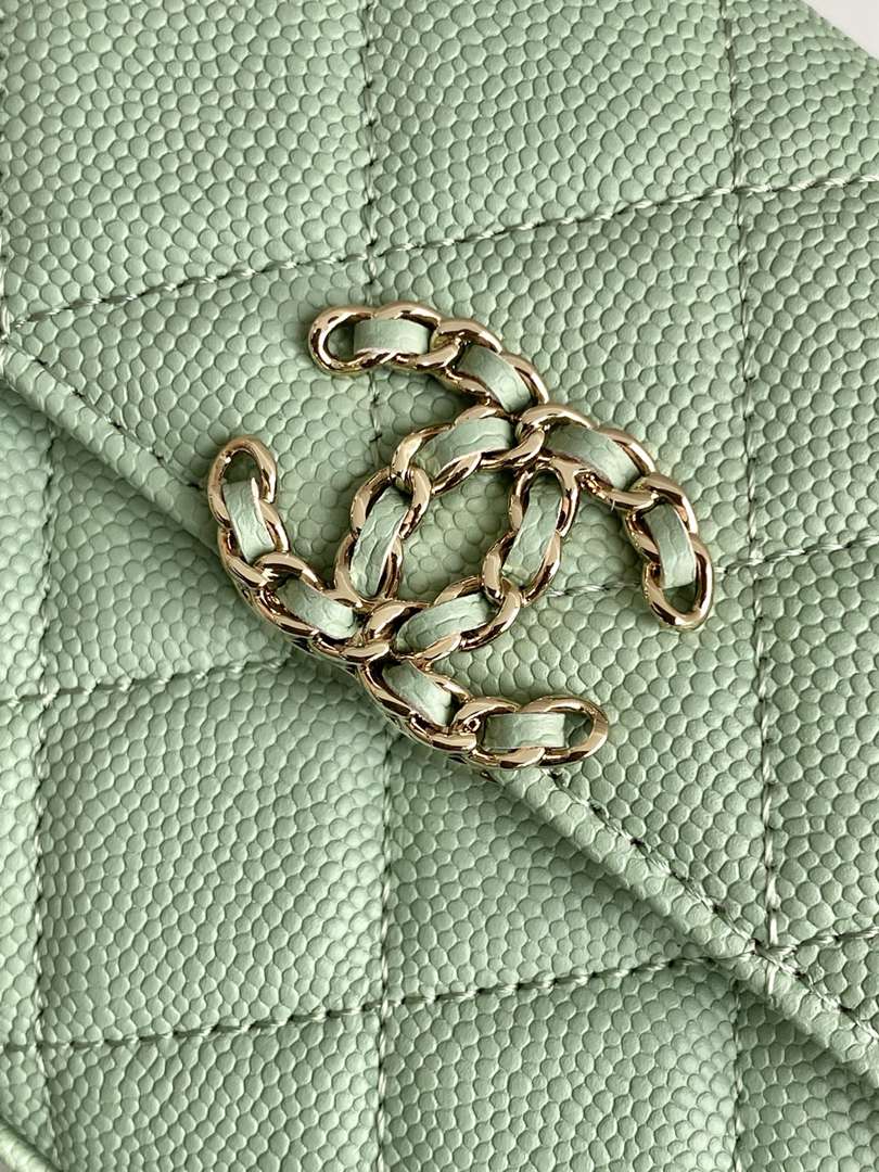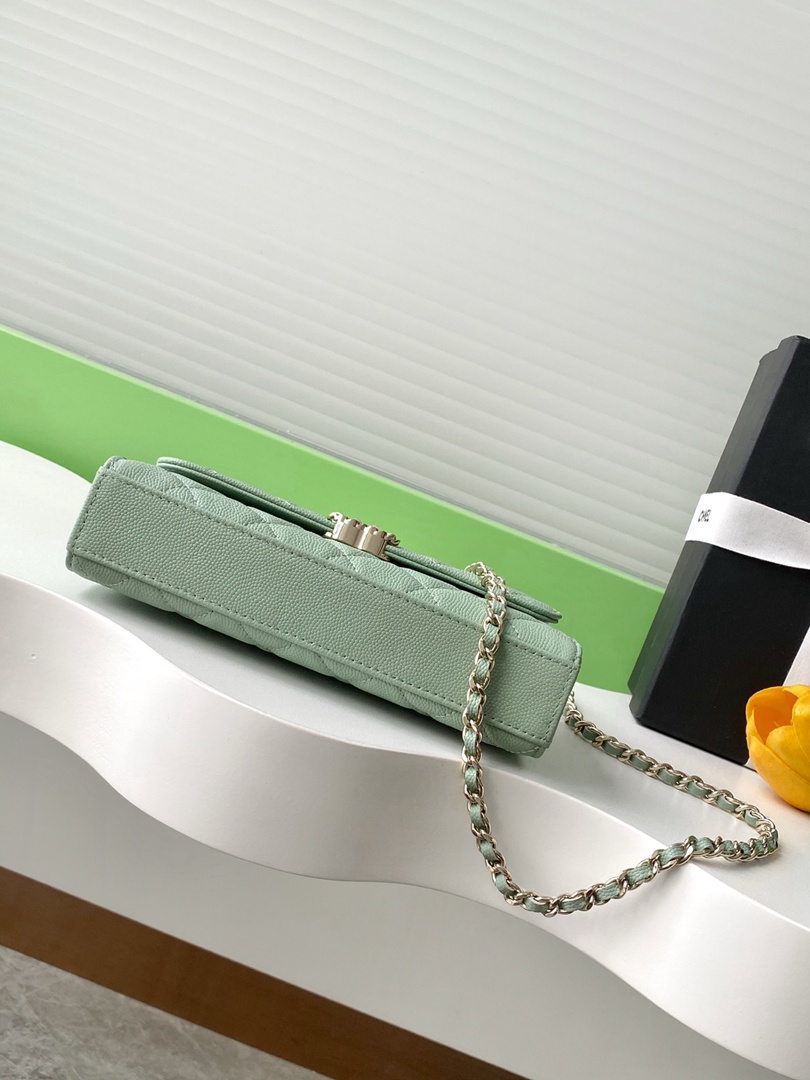 chanel 25a Cross handle horizontal kelly bag light Green grained calfskin sliver hardware