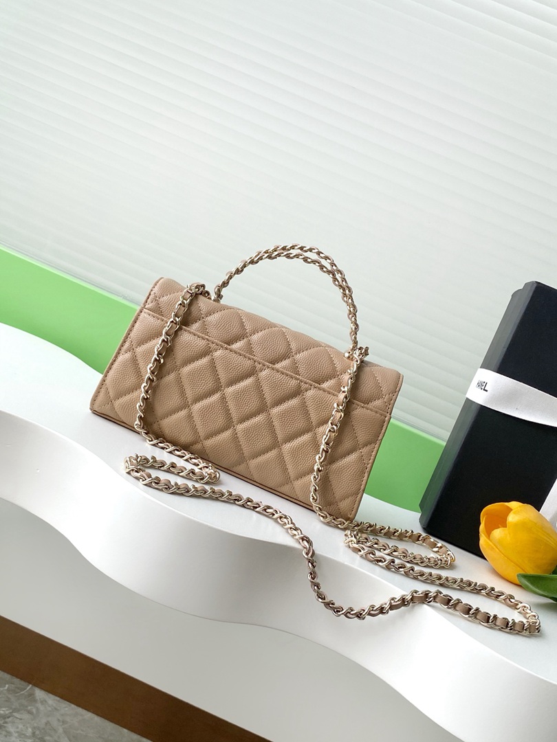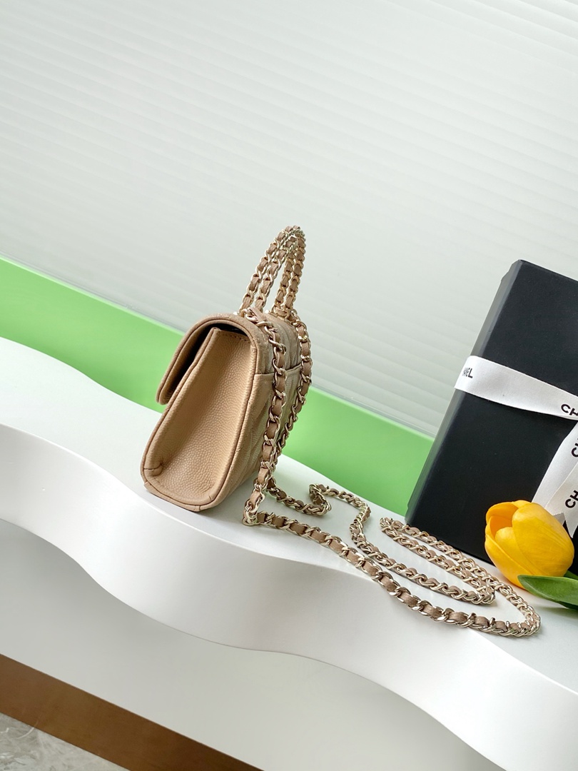 chanel 25a Cross handle horizontal kelly bag lignt apricot grained calfskin sliver hardware