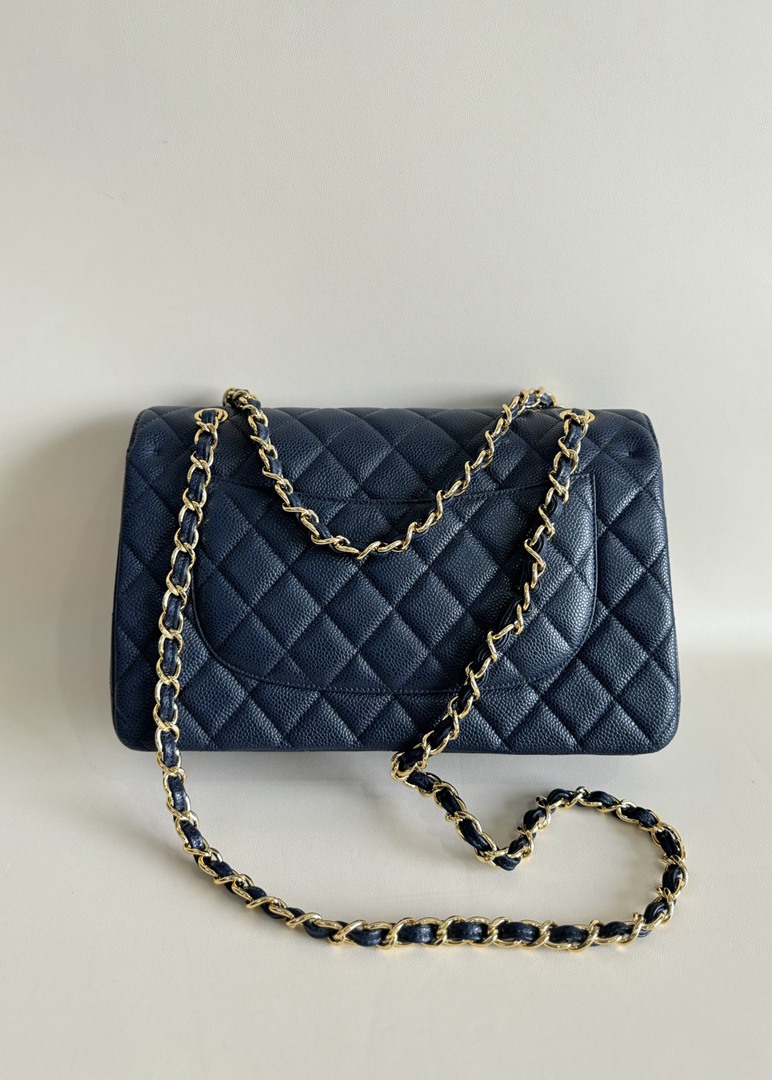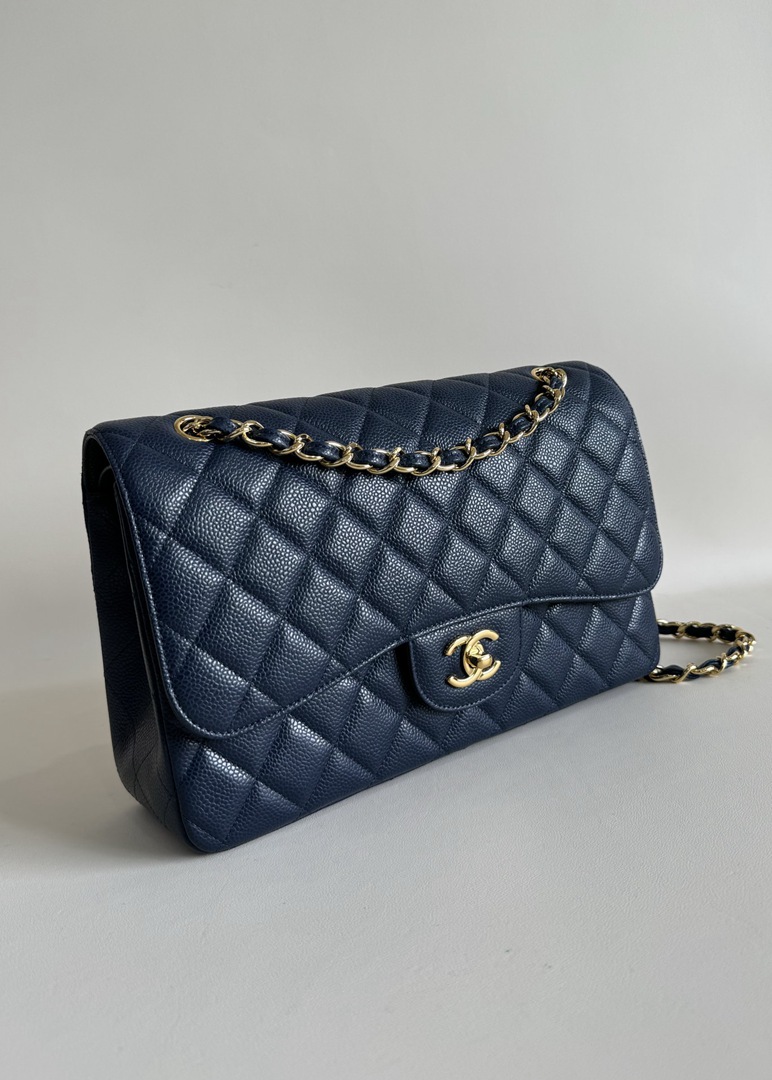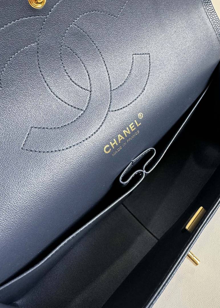 chanel cf navy Caviar calfskin gold hardware