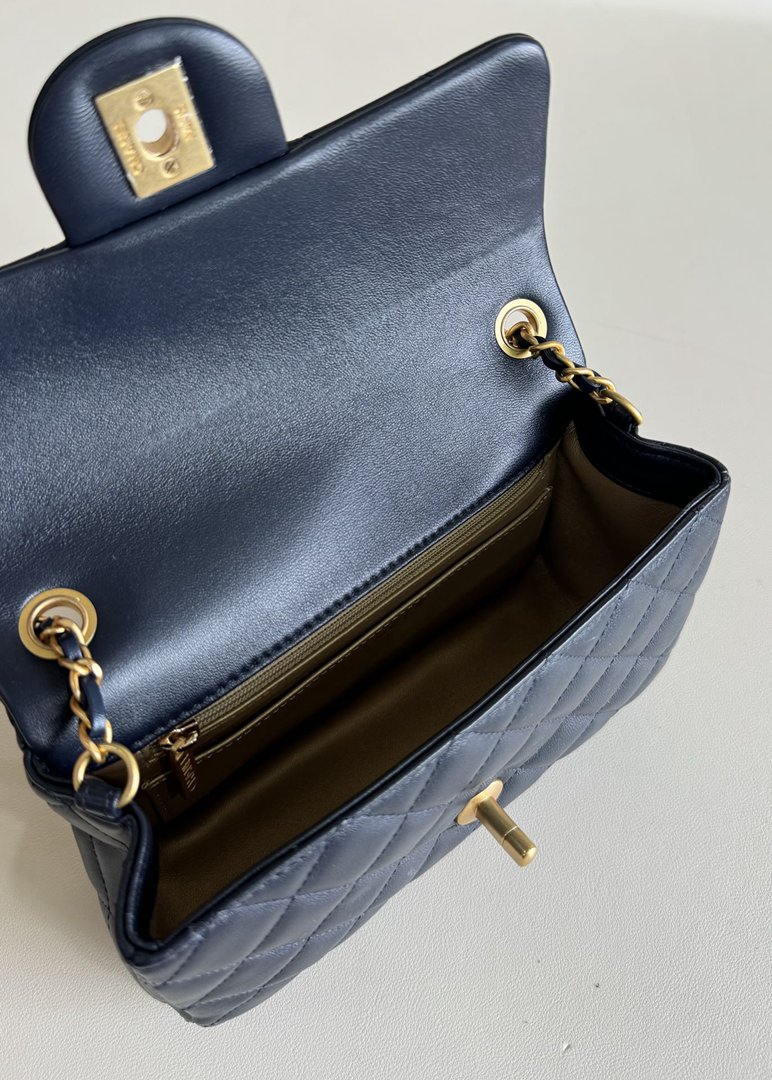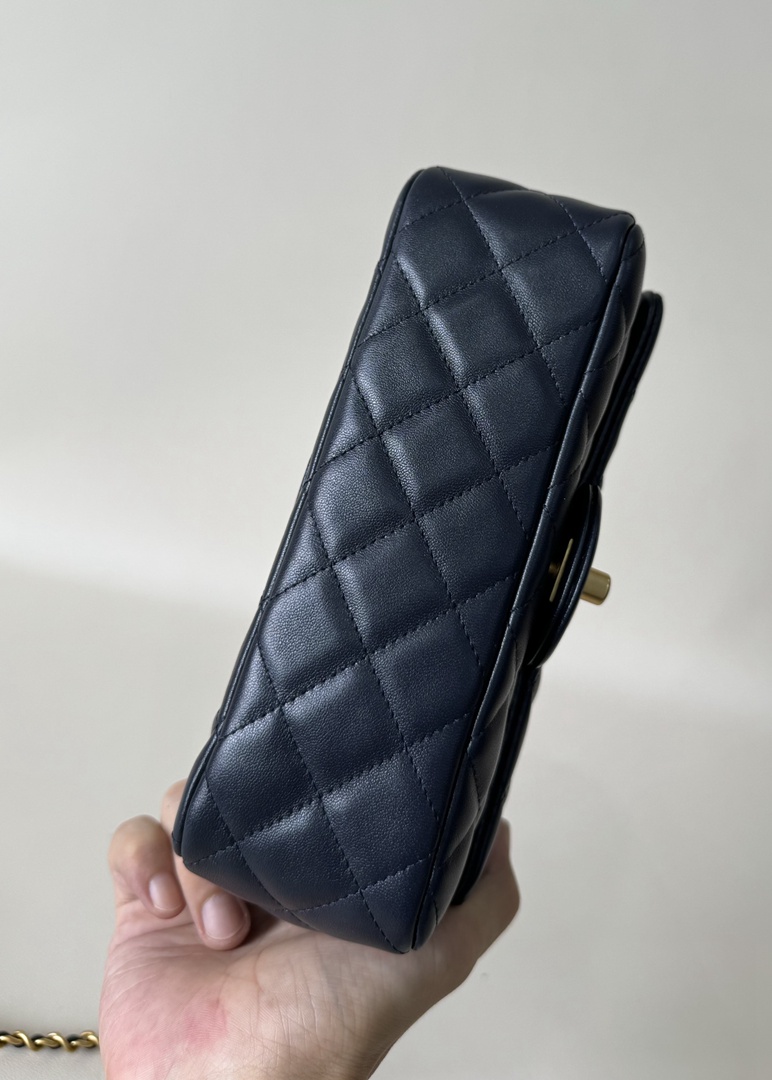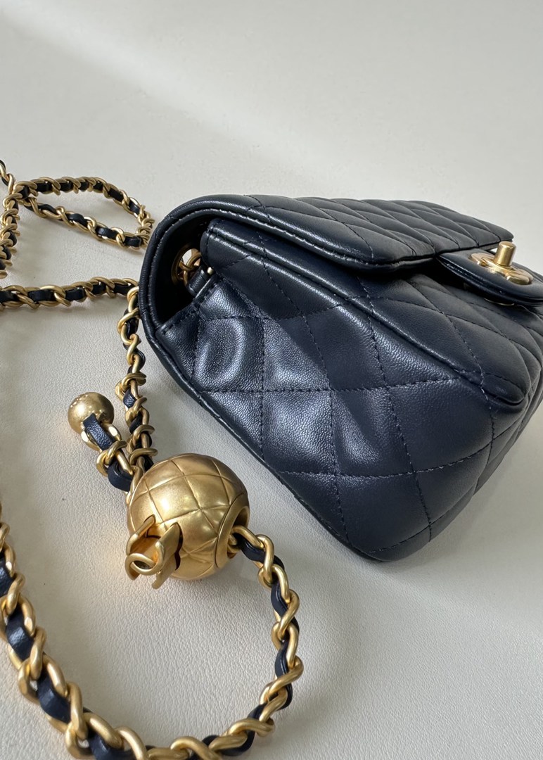 chanel 2020 Golden Globe mini cf navy shiny lambskin gold hardware