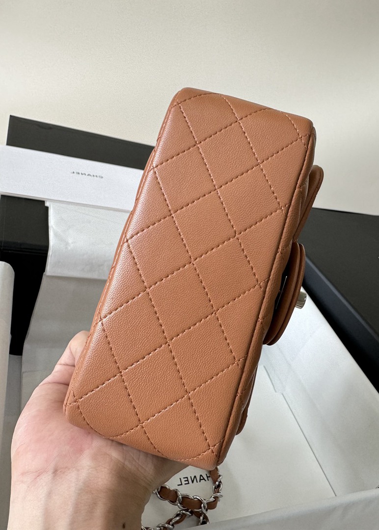 chanel mini cf Caramel shiny lambskin sliver hardware