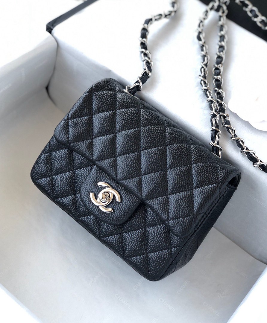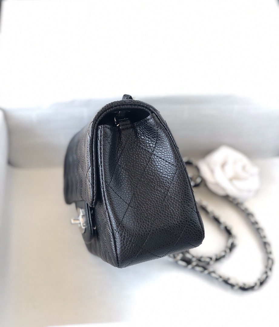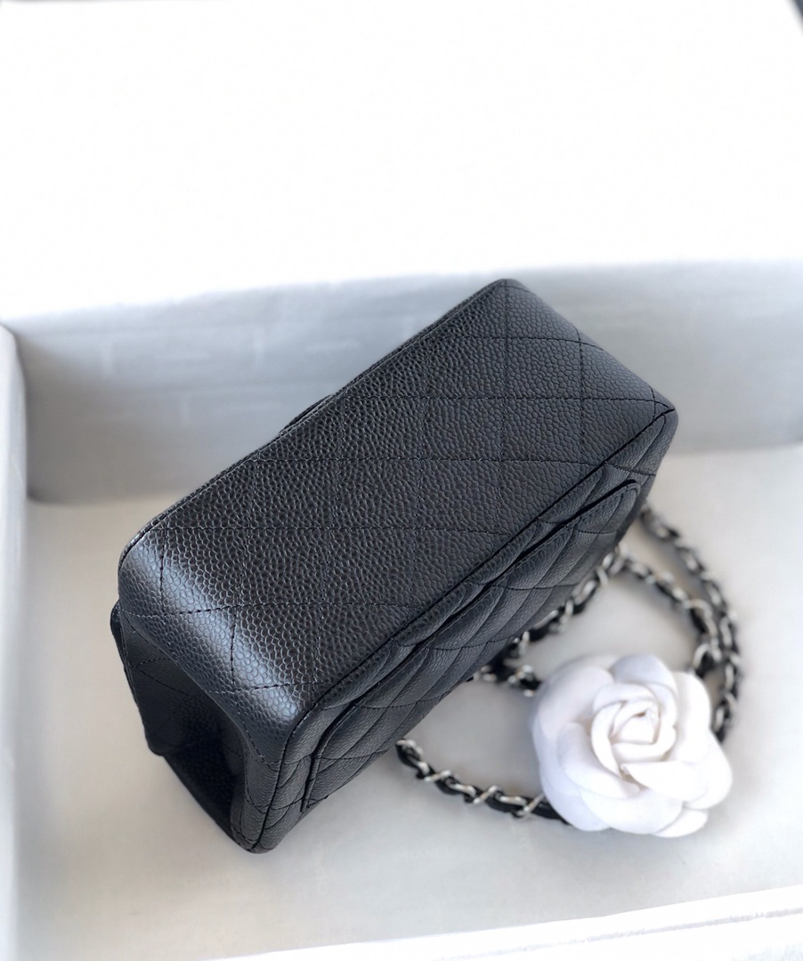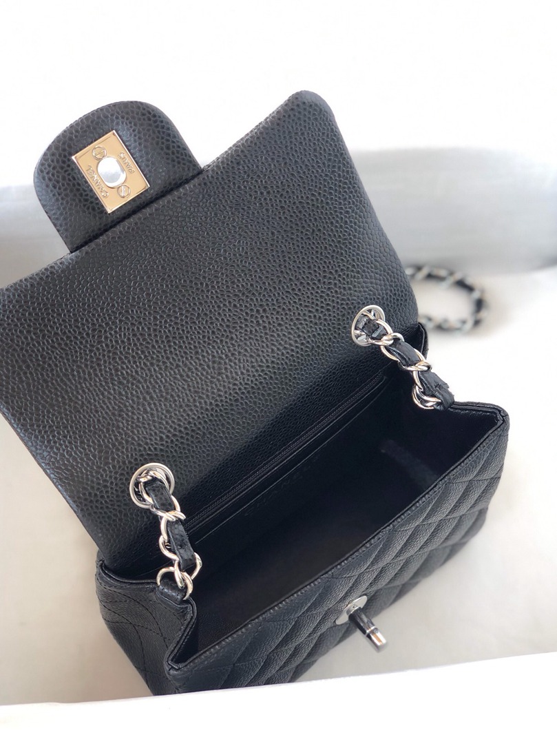 chanel mini cf black Caviar calfskin sliver hardware
