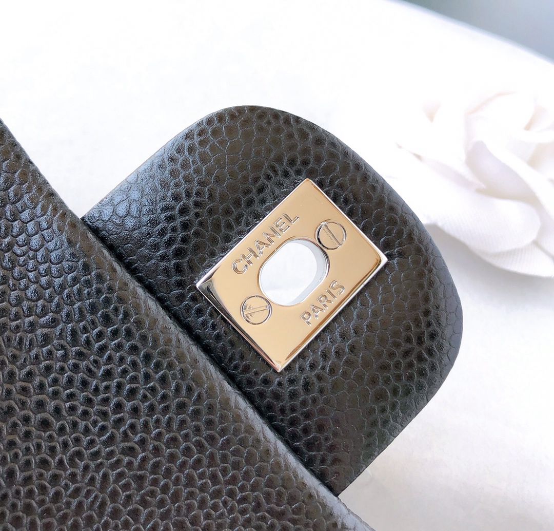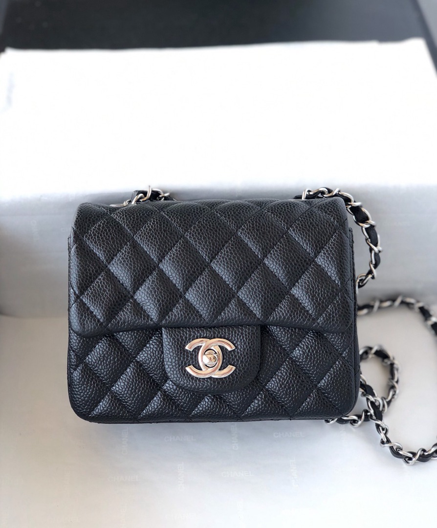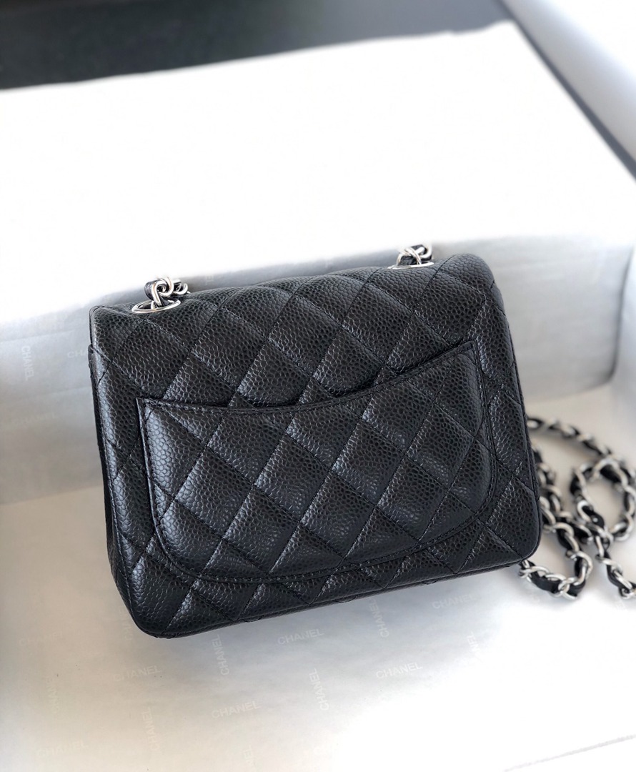 chanel mini cf black Caviar calfskin sliver hardware