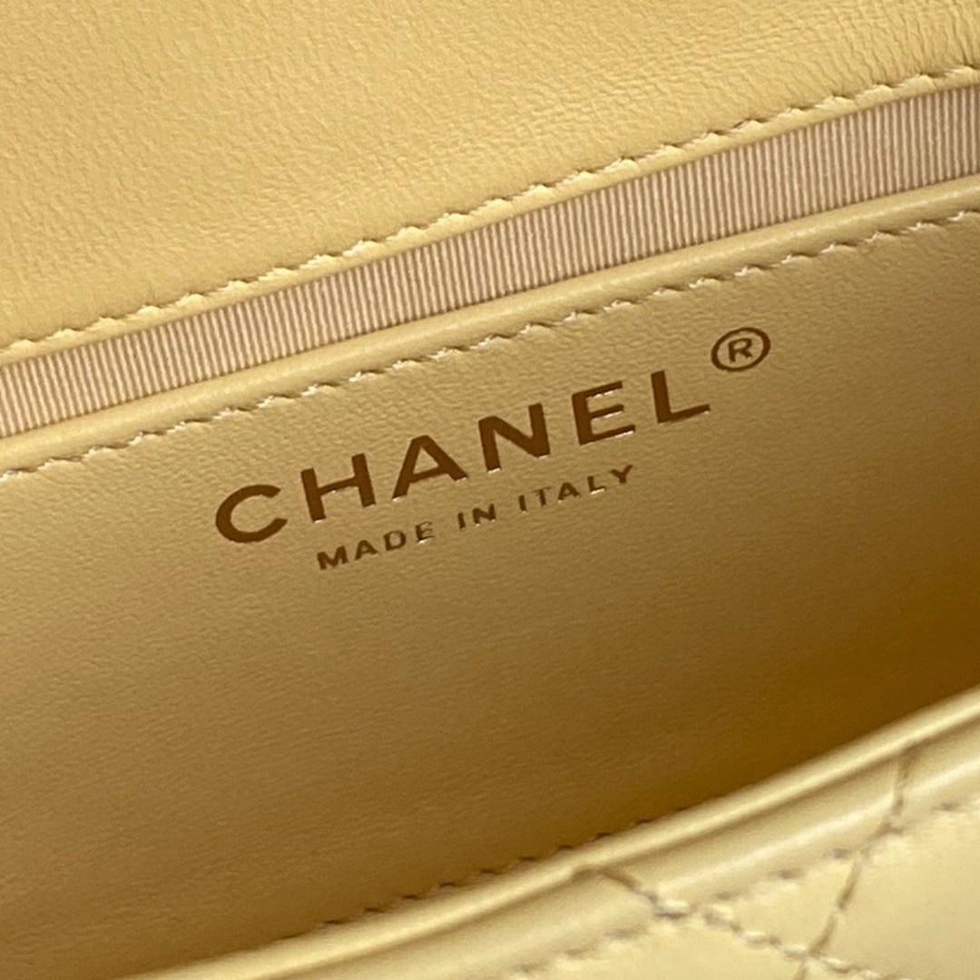 chanel 25c top handle cf yellow shiny lambskin Hollow gold cc&gold hardware small