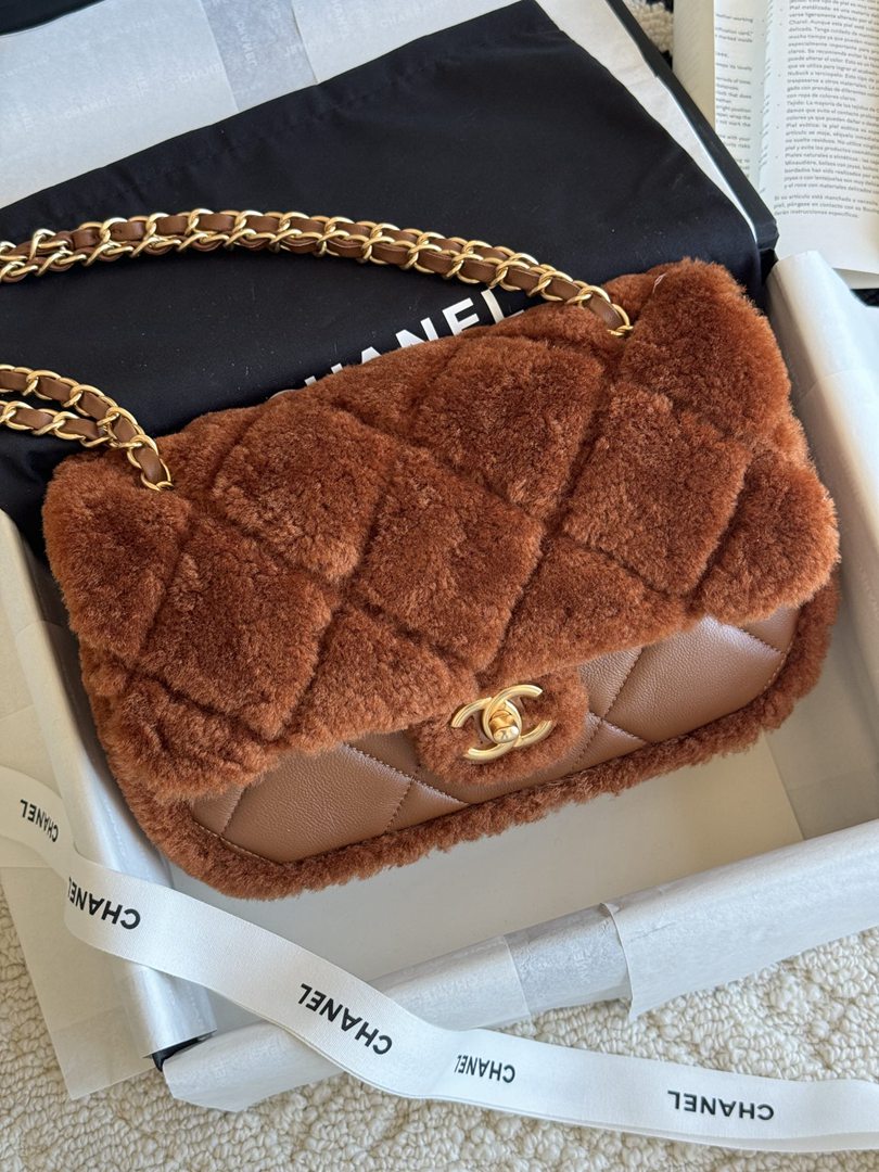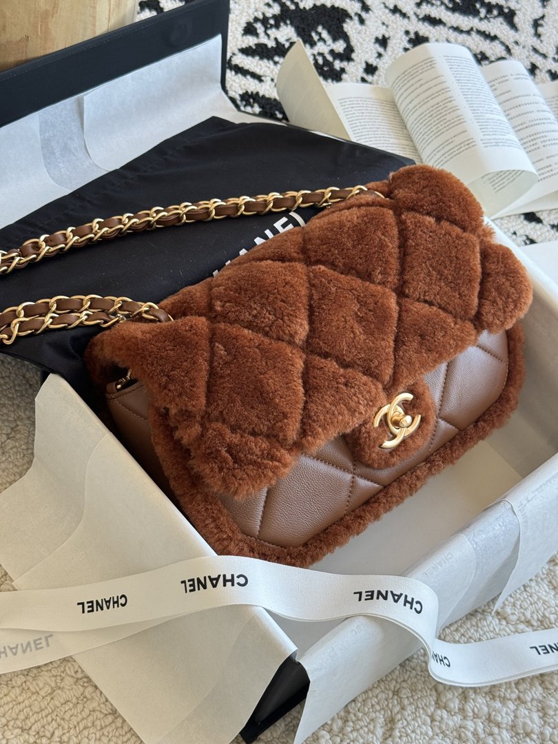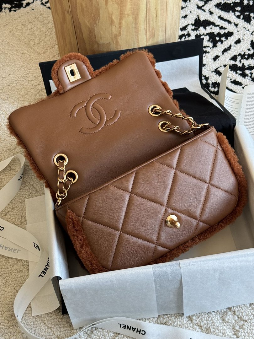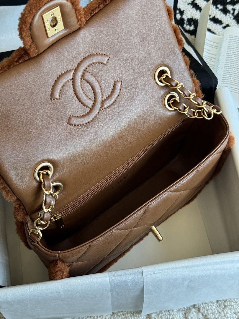 chanel 24k cf brown Teddy Bear Shearling copper hardware