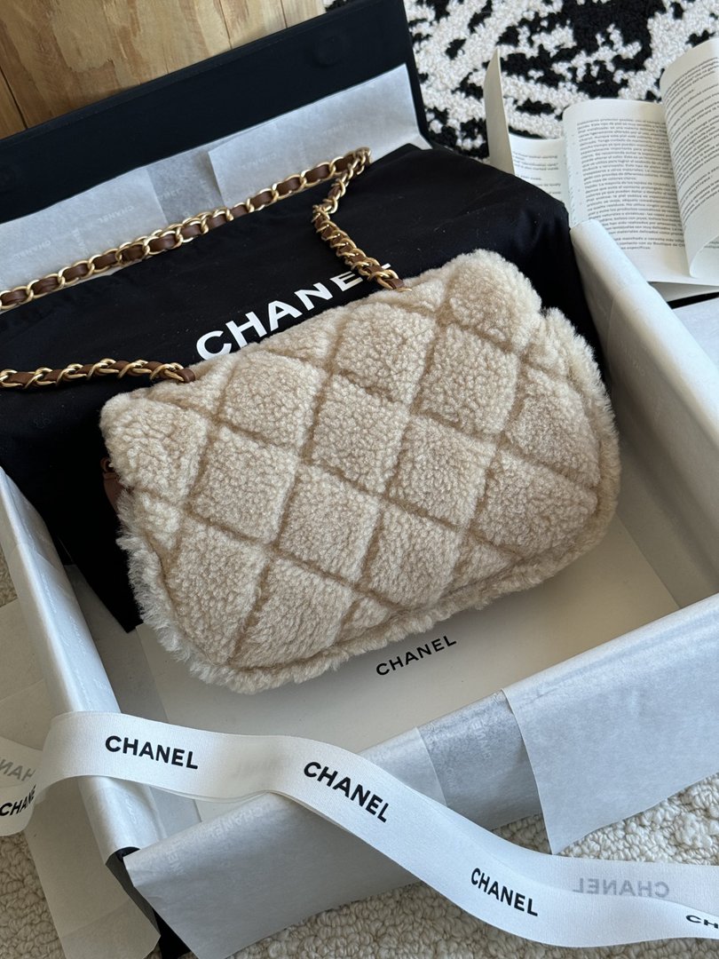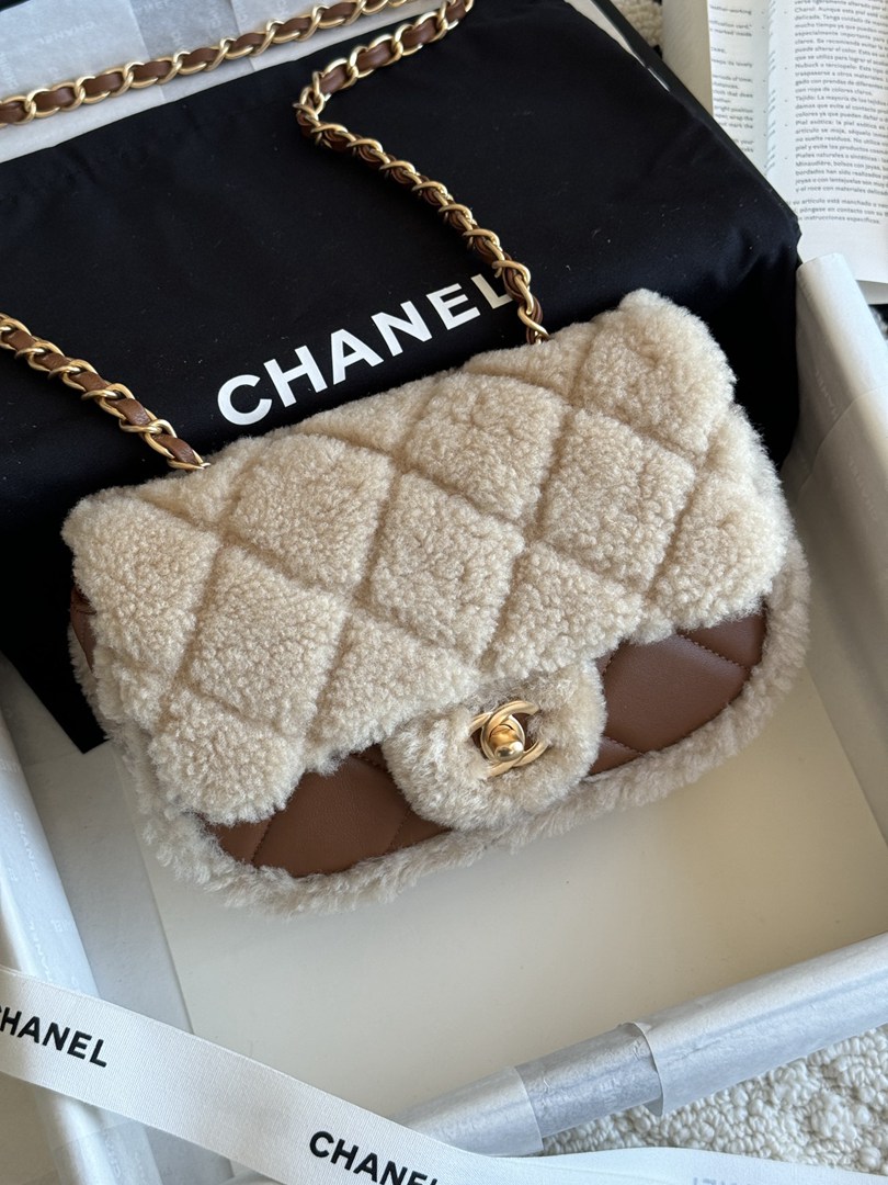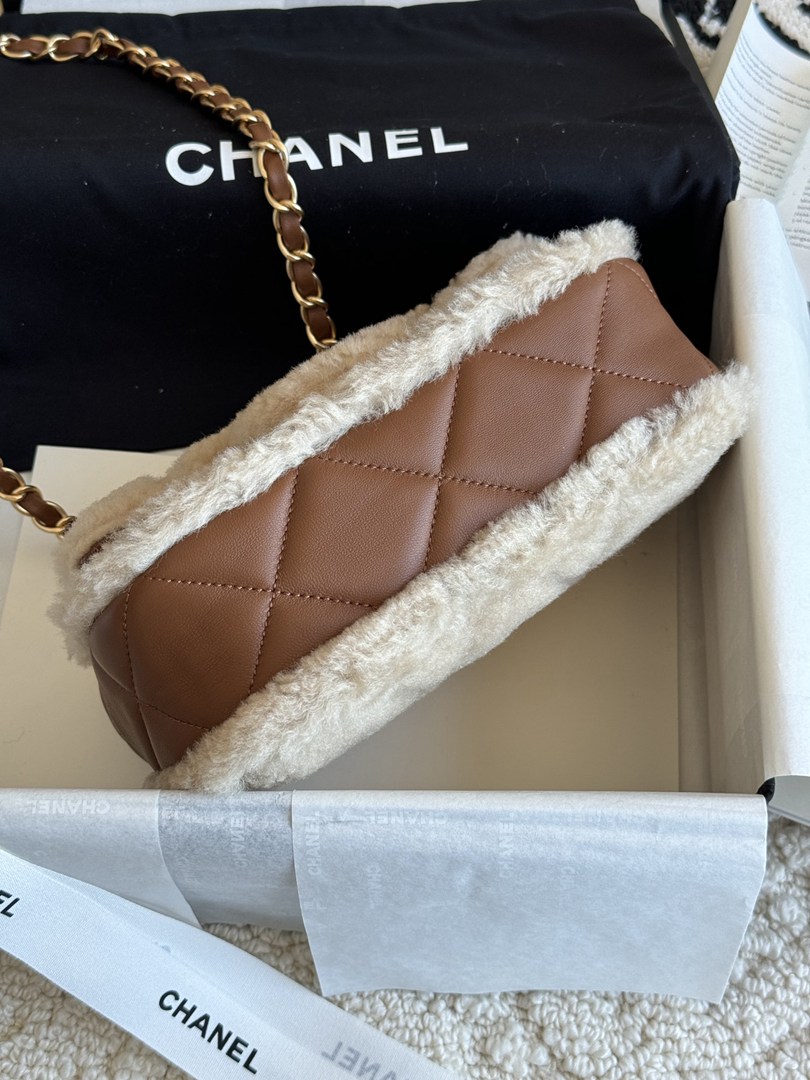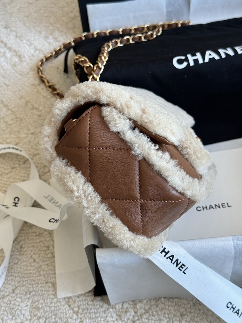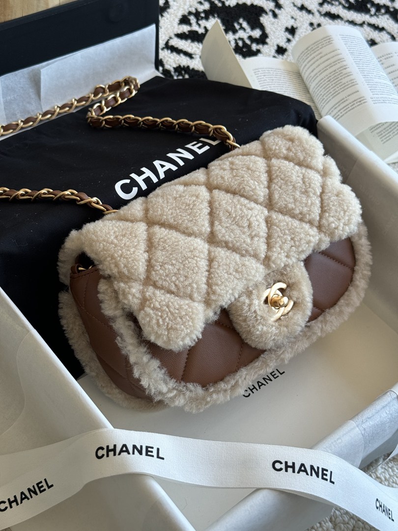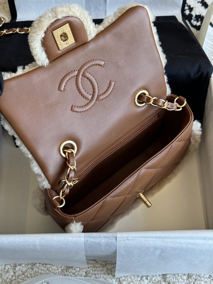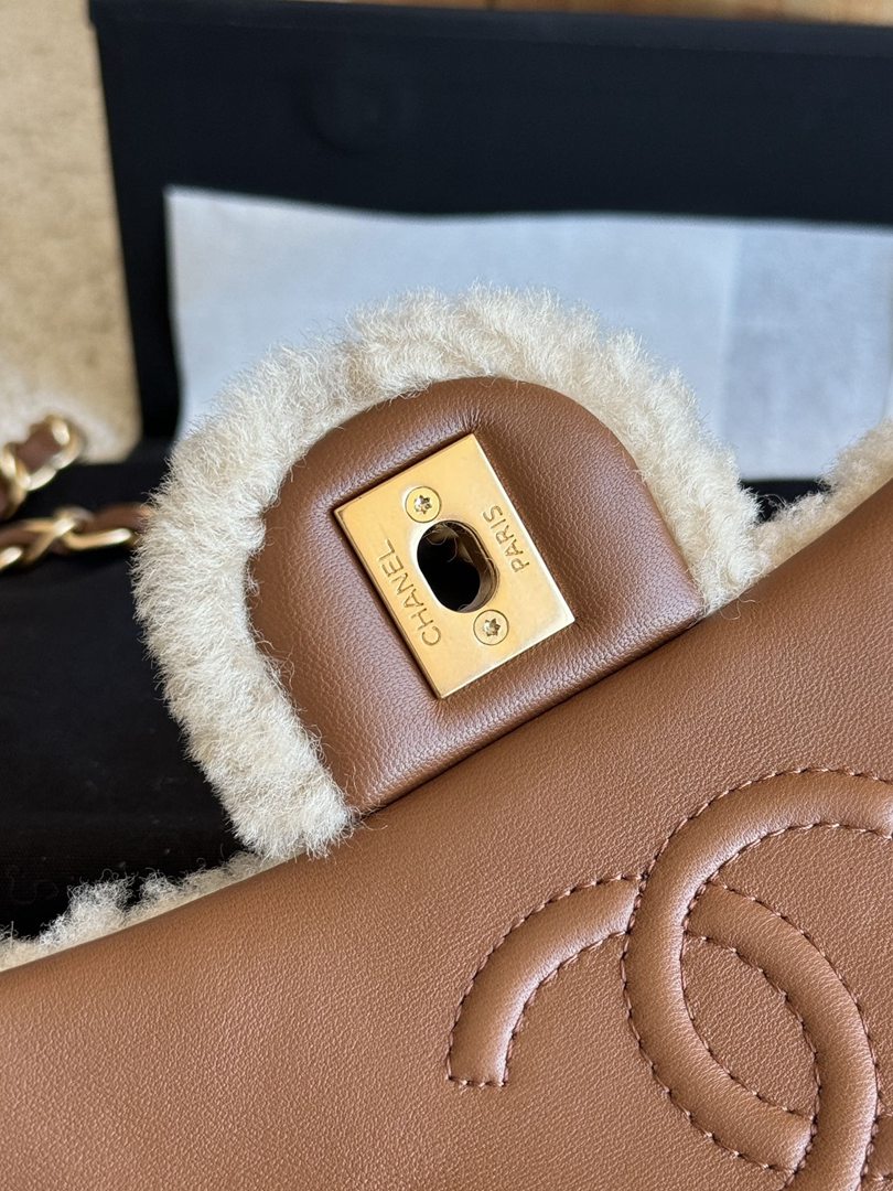 chanel 24k cf Beige Brown Teddy Bear Shearling copper hardware small