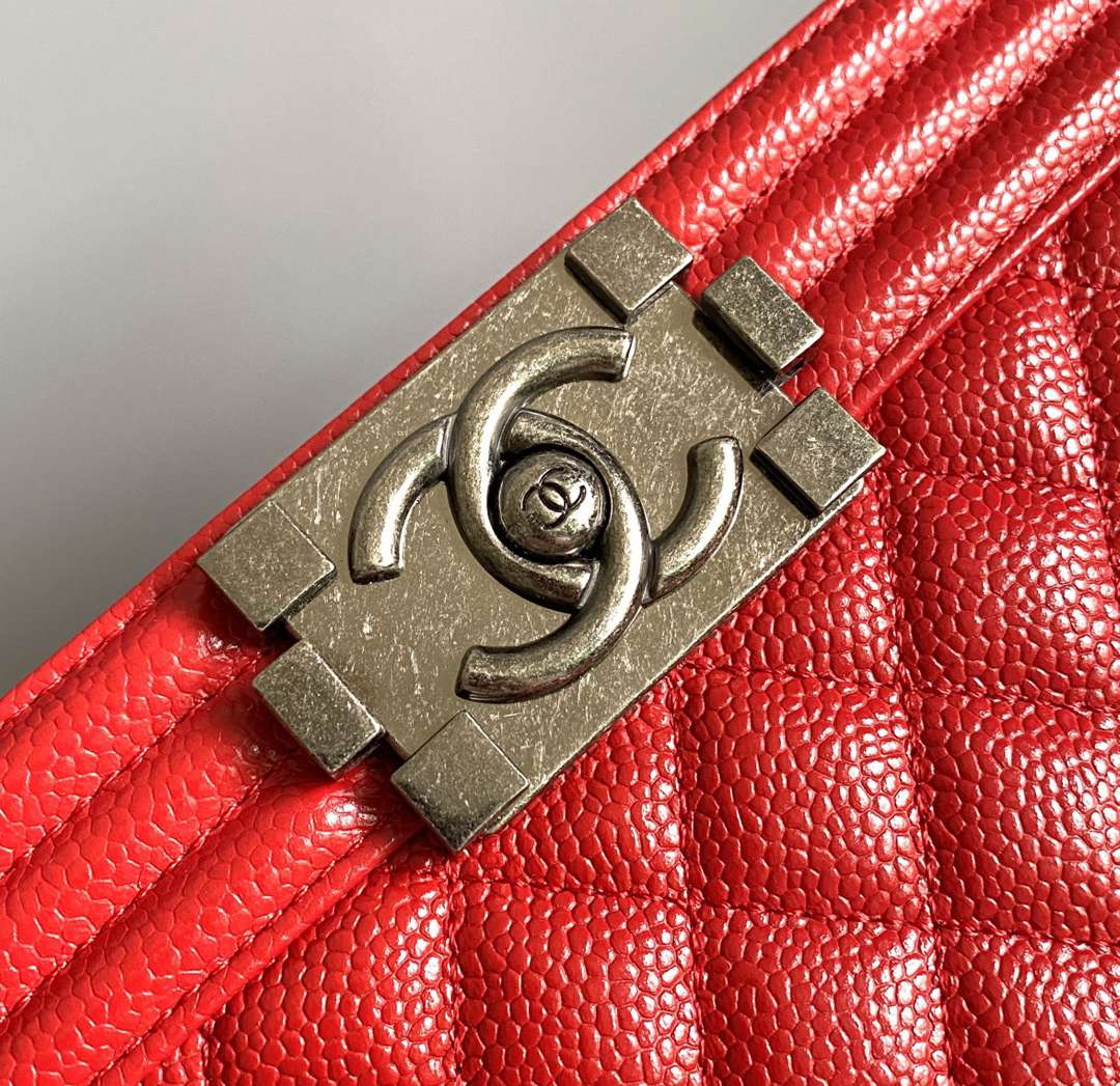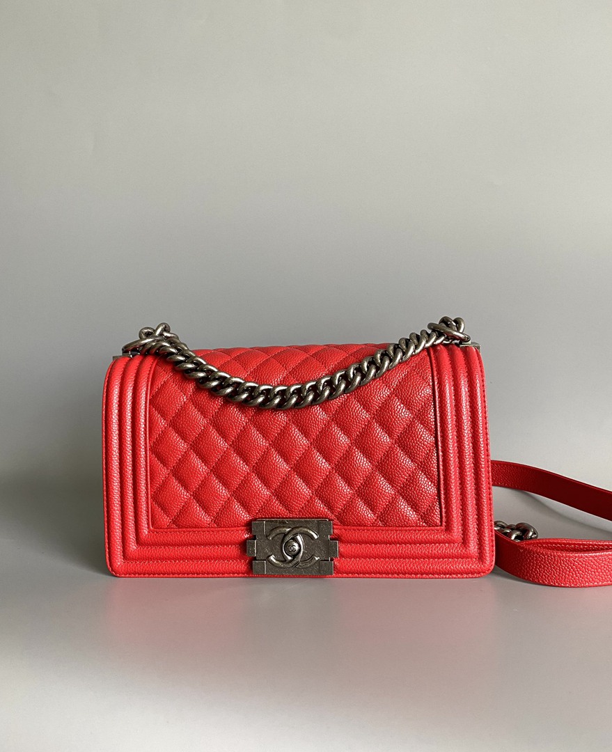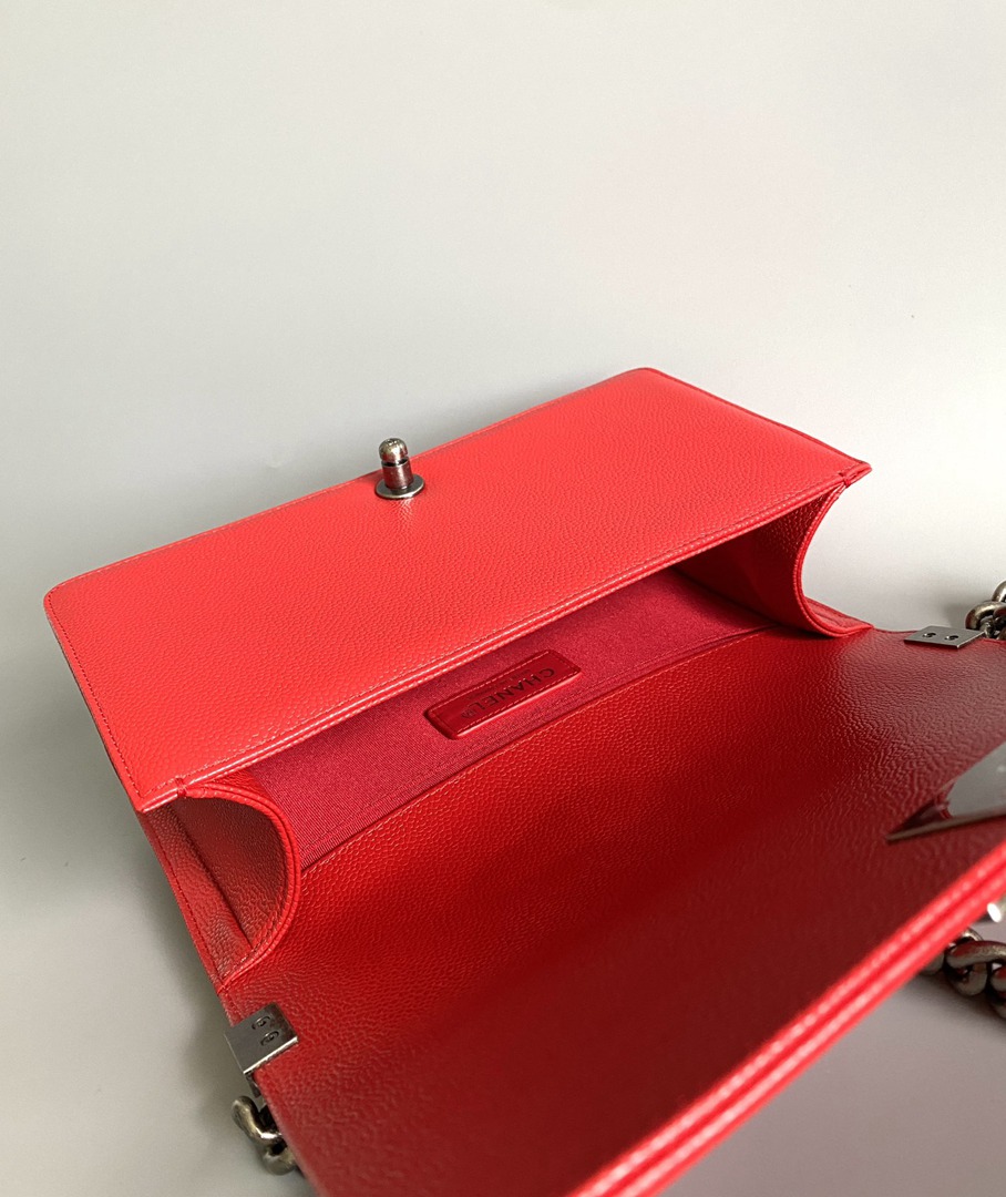 chanel mini leboy red Caviar Quilted sliver hardware medium