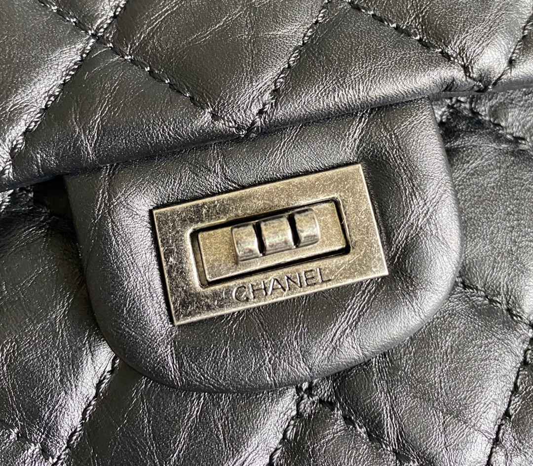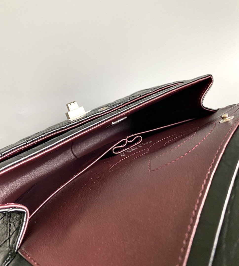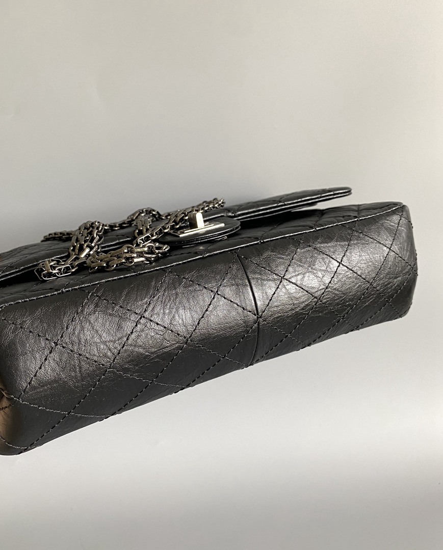 chanel 2.55 black aged calfskin sliver hardware large