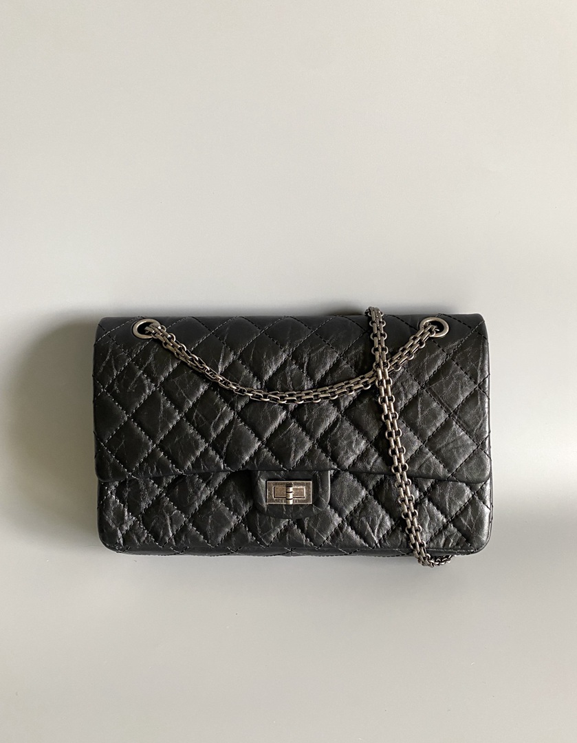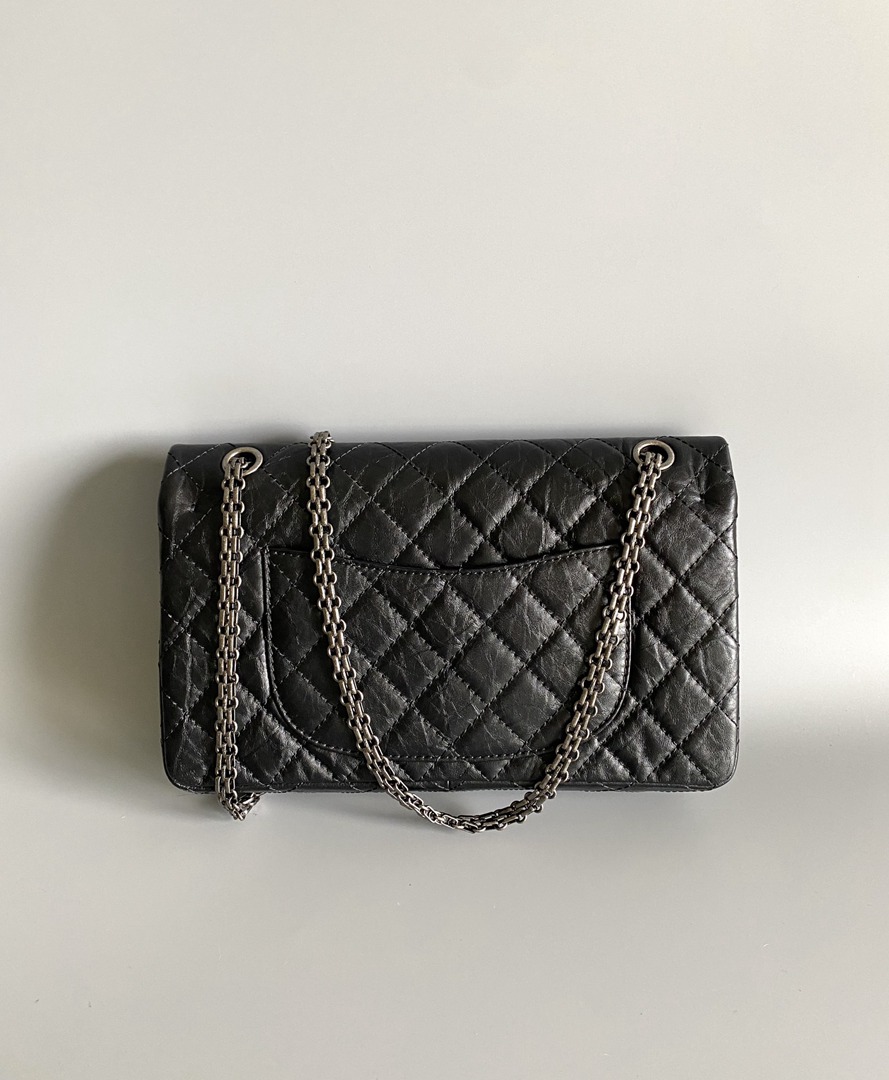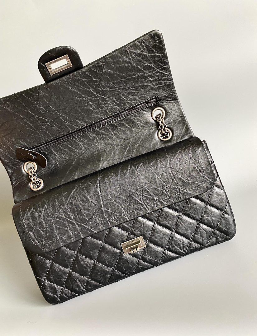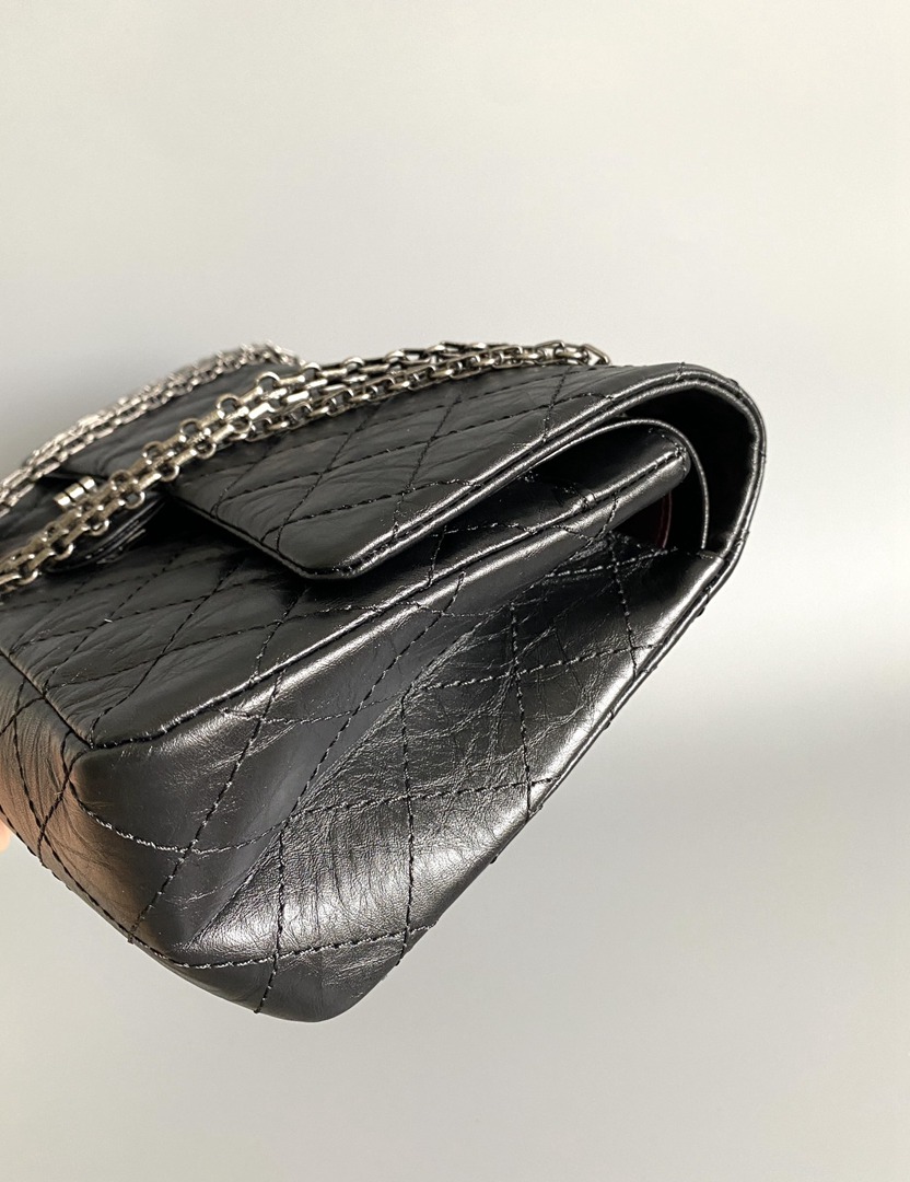 chanel 2.55 black aged calfskin sliver hardware large