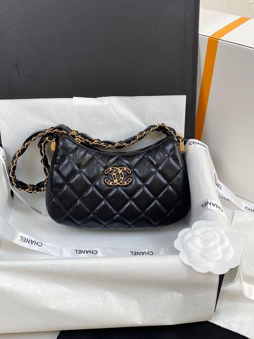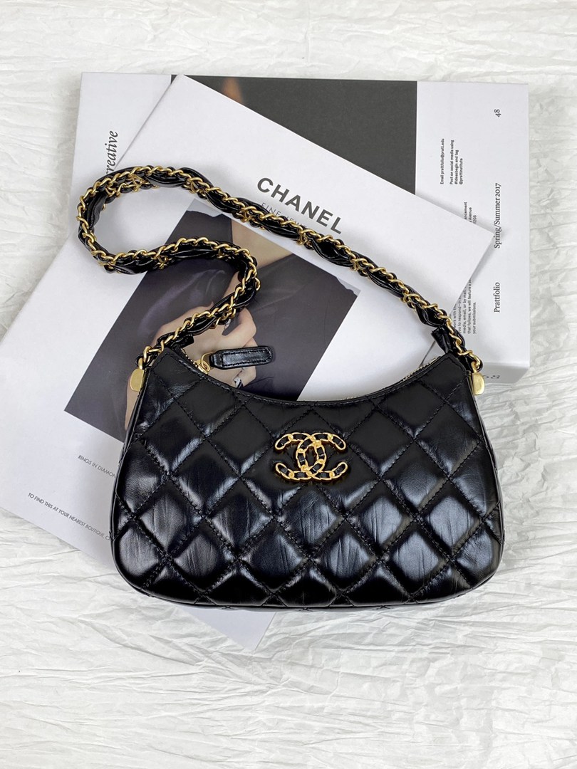 chanel 23k 19 hobo bag black aged calfskin gold hardware