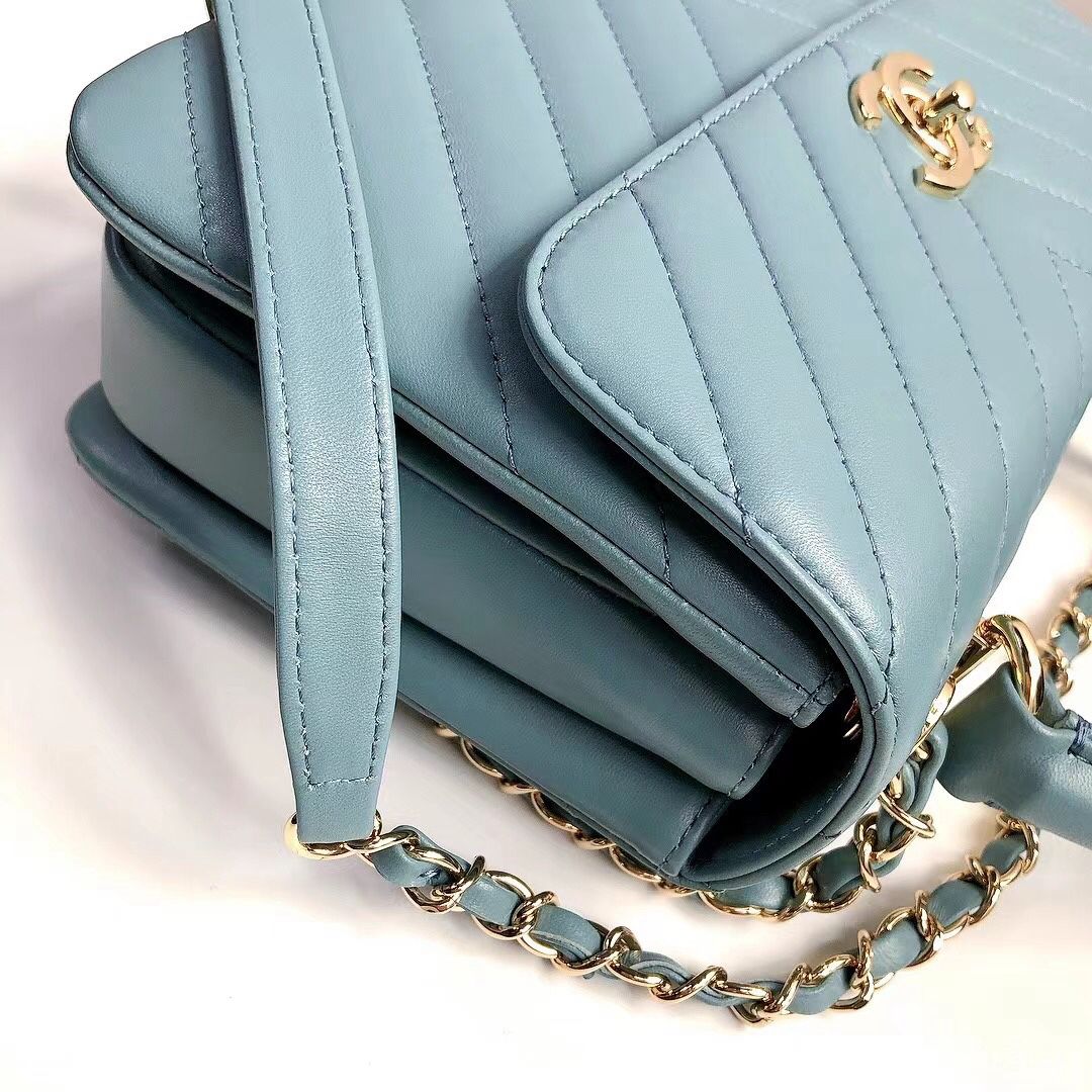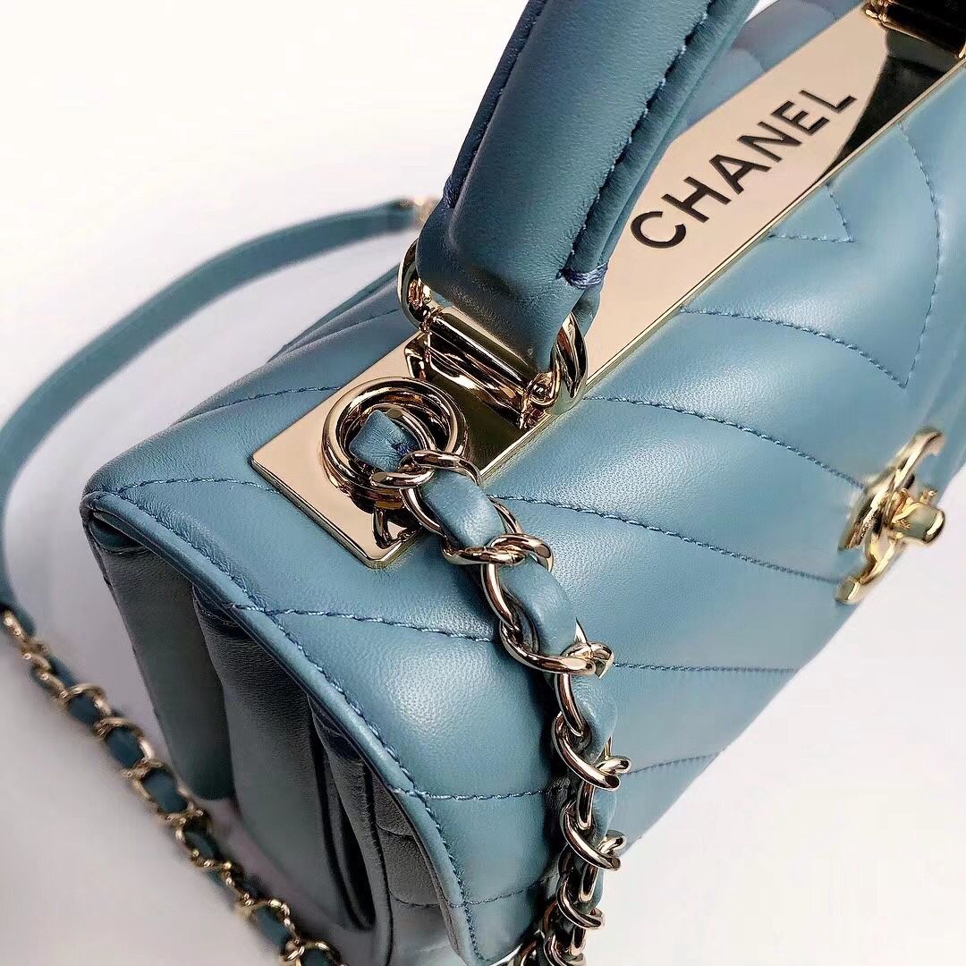 chanel top handle flap bag blue Chevron Quilted Lambskin gold hardware