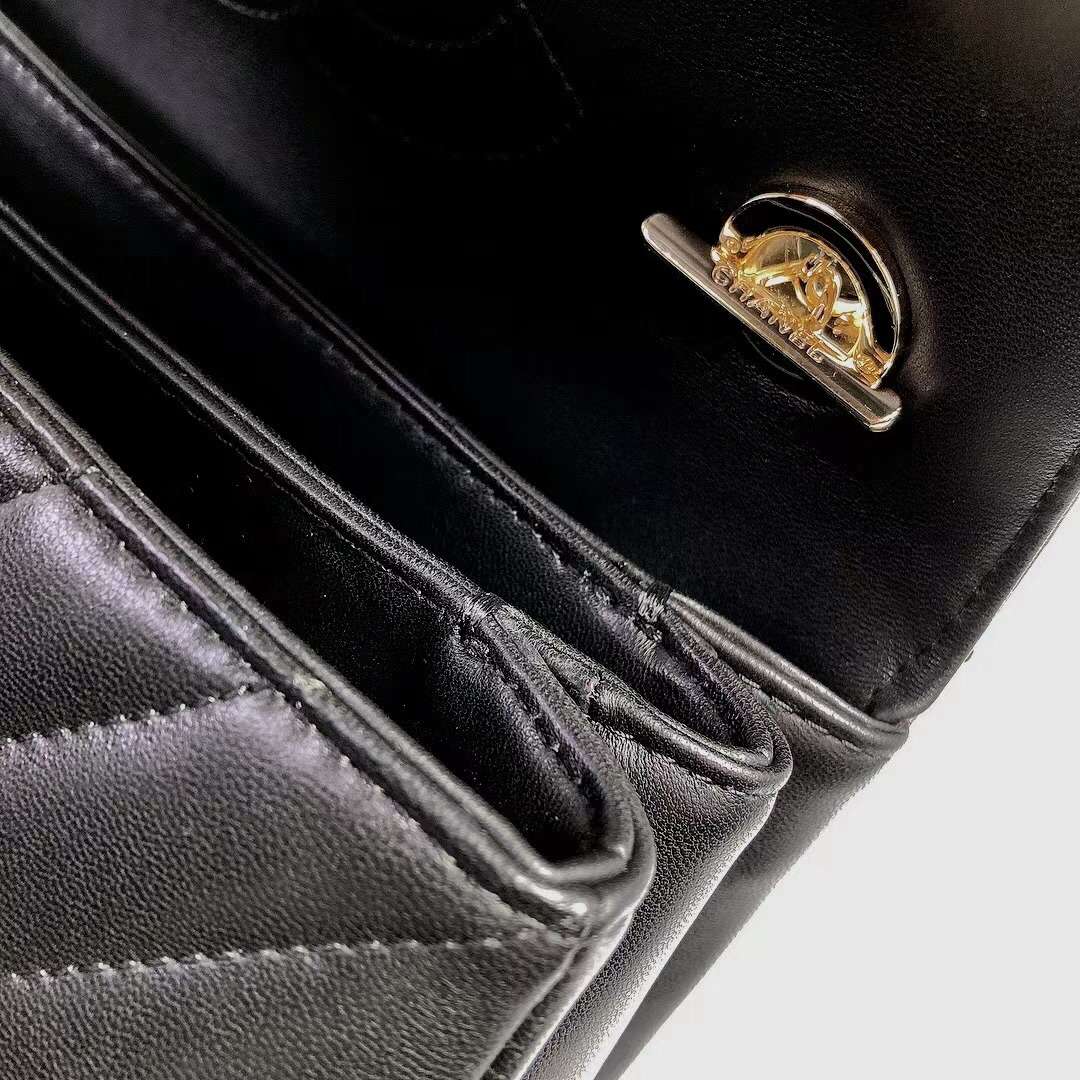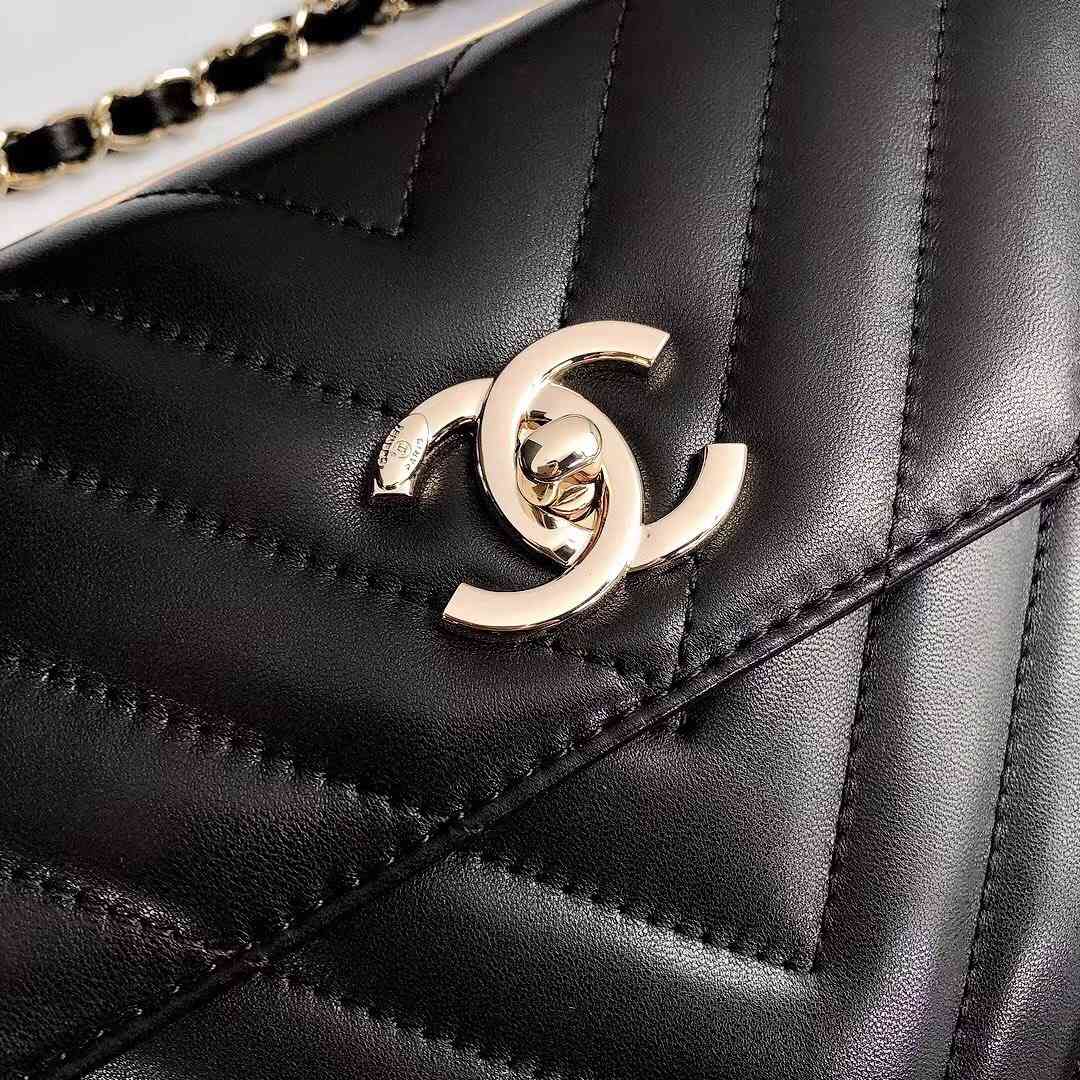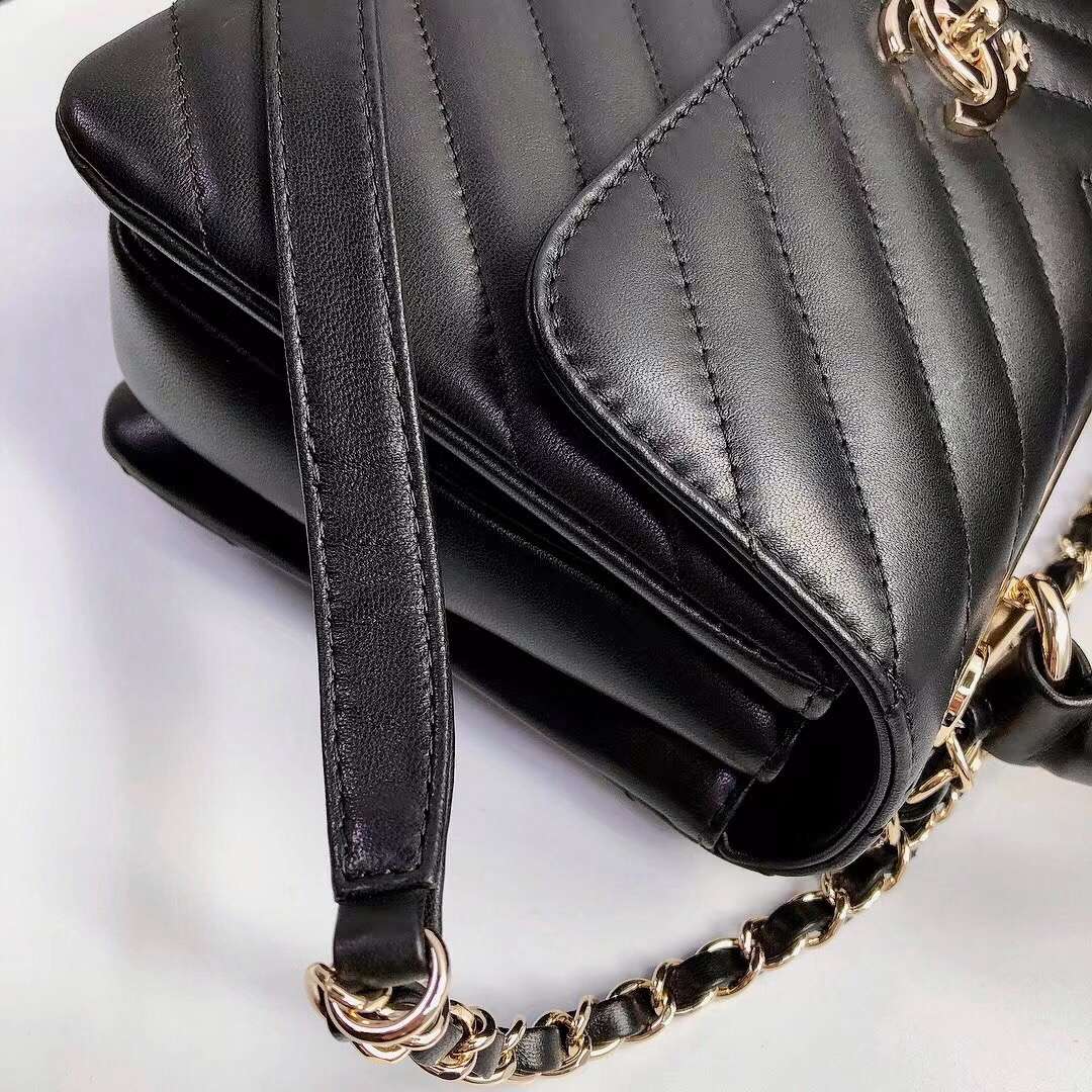 chanel top handle flap bag black Chevron Quilted Lambskin gold hardware