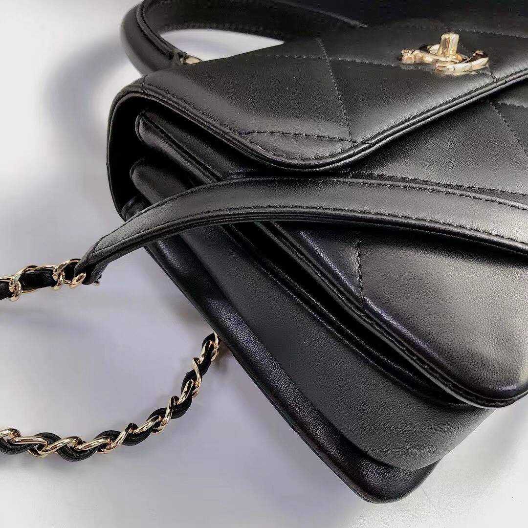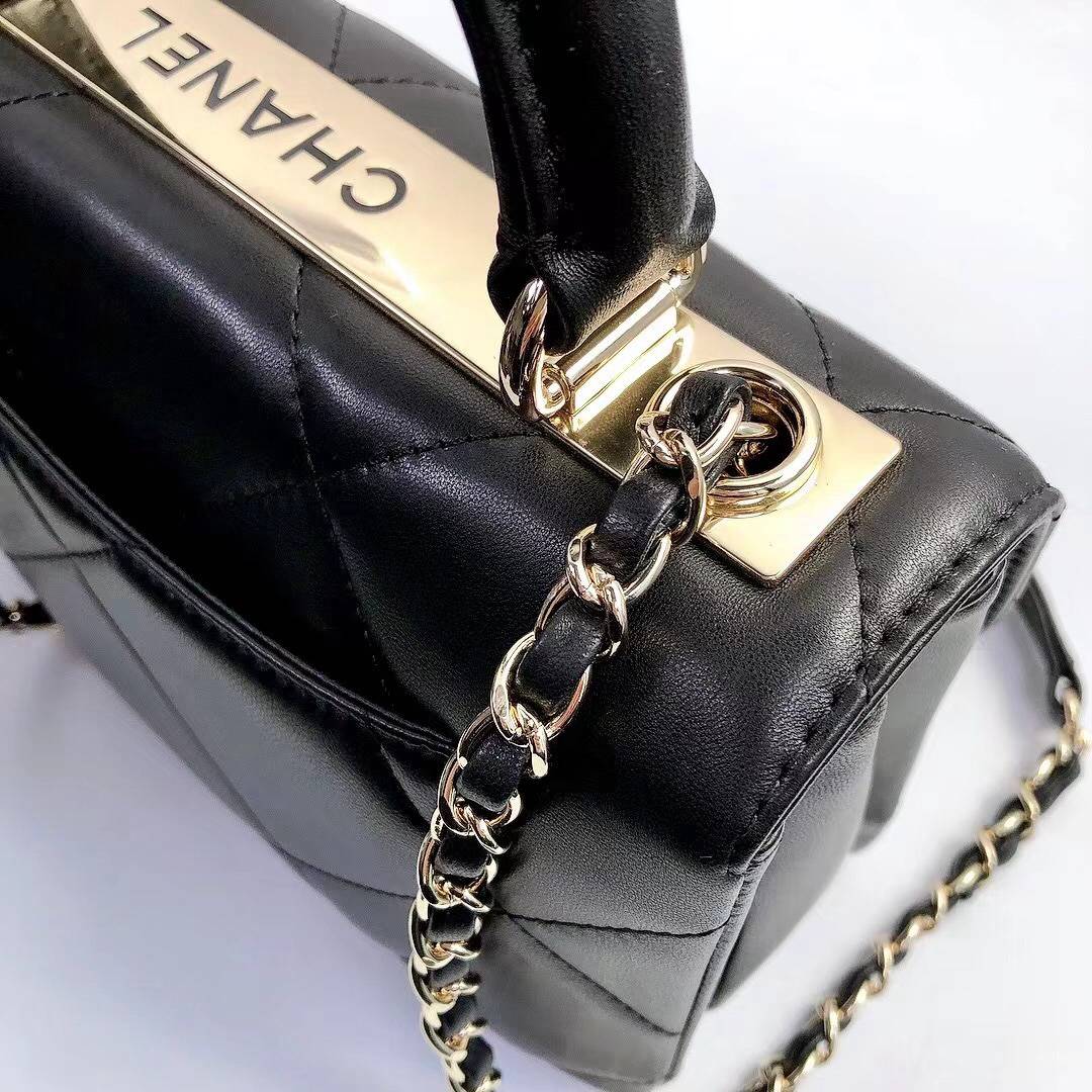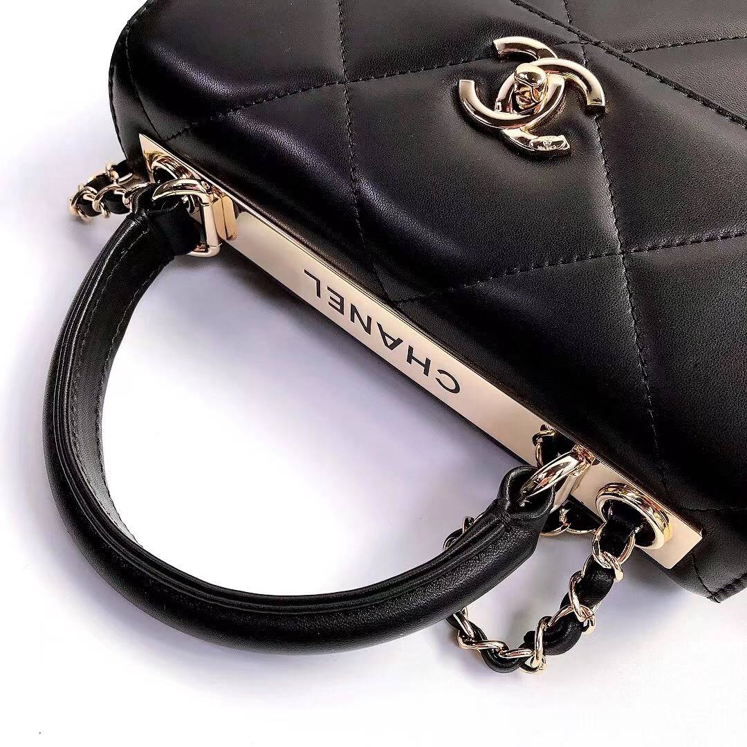 chanel top handle flap bag green Large Quilting lambskin gold hardware