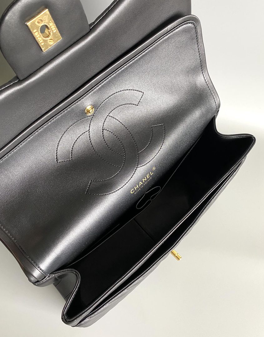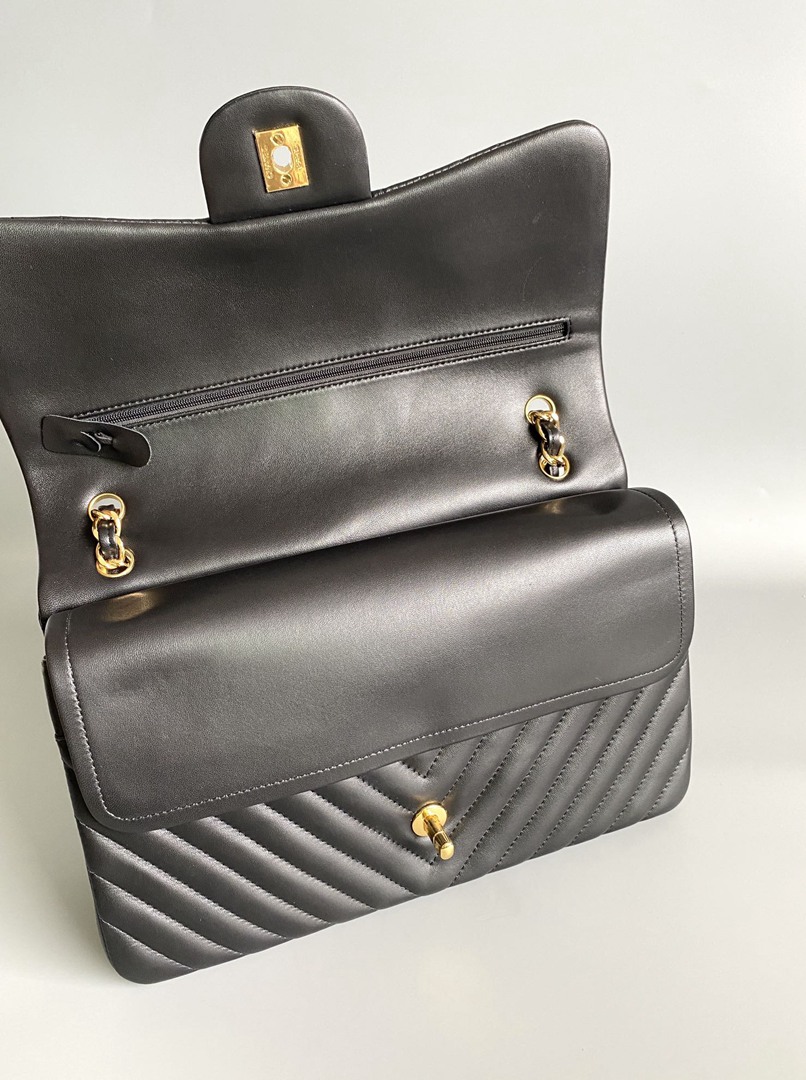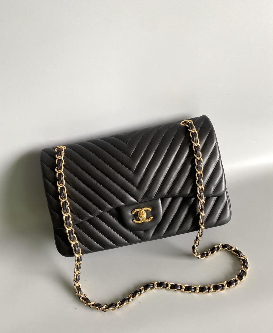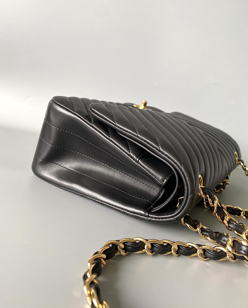 chanel cf black Chevron Quilted lambskin gold hardware