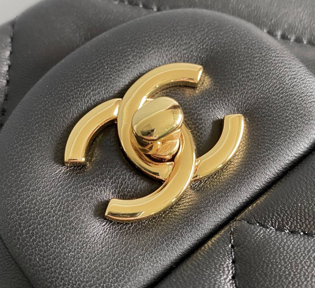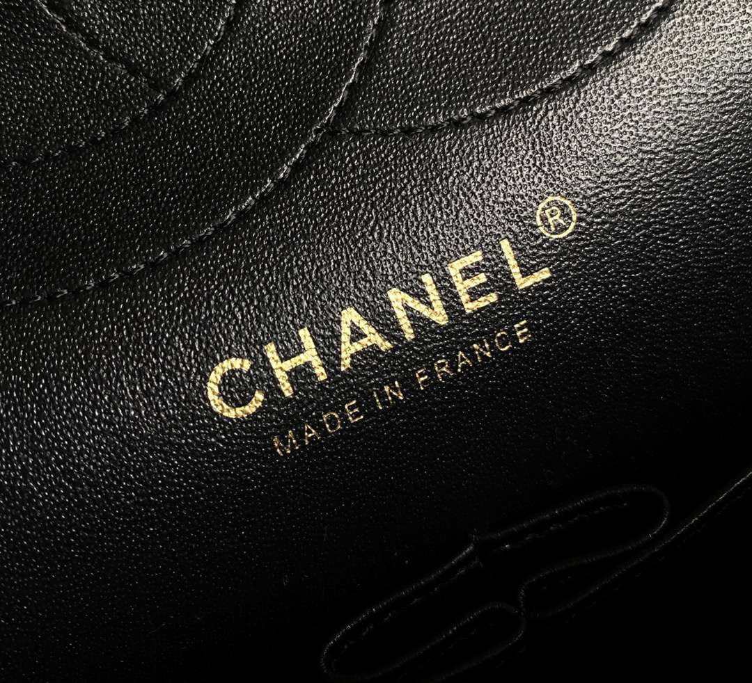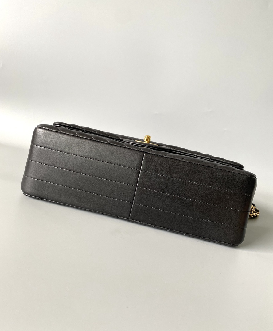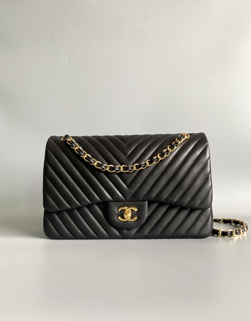 chanel cf black Chevron Quilted lambskin gold hardware