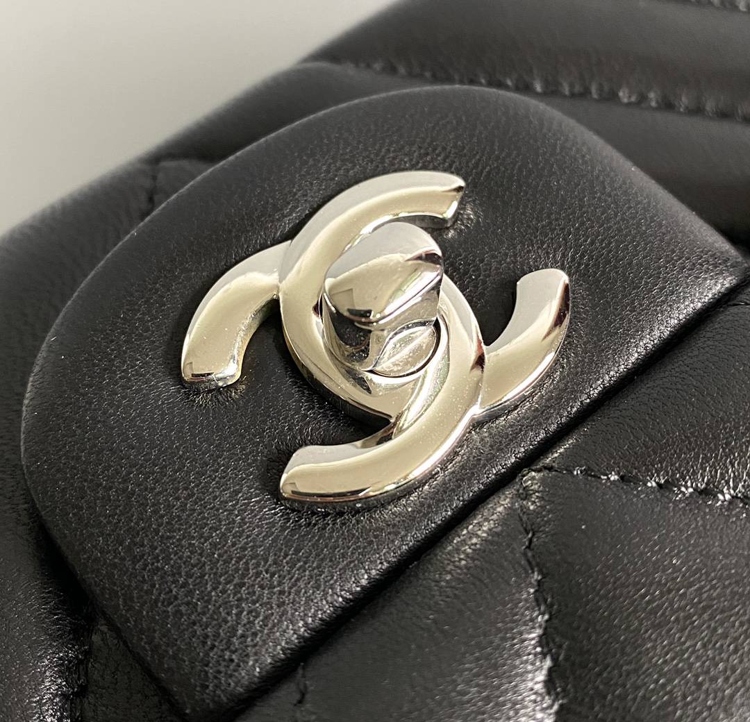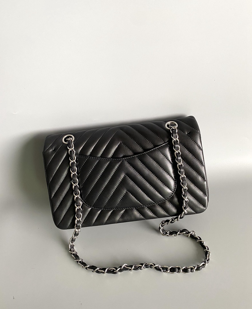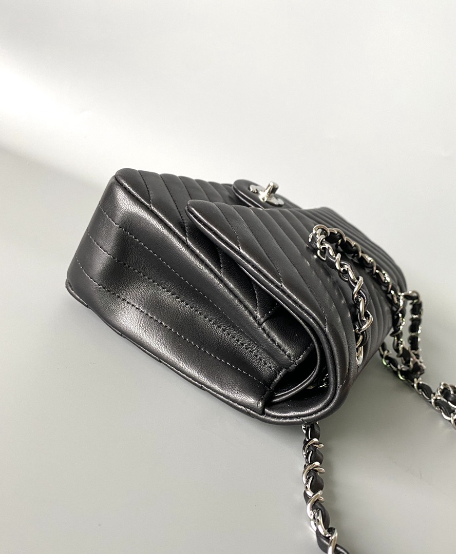 chanel cf black Chevron Quilted lambskin sliver hardware small