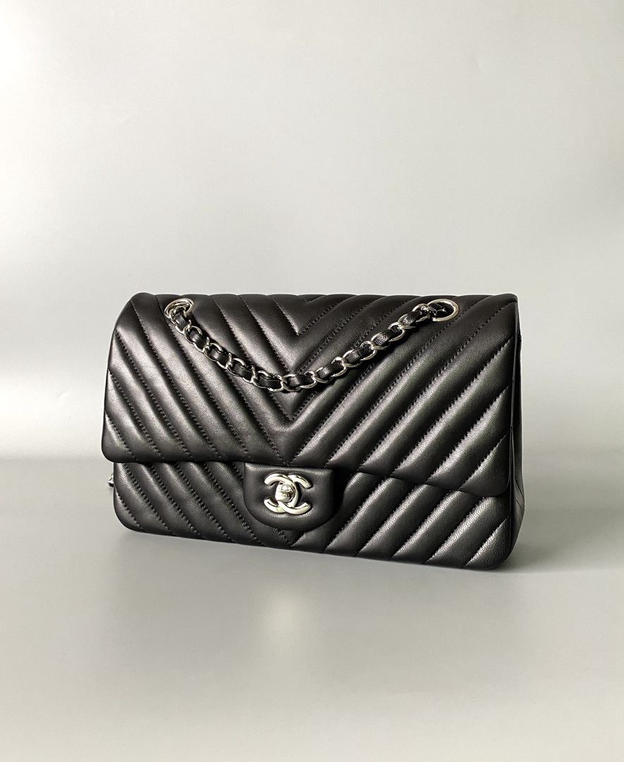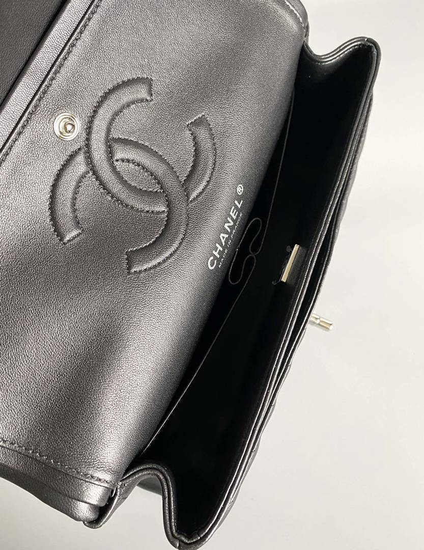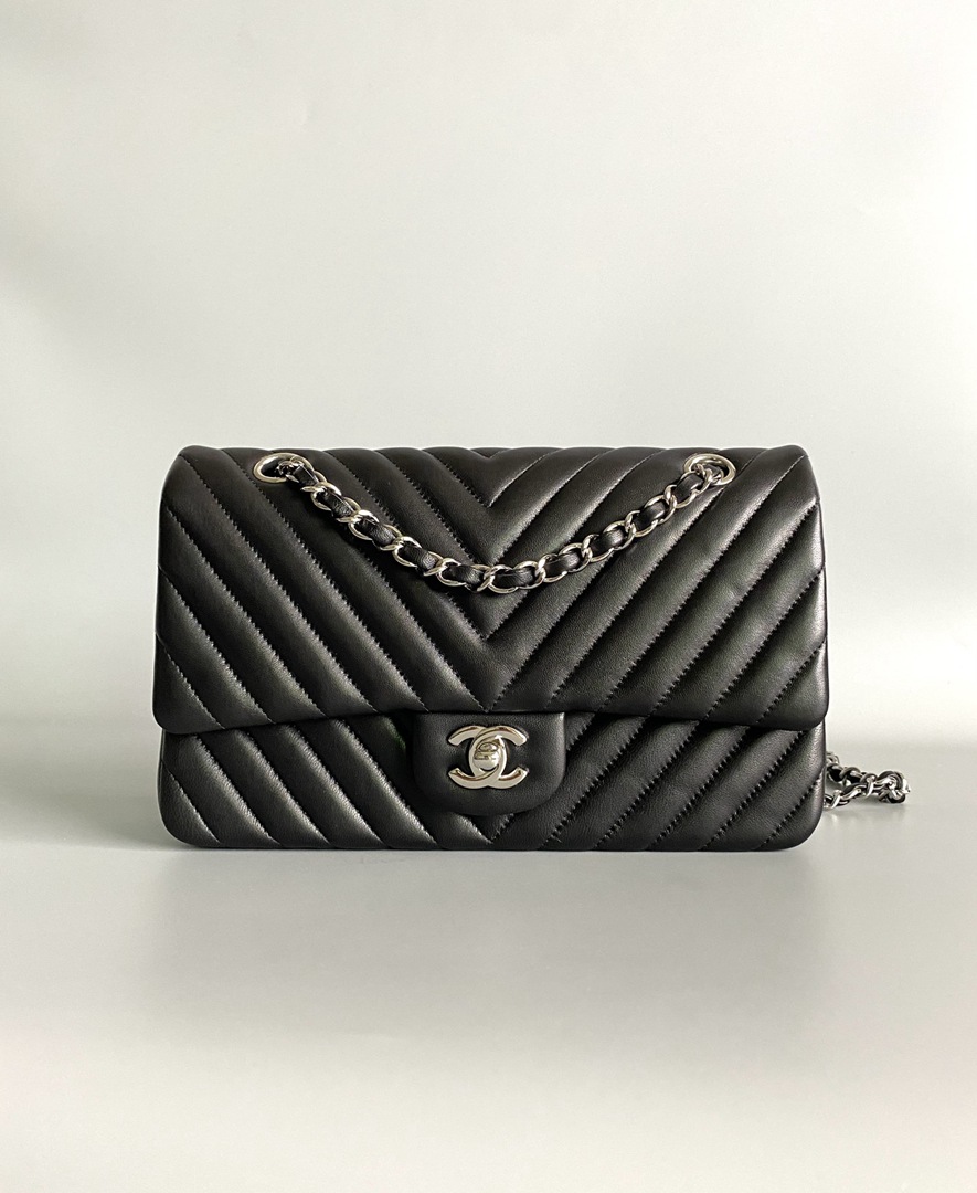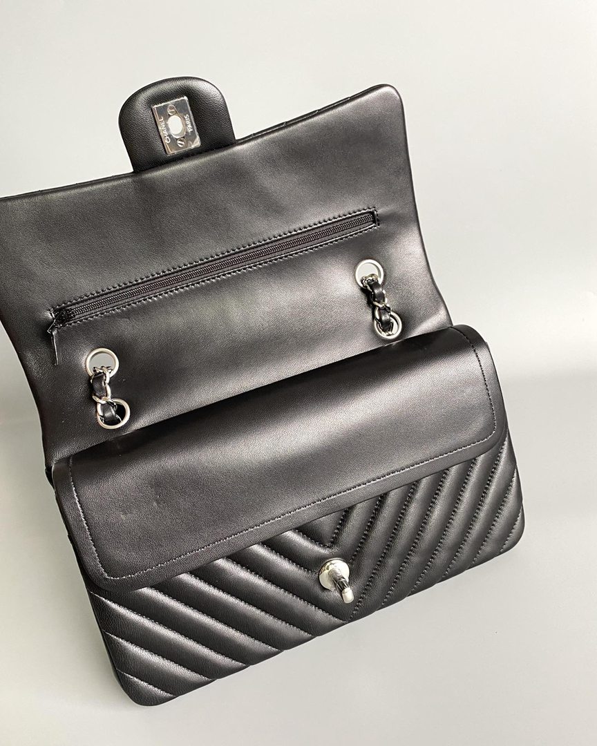 chanel cf black Chevron Quilted lambskin sliver hardware small