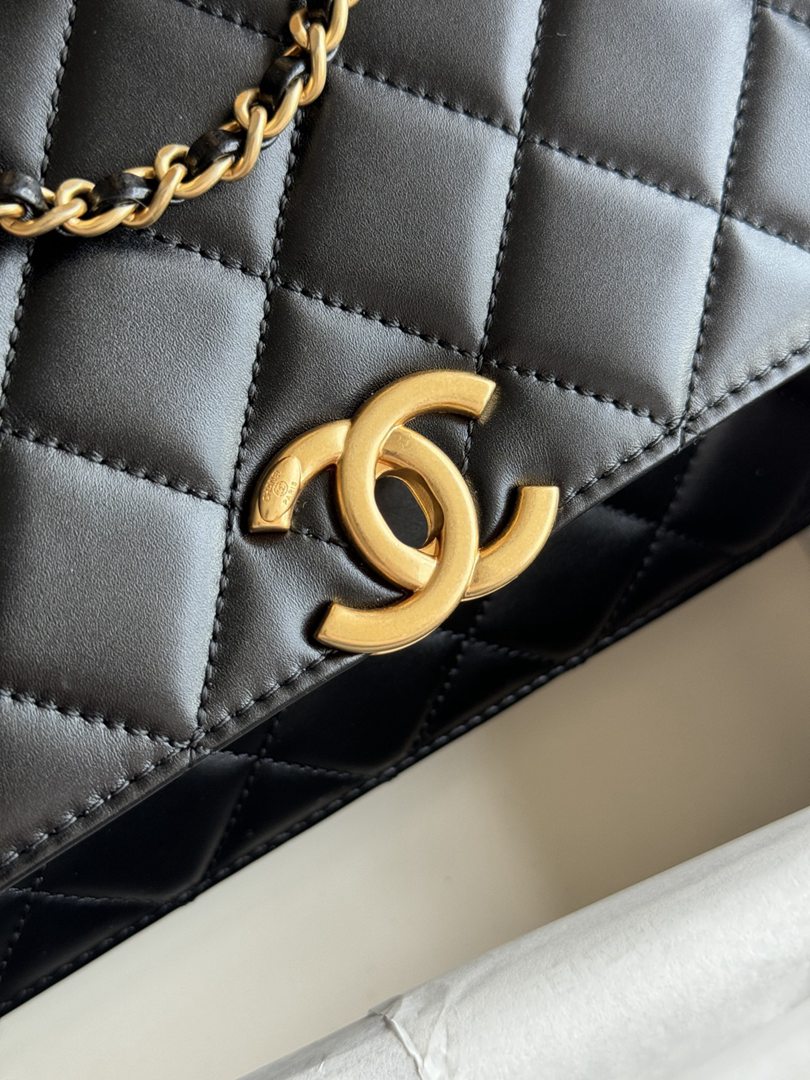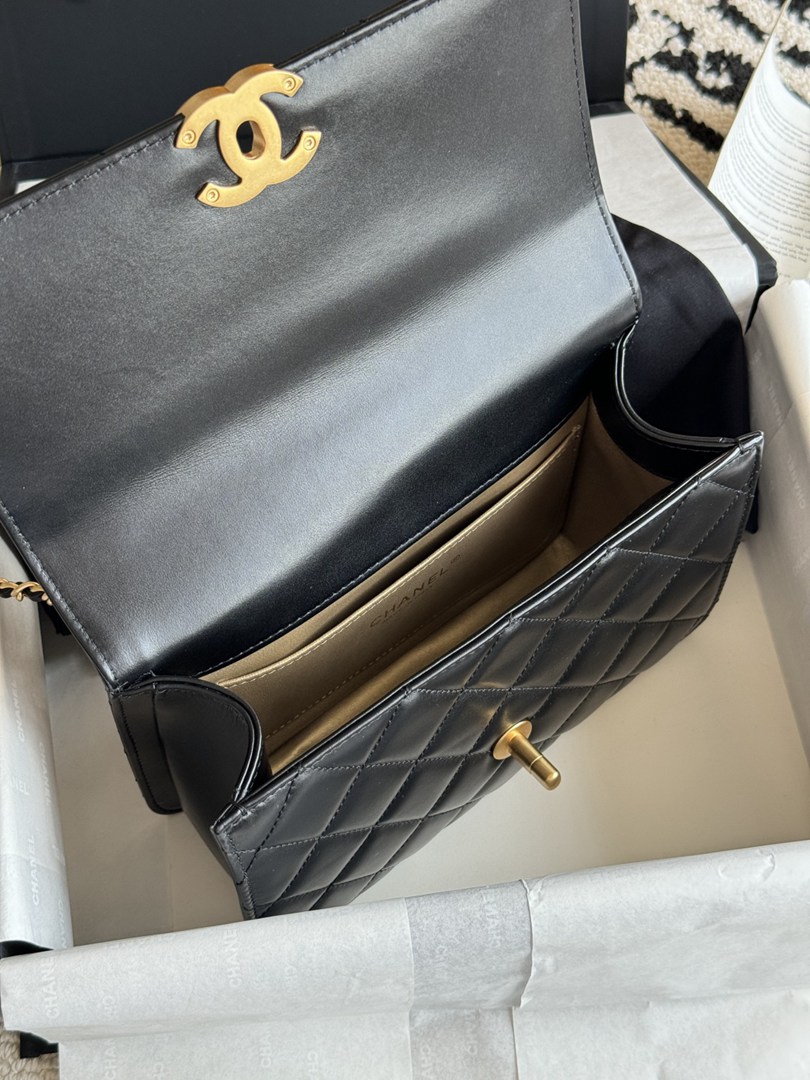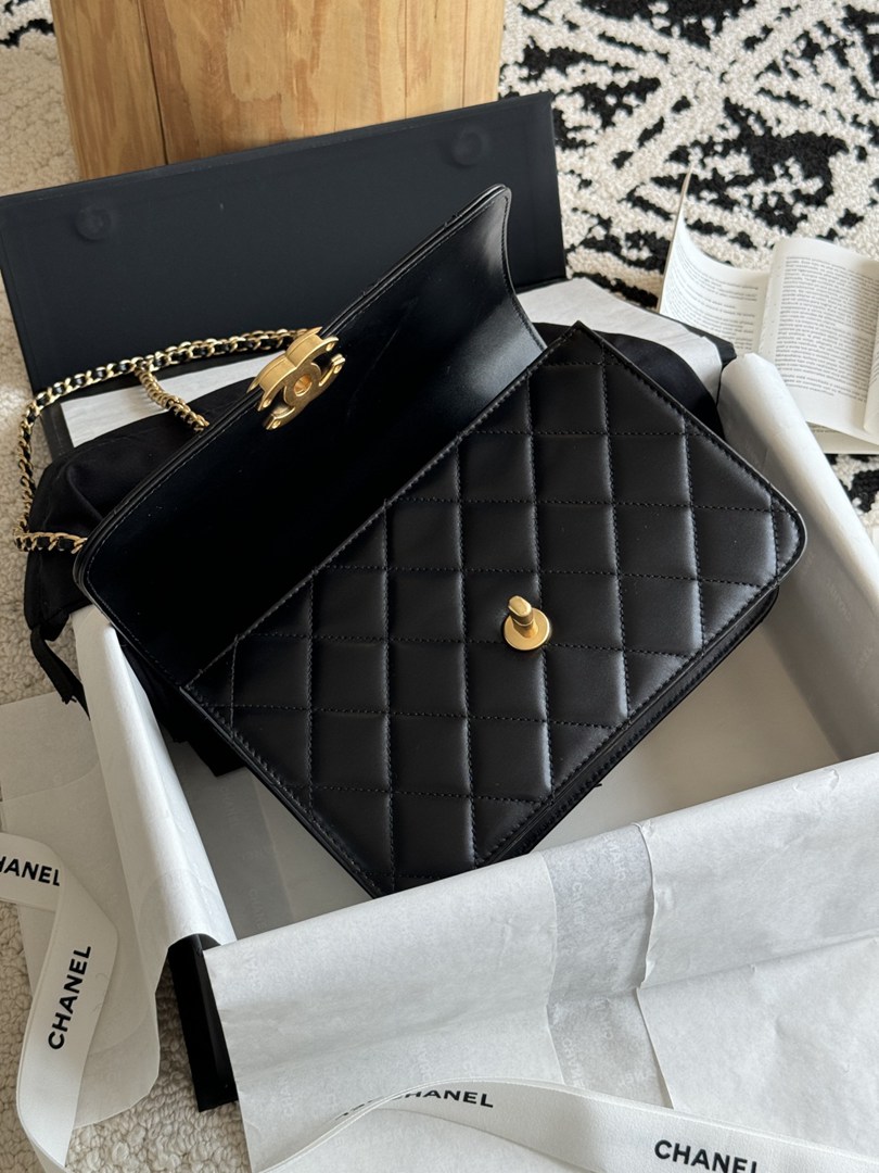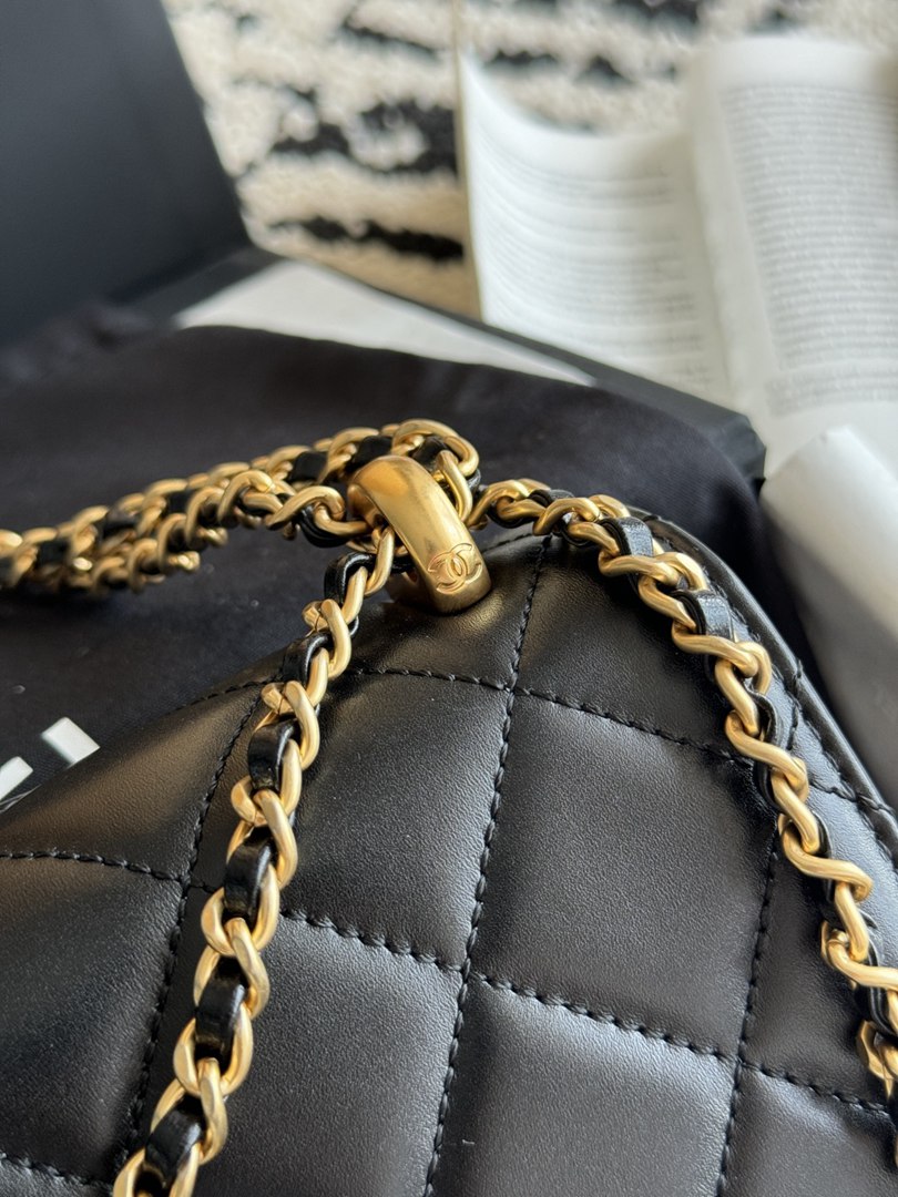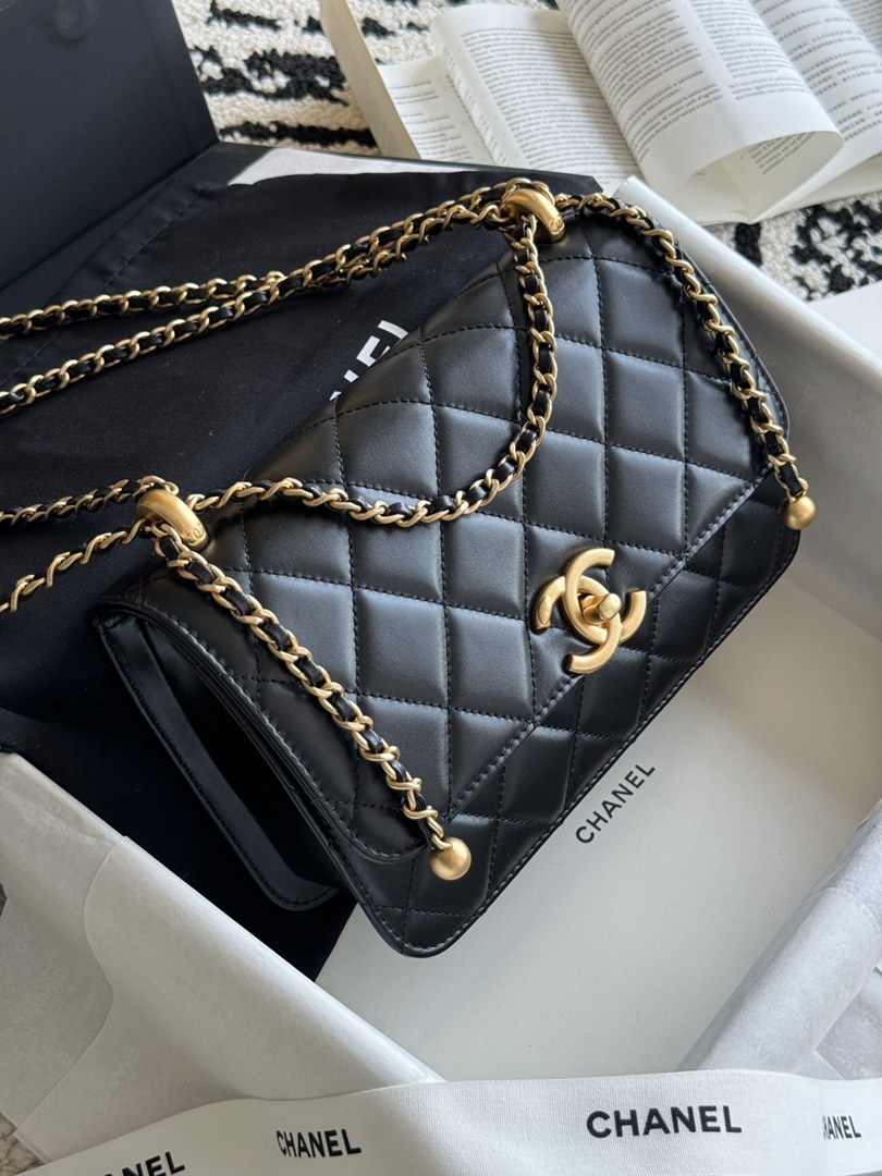chanel 25s flap Double gold beads bag black shiny calfskin gold hardware