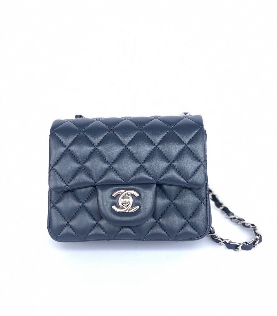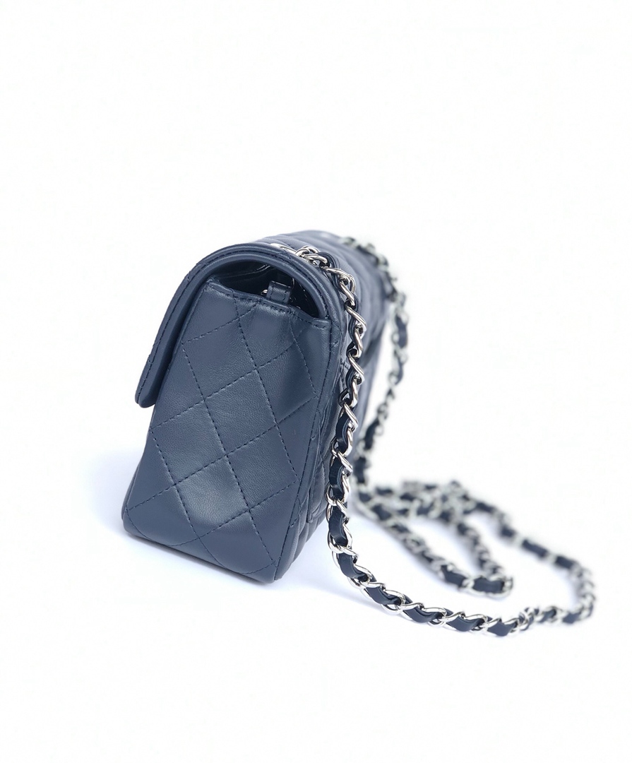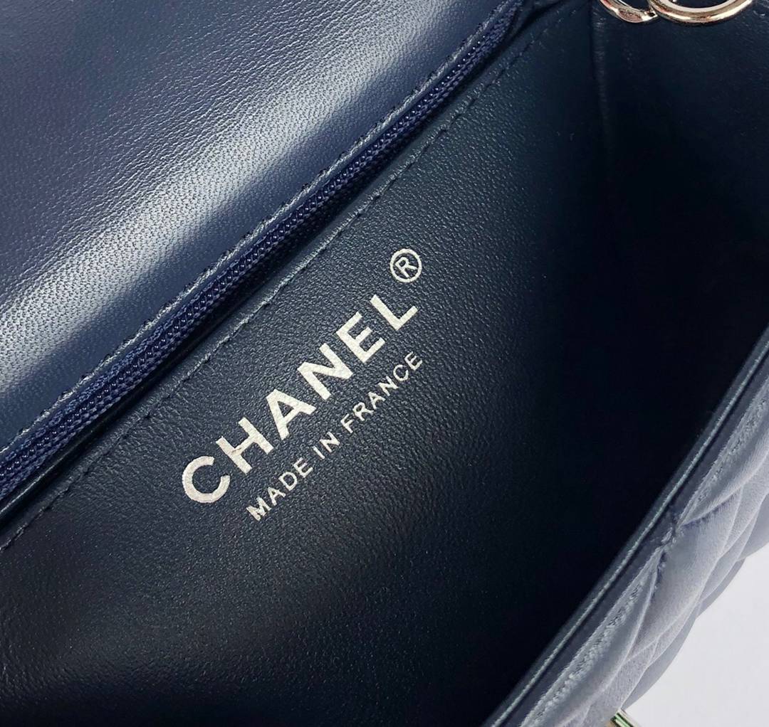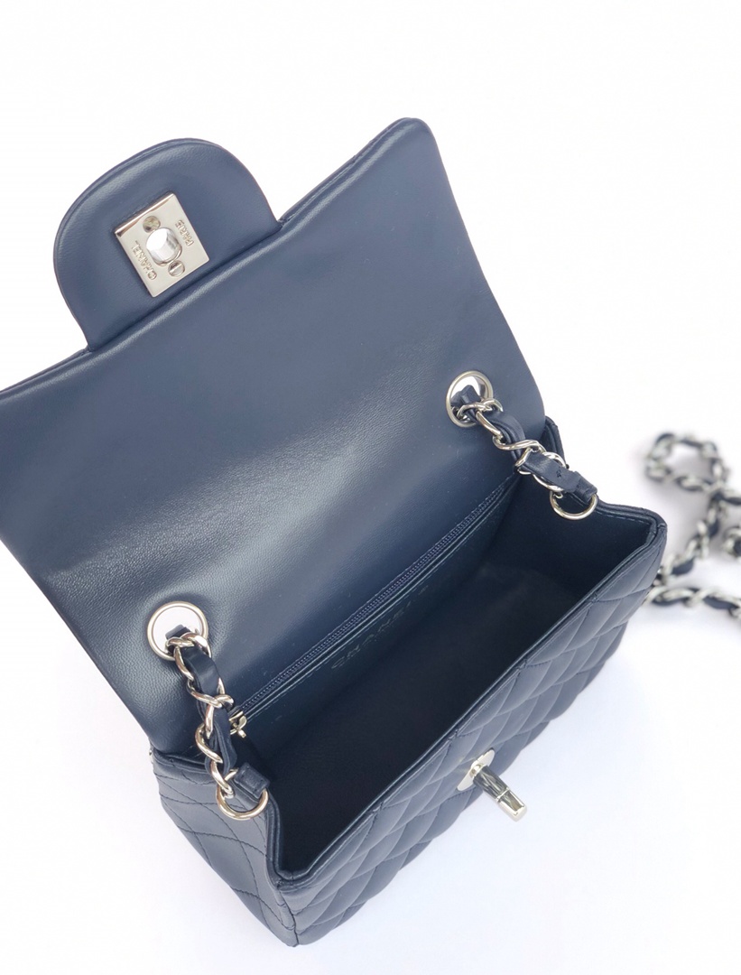 chanel mini cf navy shiny lambskin sliver hardware