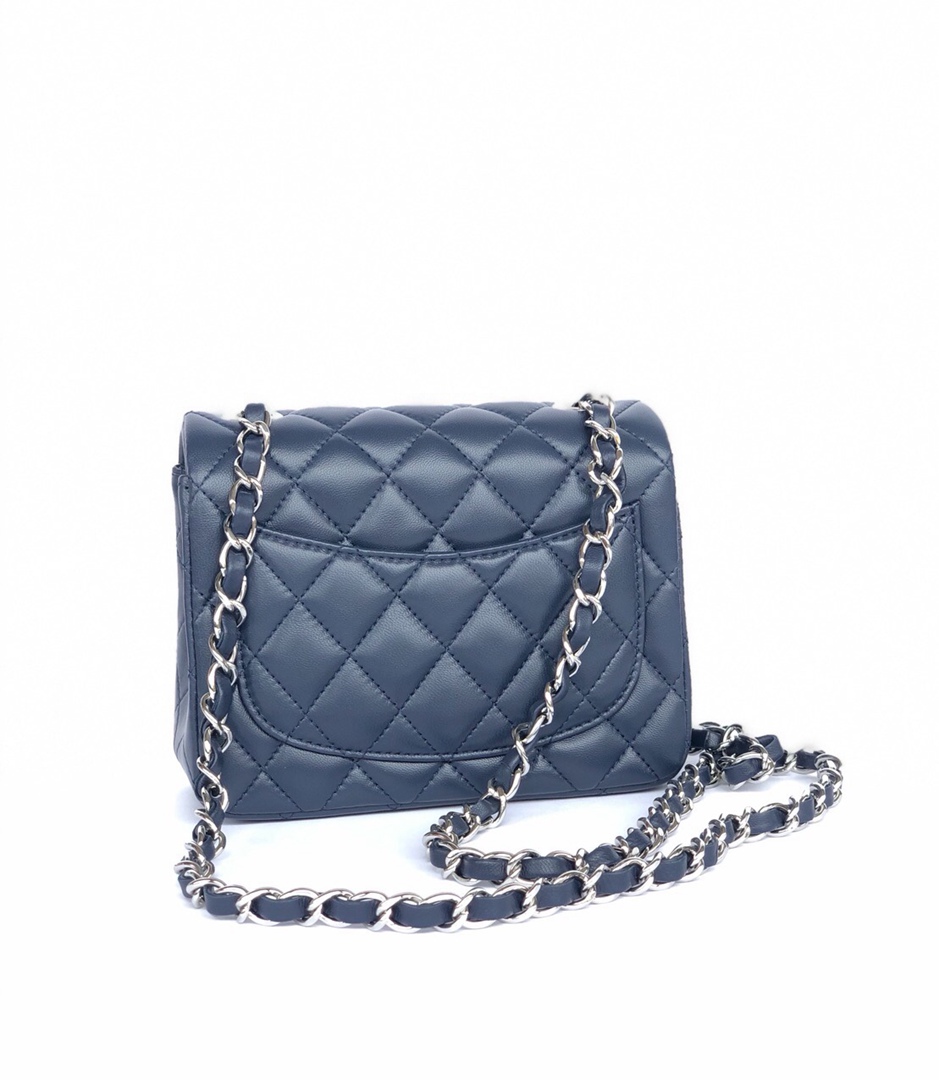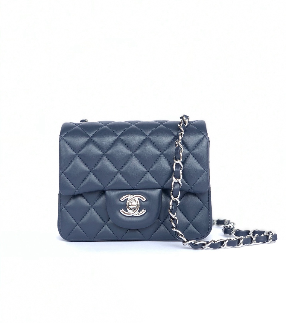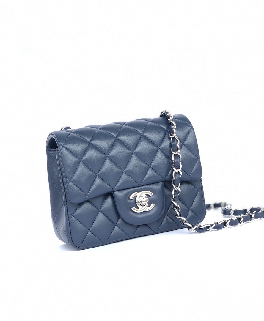 chanel mini cf navy shiny lambskin sliver hardware