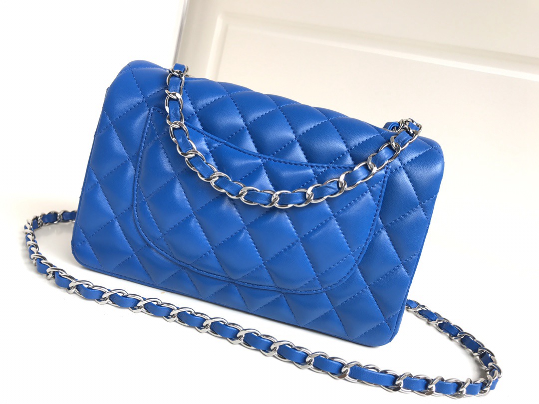 chanel cf Royal Blue shiny lambskin sliver hardware