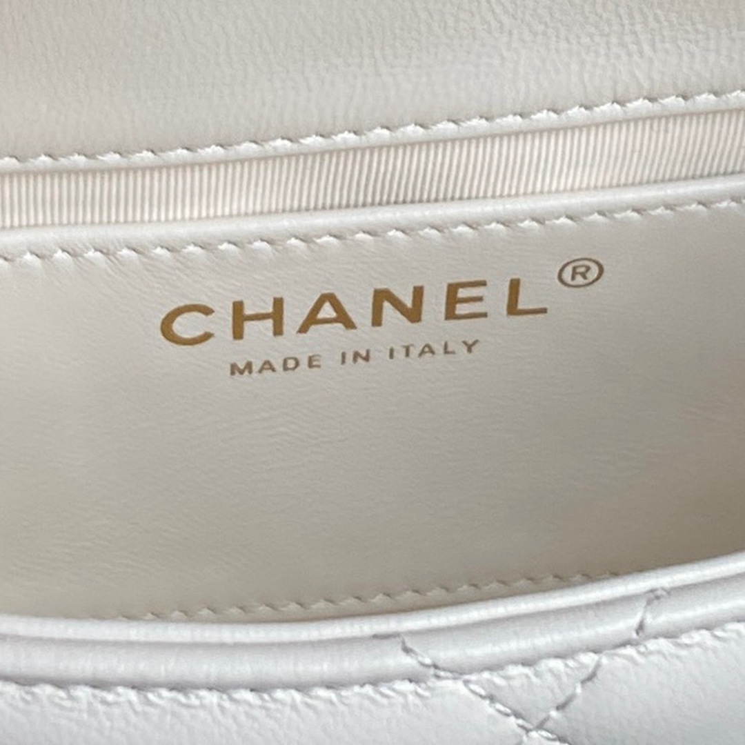 chanel 25c top handle cf white shiny lambskin Hollow gold cc&gold hardware small