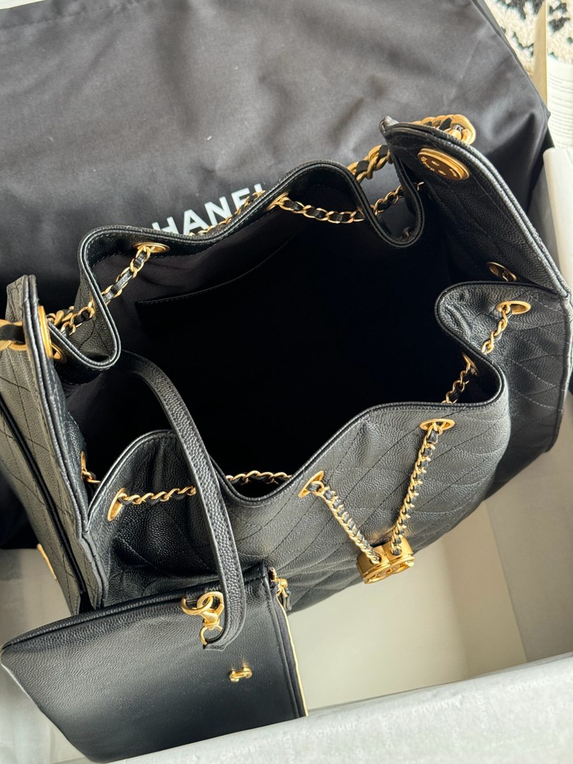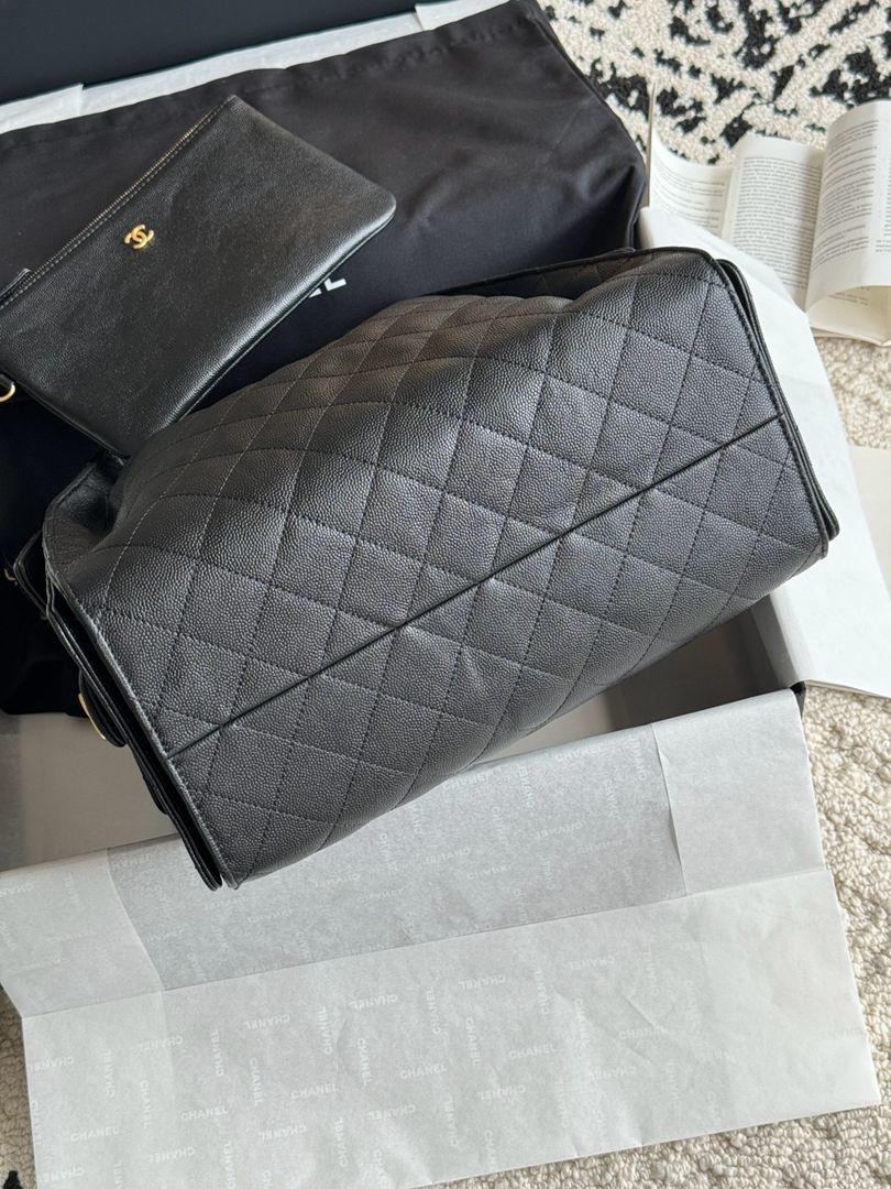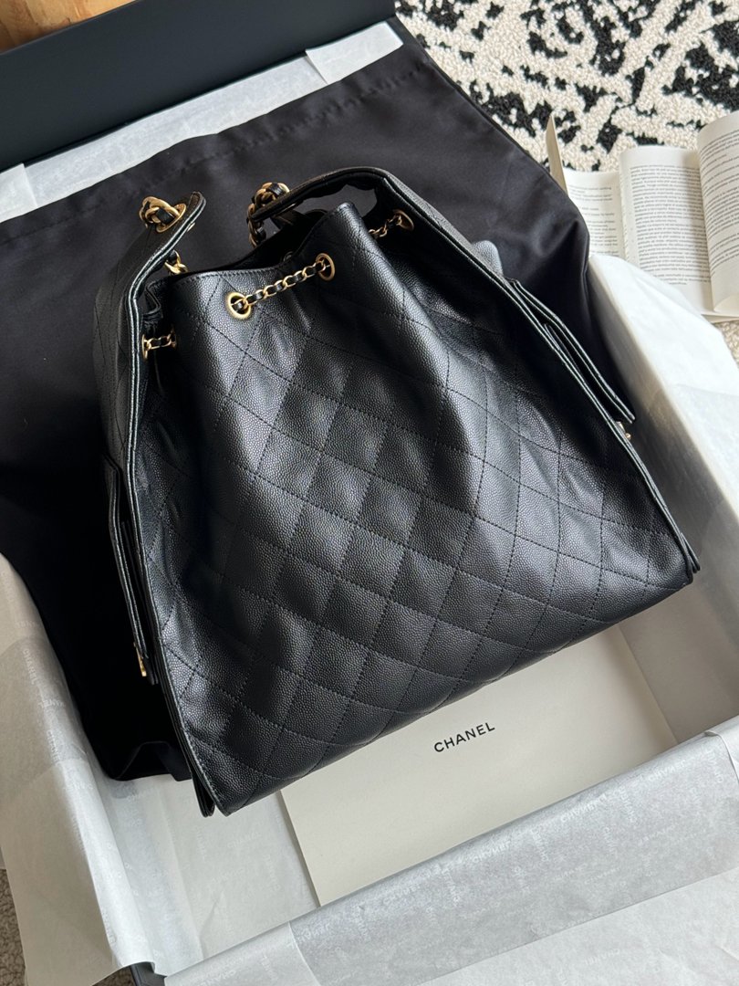 chanel 25c hobo bag black Caviar calfskin?copper hardware