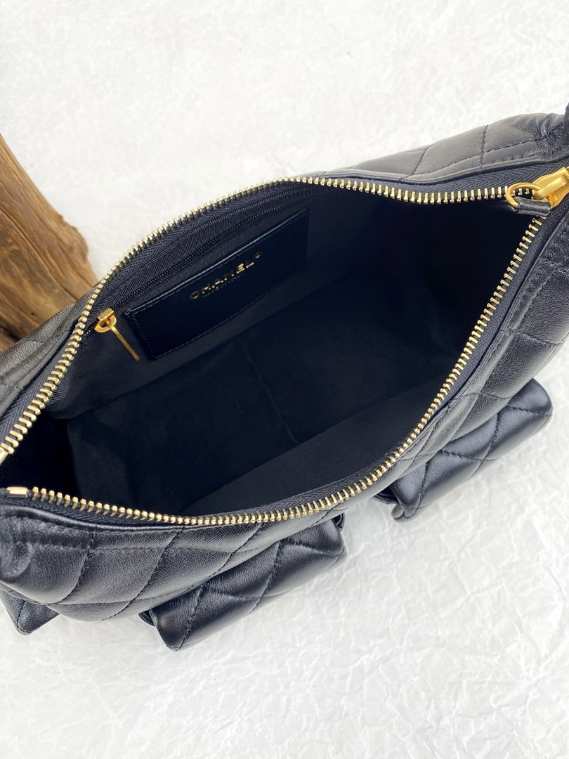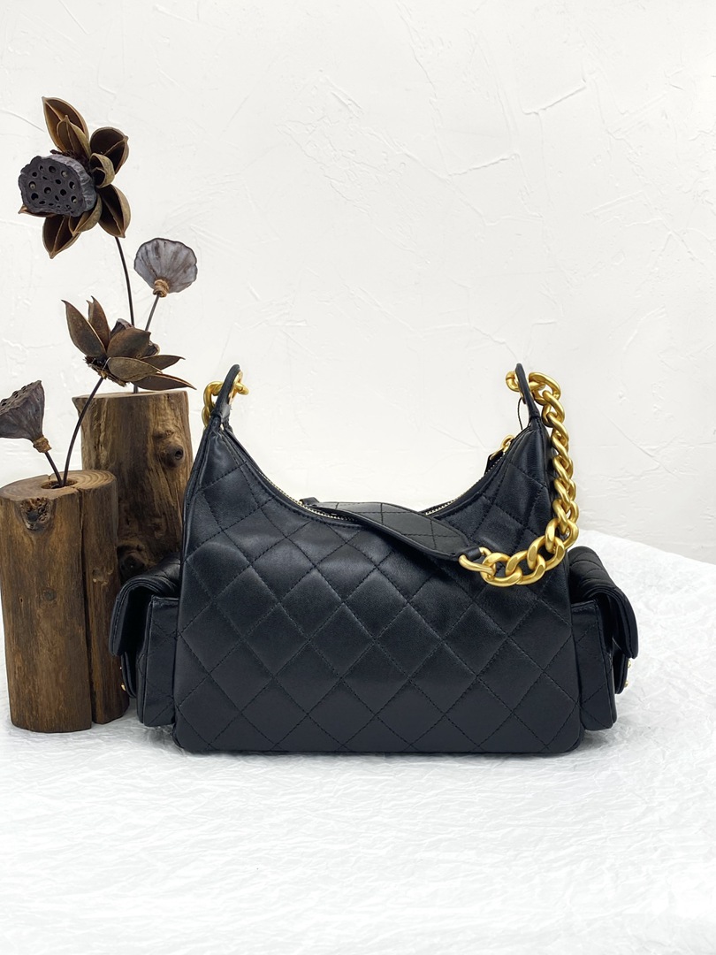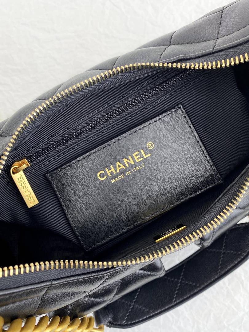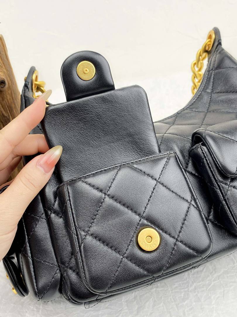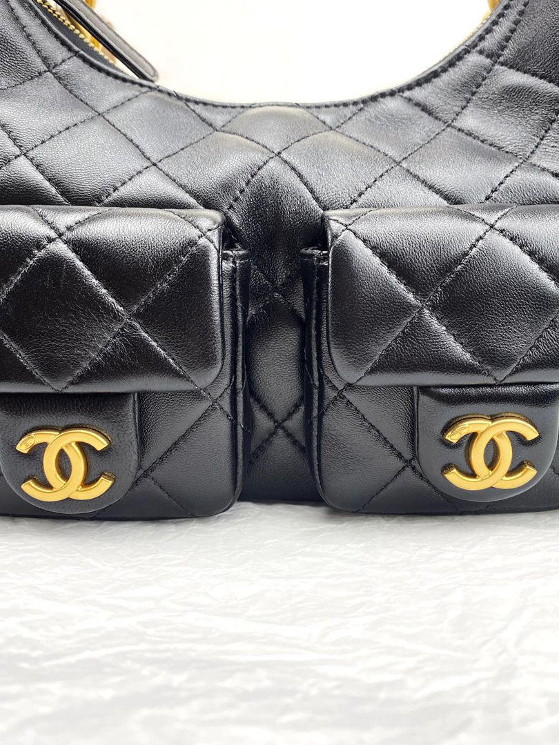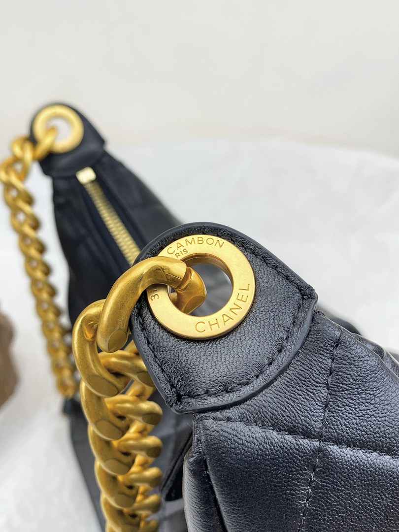 chanel 25c hobo bag black shiny lambskin gold hardware small