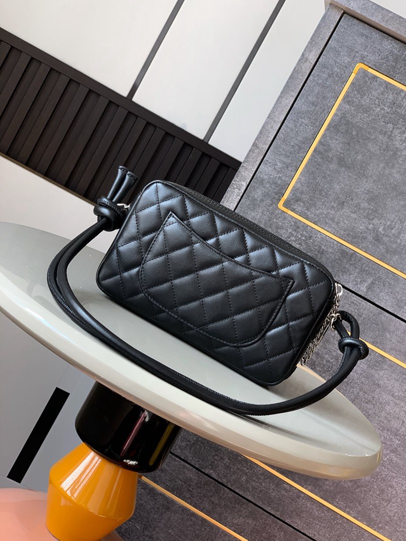 chanel Cambon hobo Underarm Bag black shiny lambskin sliver hardware