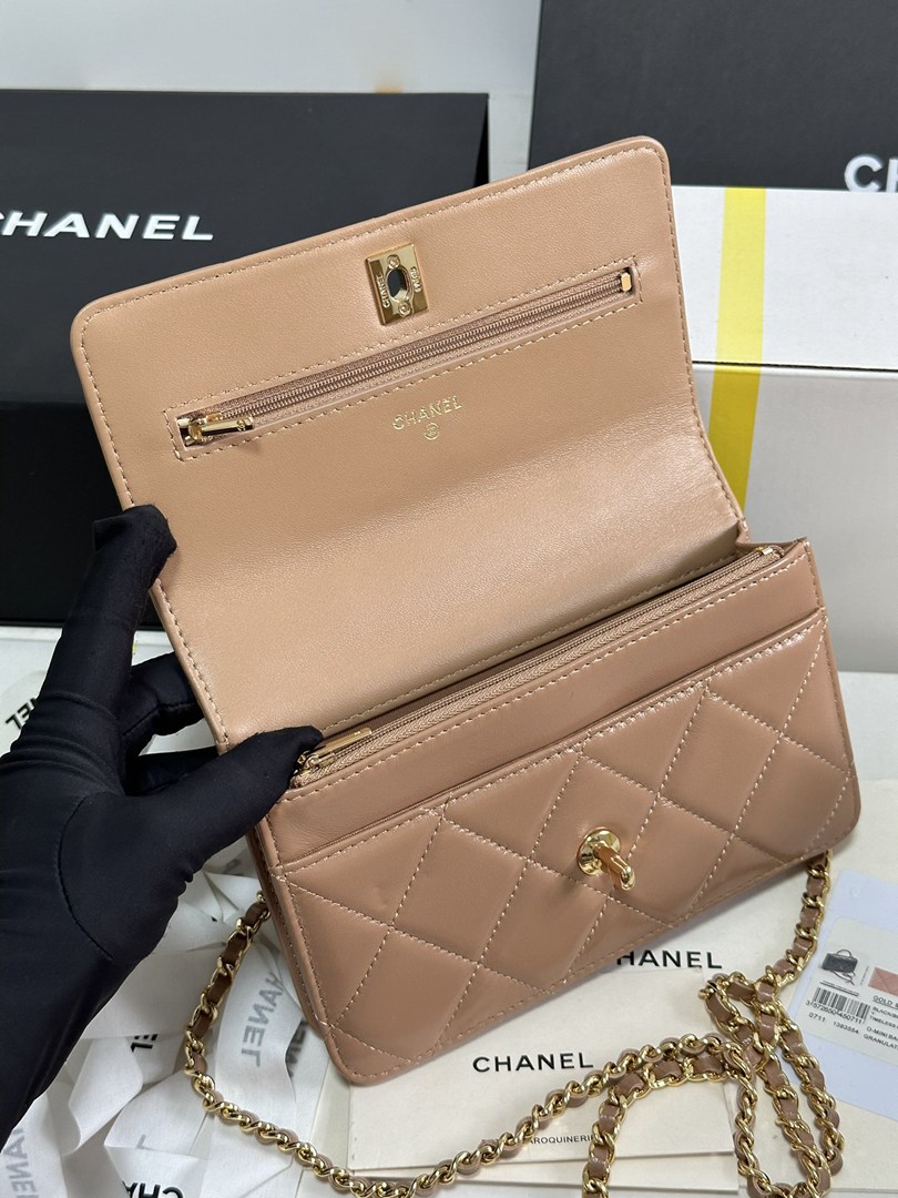 chanel 24b twist handle woc apricot shiny lambskin gold hardware