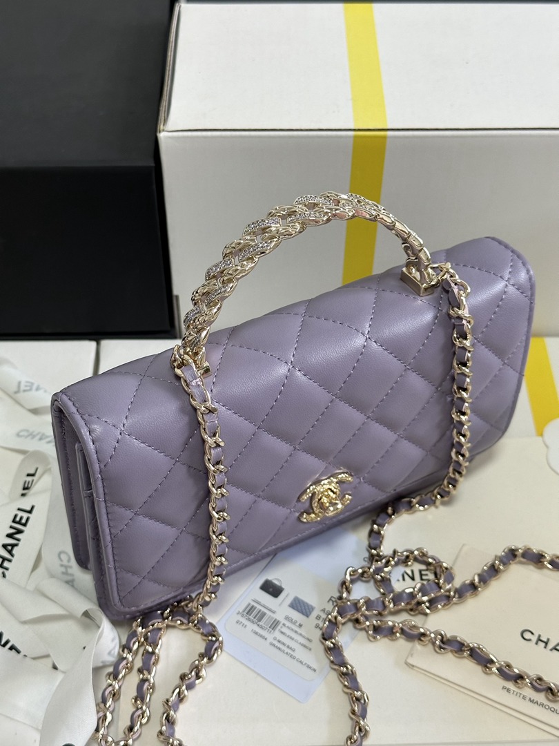 chanel 24a rhinestone handle woc purple shiny lambskin gold hardware