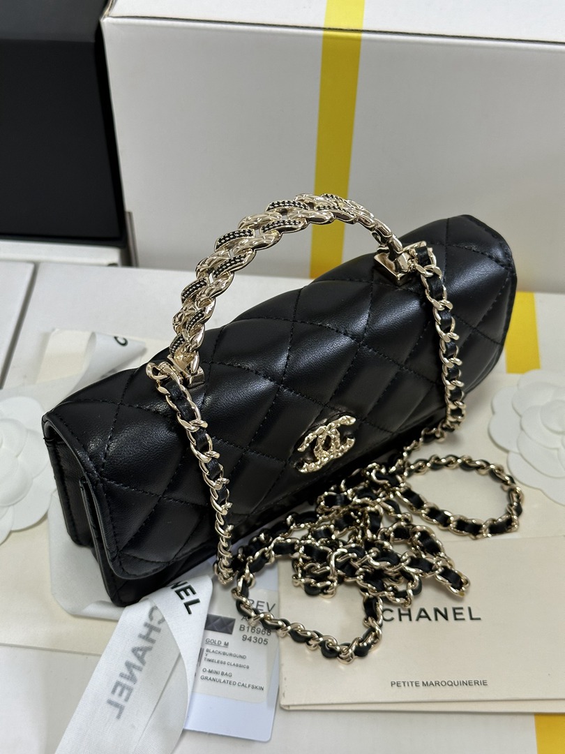 chanel 24a rhinestone handle woc black shiny lambskin gold hardware small