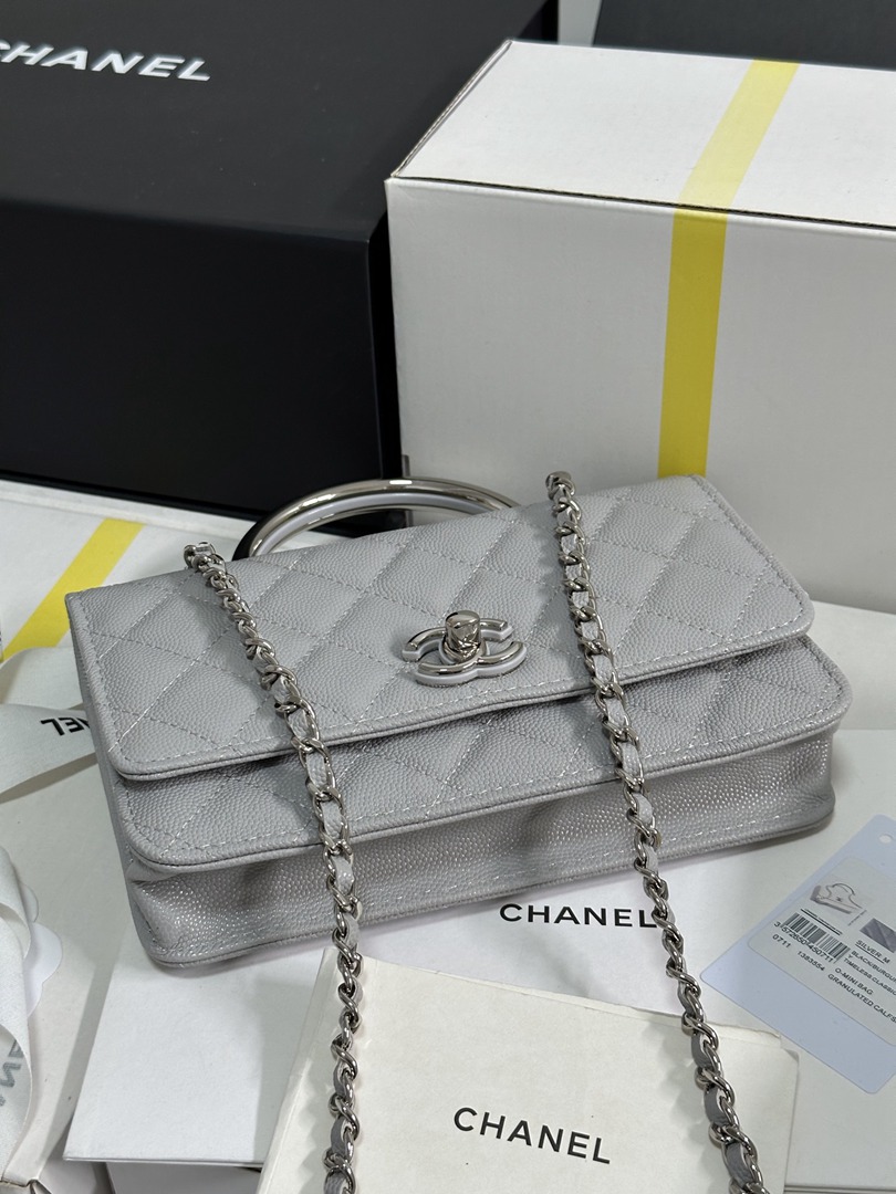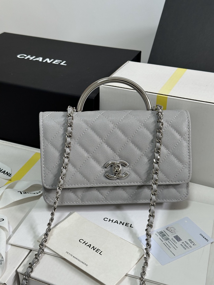chanel 25p Enamel handle woc grey Caviar calfskin sliver hardware
