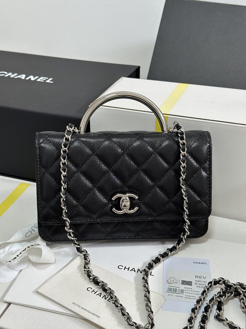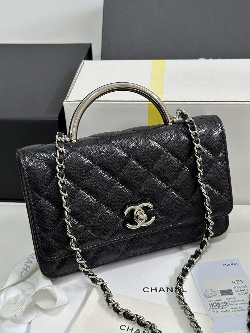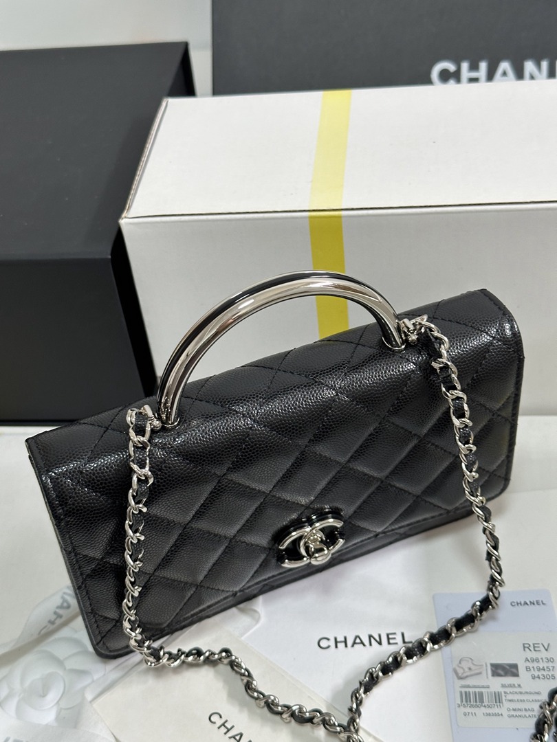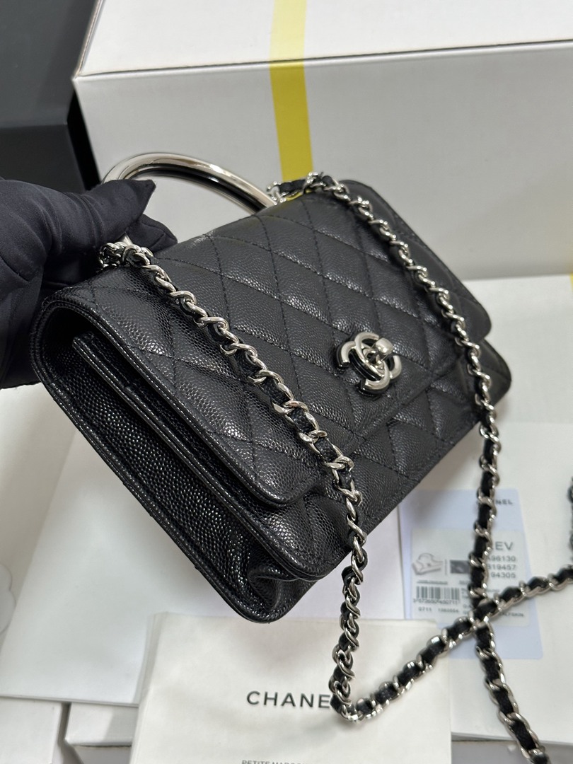 chanel 25p Enamel handle woc black Caviar calfskin sliver hardware