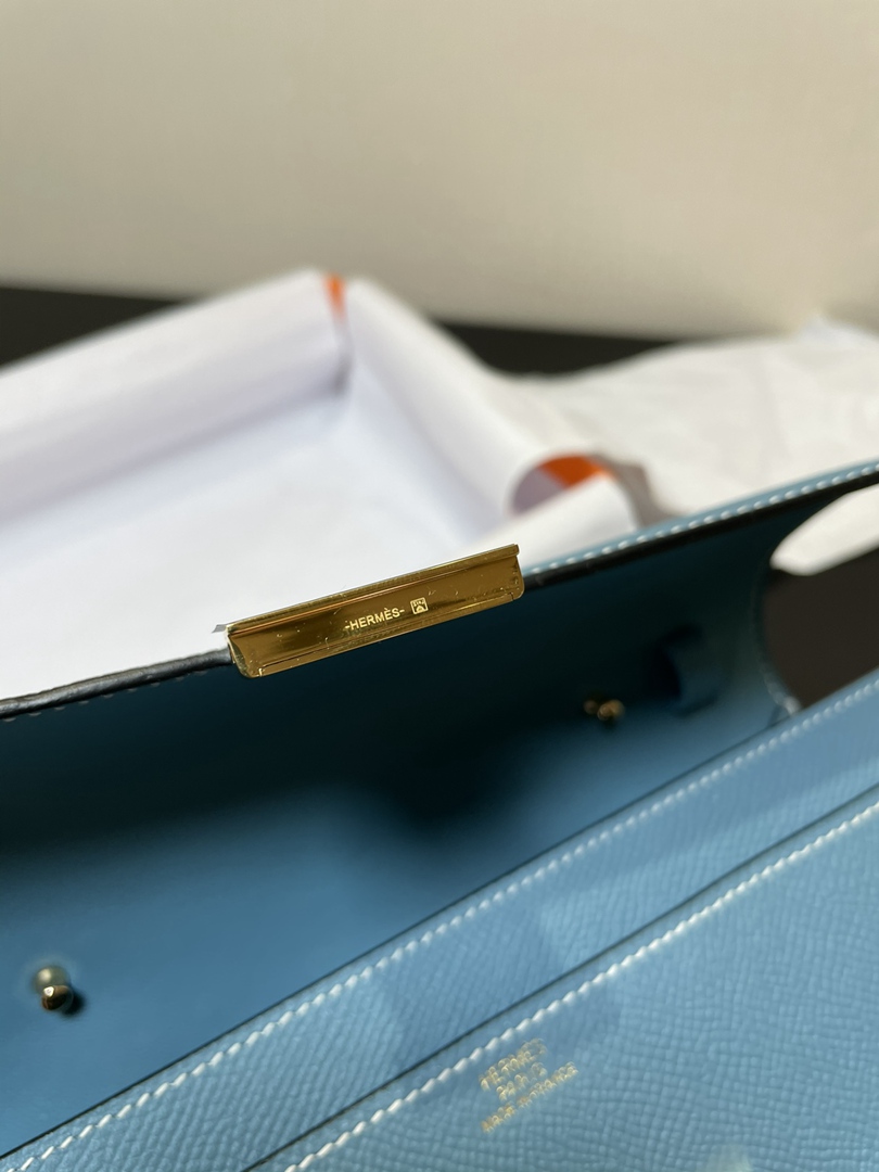 Hermes Constance Epsom Long To Go Wallet Bleu Jean Golden Hardware