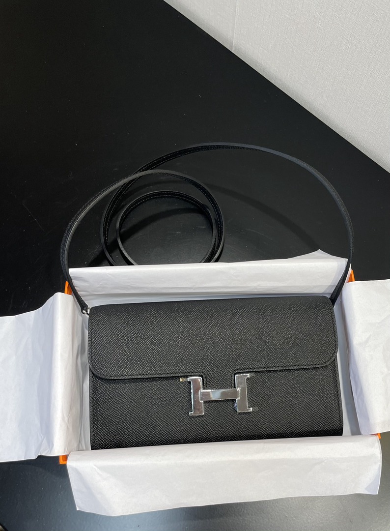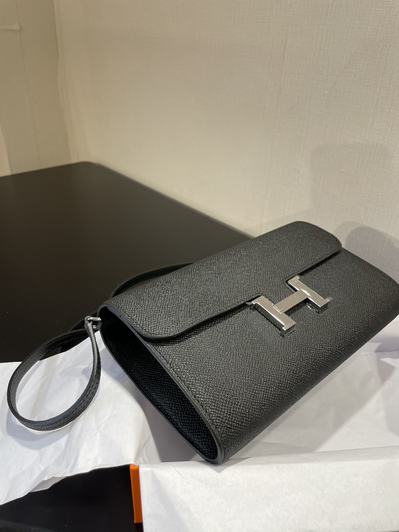 Hermes Constance Epsom Long To Go Wallet Noir Silver Hardware