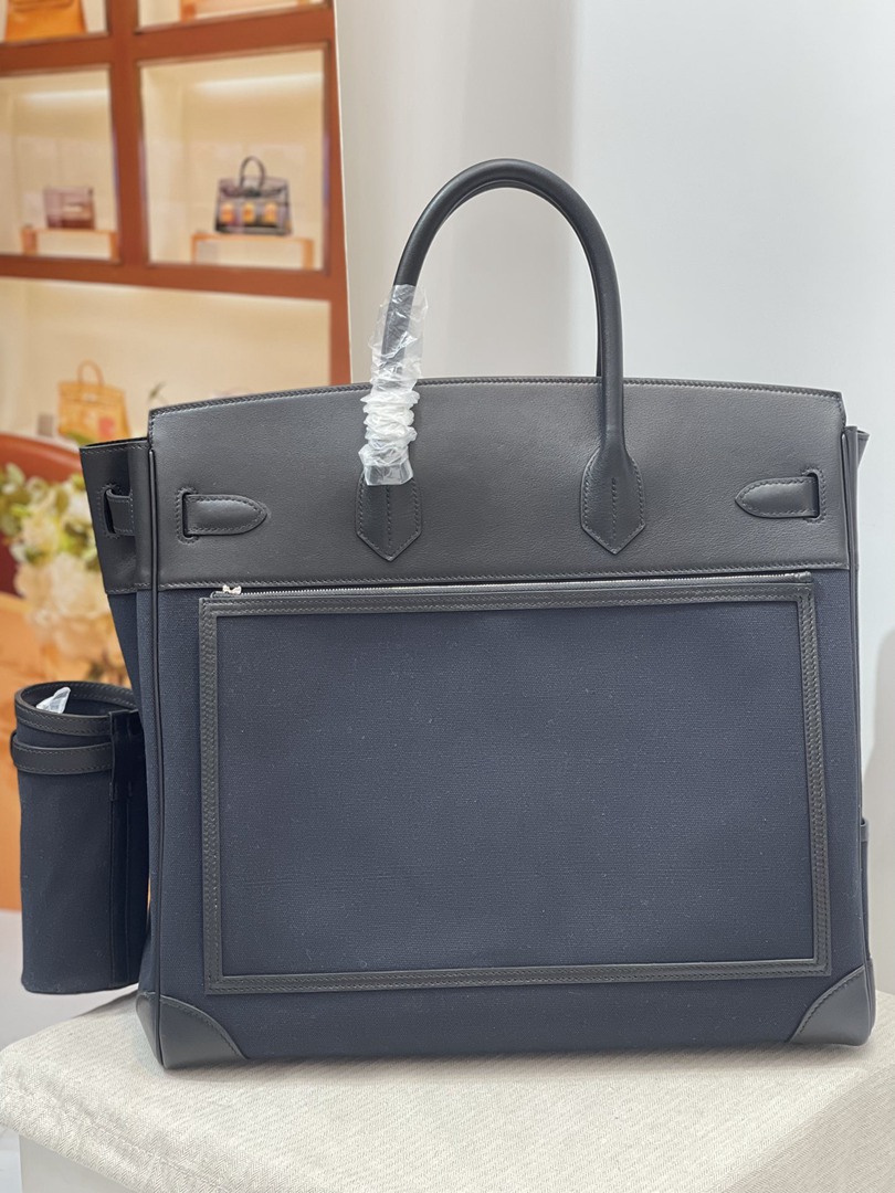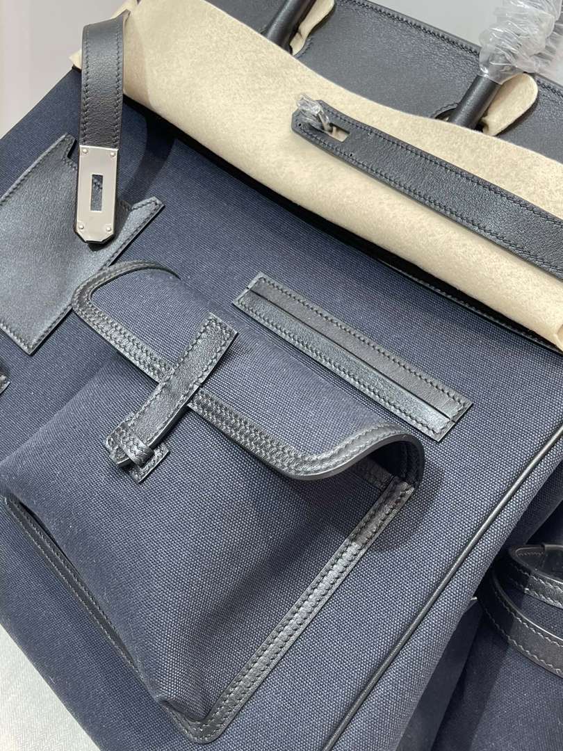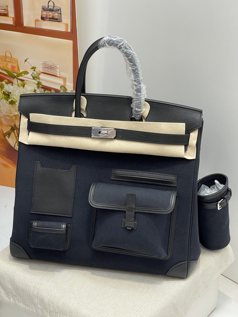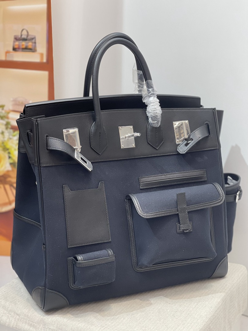 Hermes Birkin Cargo HAC 40 Bleu Marine canvas & Black Box Calf Palladium Hardware