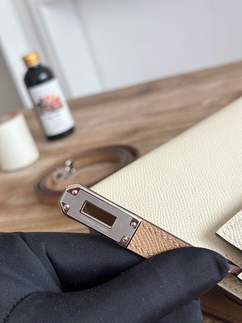 Hermes Mini Kelly II Handbag in Craie and Gris Pale Epsom Leather with Silver Hardware