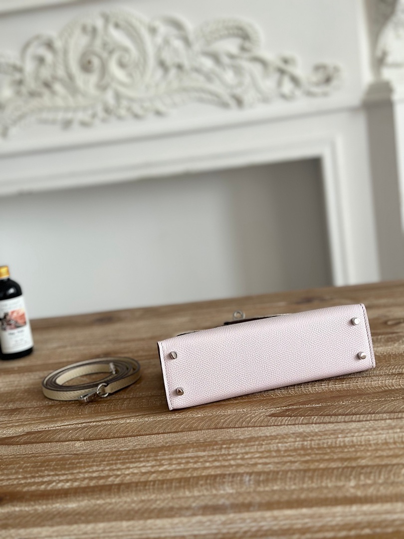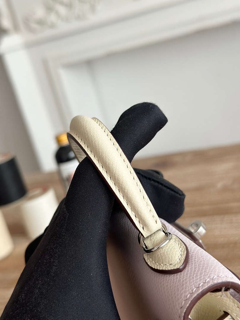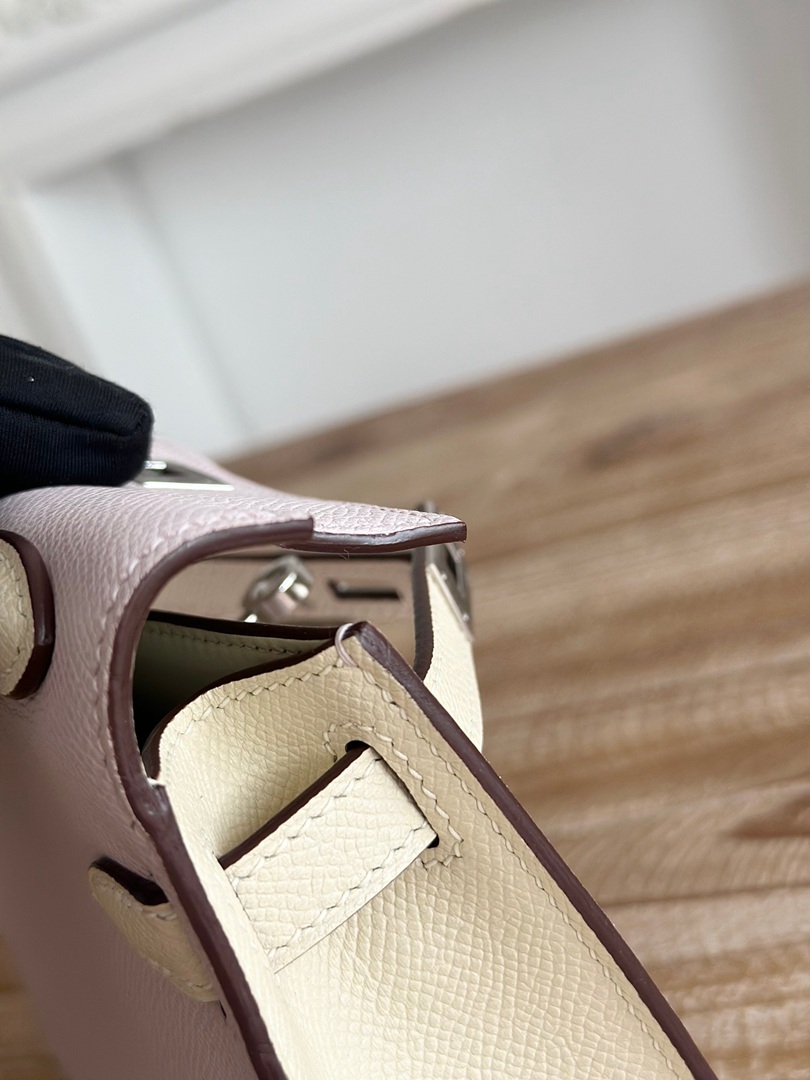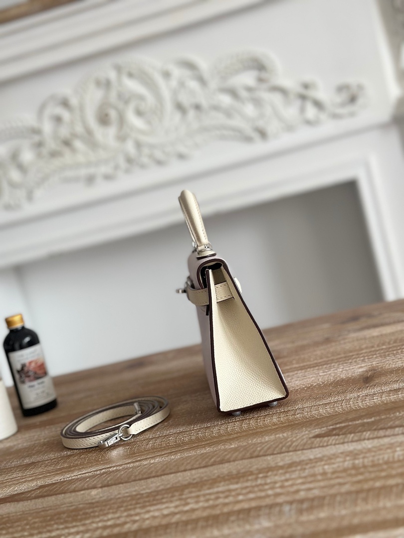 Hermes Mini Kelly II Handbag in Mauve Pale and Craie Epsom Leather with Silver Hardware