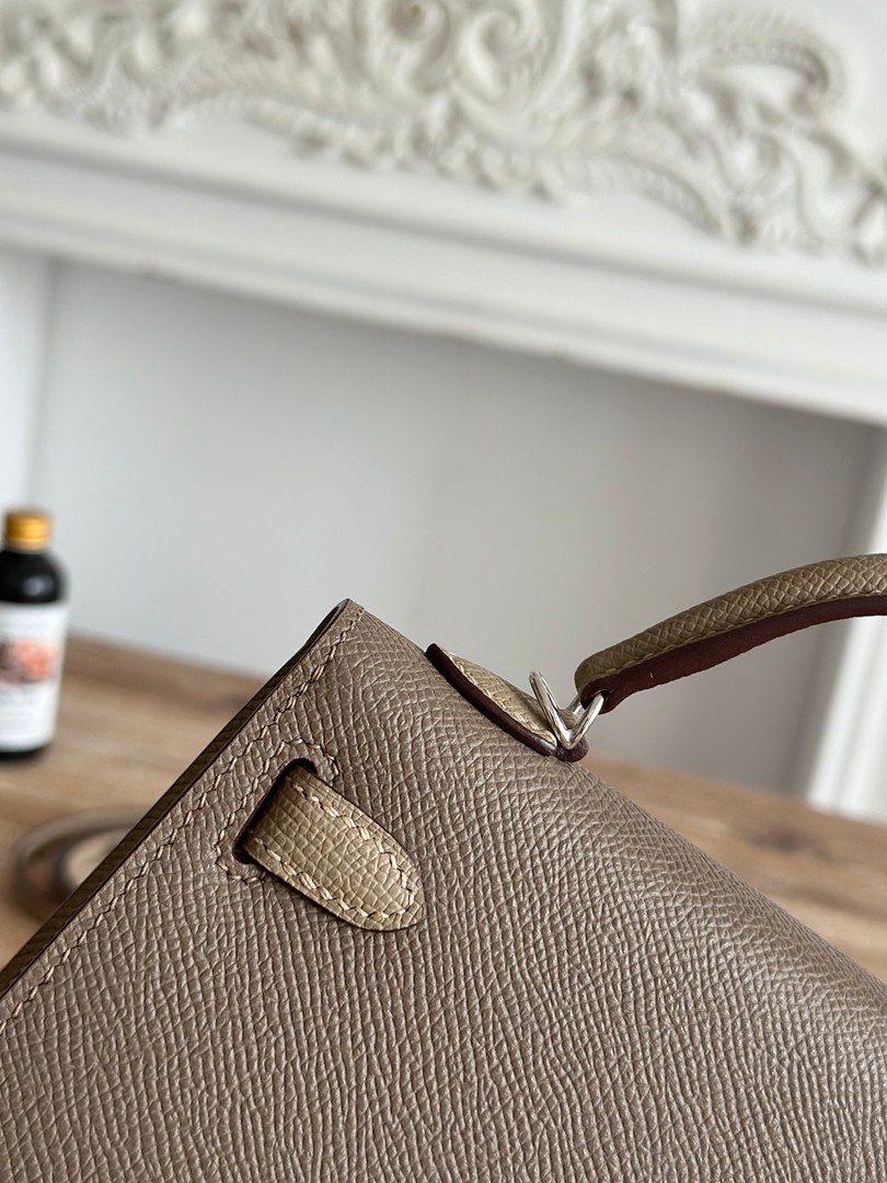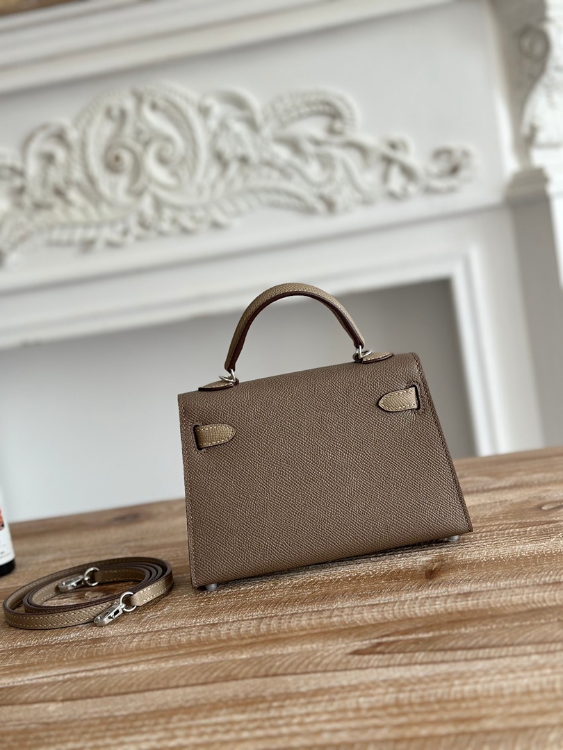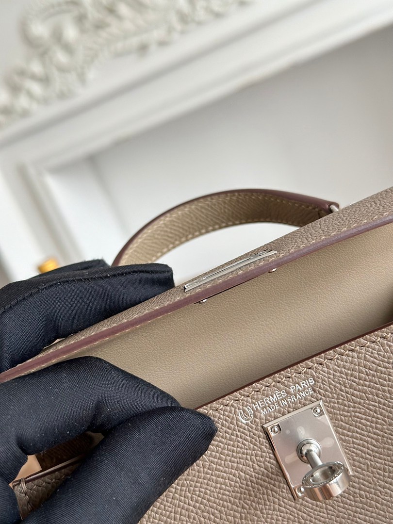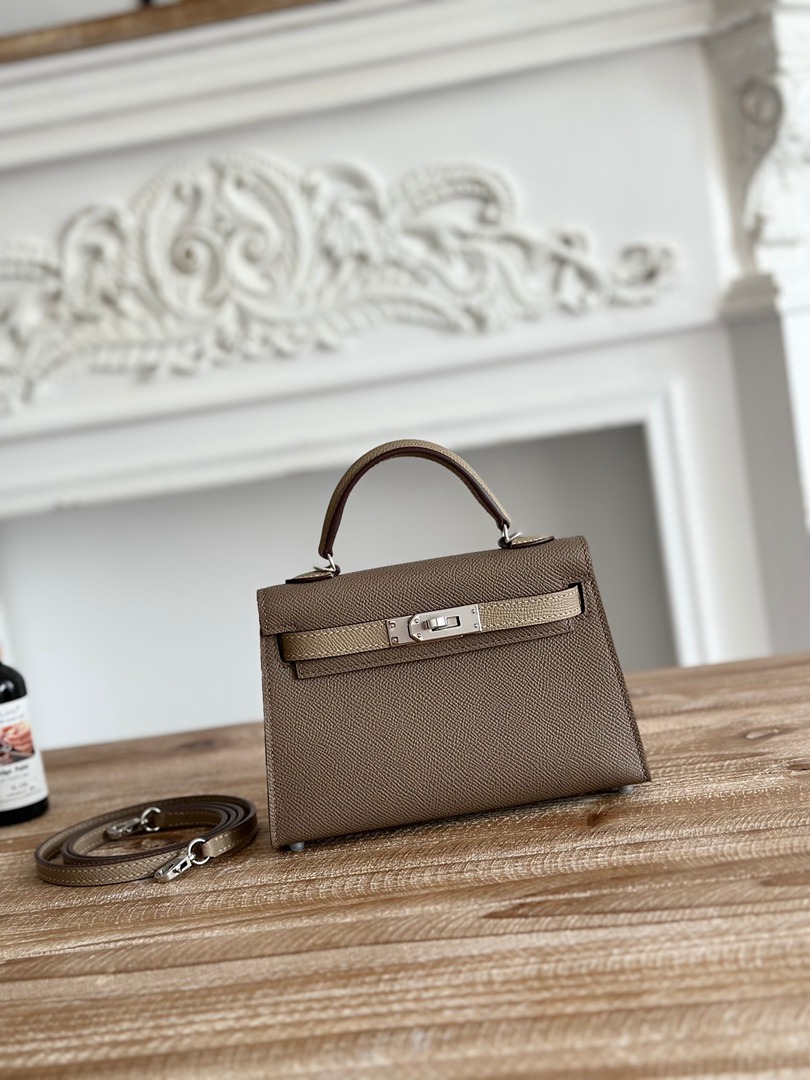Hermes Mini Kelly II Handbag in Etoupe and Gris Tourterelle Epsom Leather with Silver Hardware