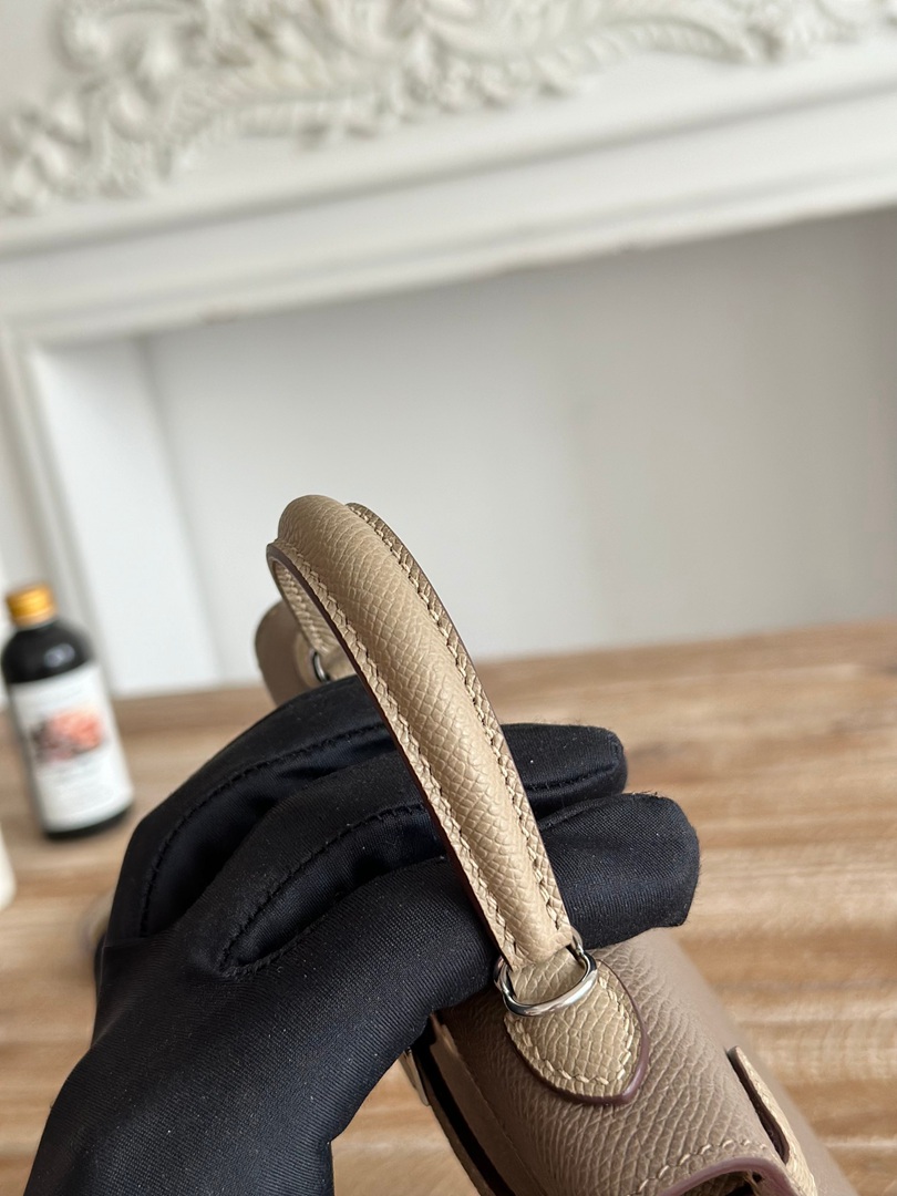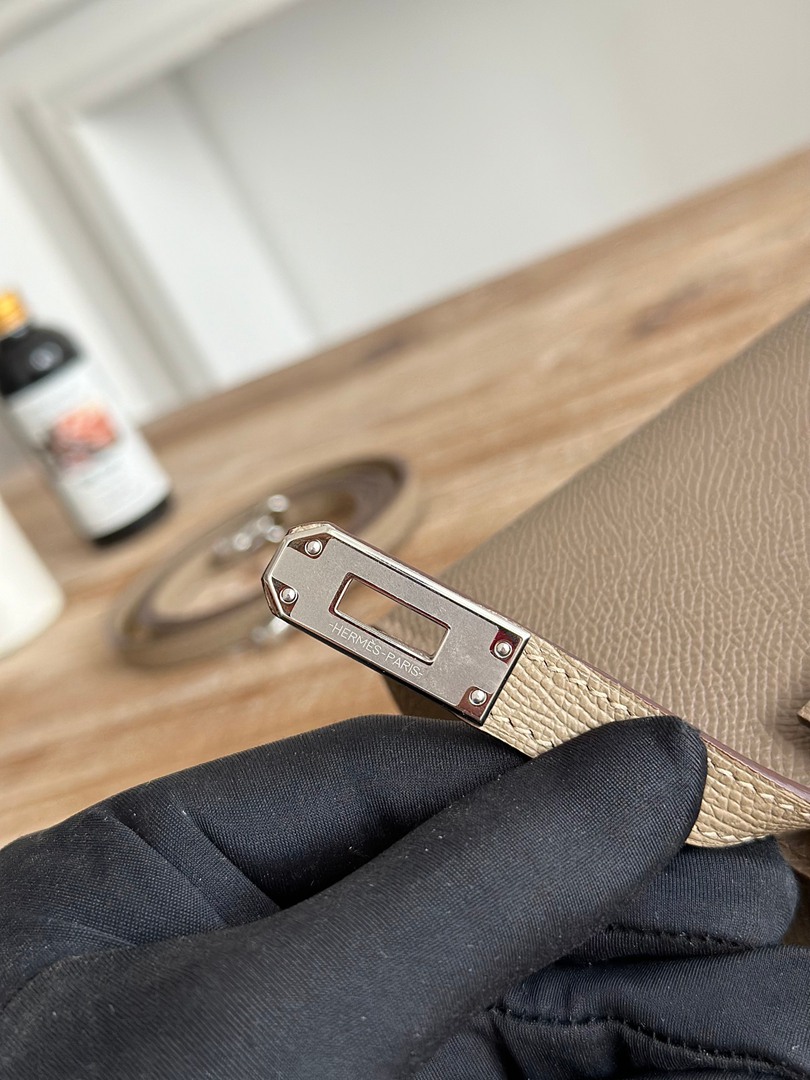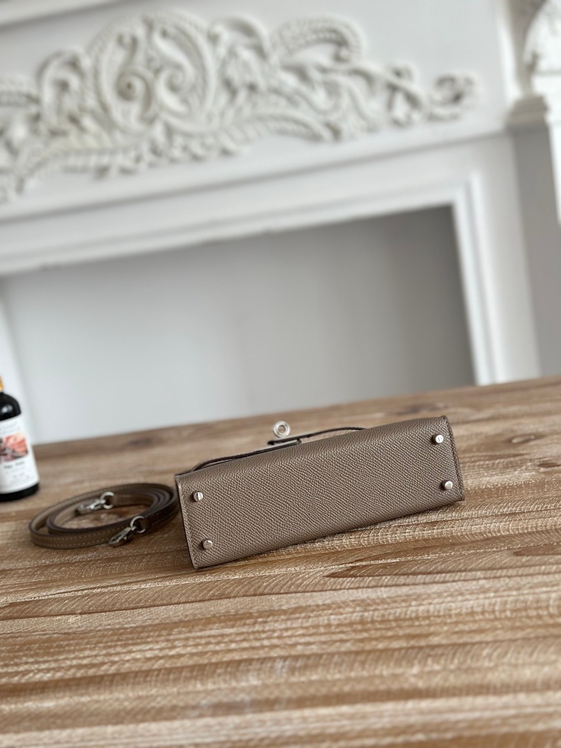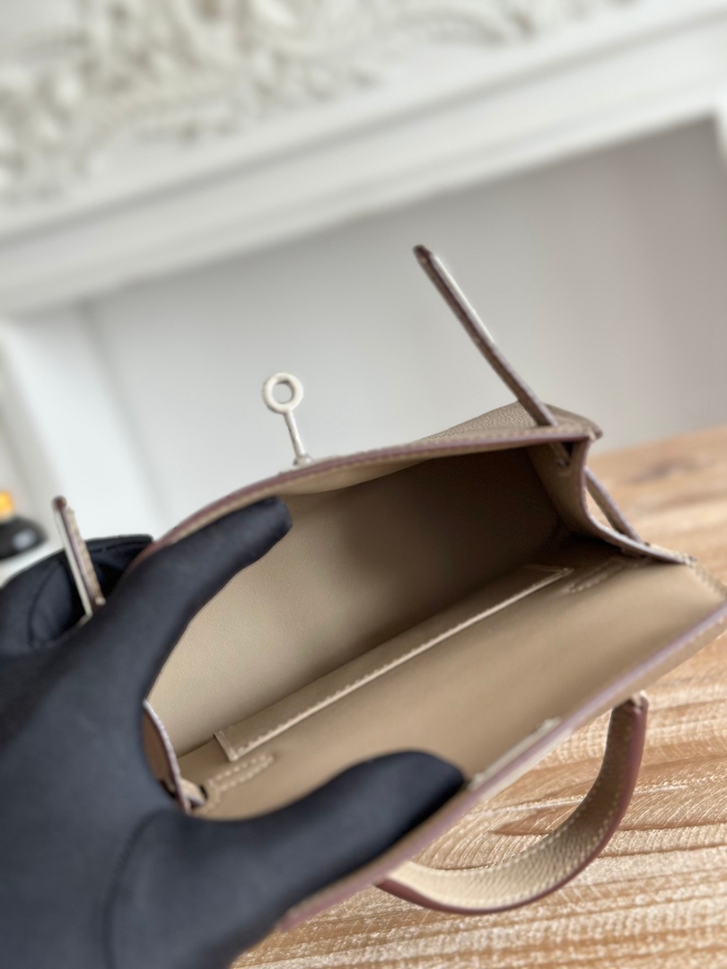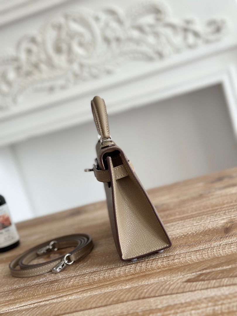 Hermes Mini Kelly II Handbag in Etoupe and Gris Tourterelle Epsom Leather with Silver Hardware