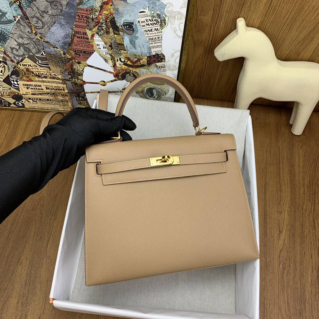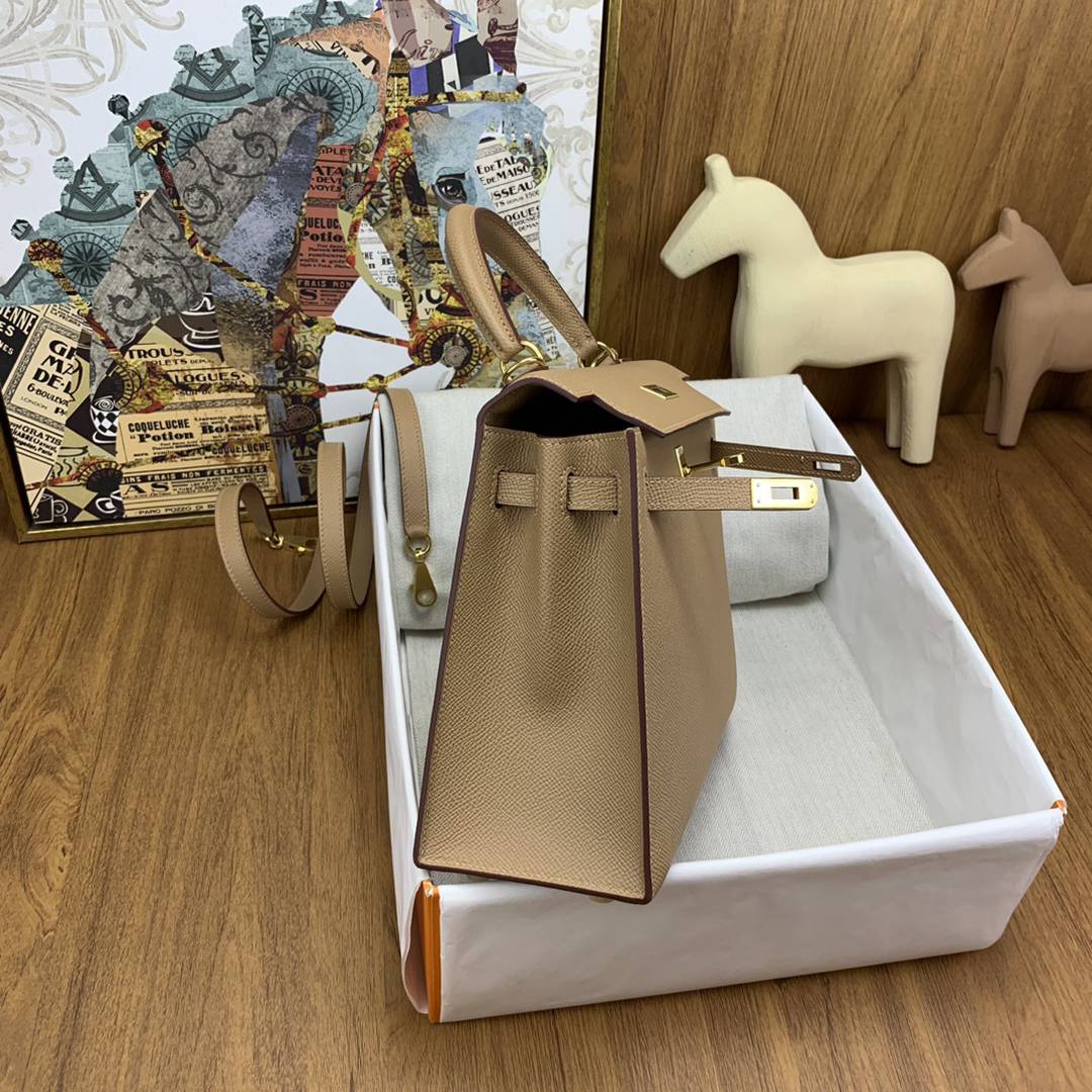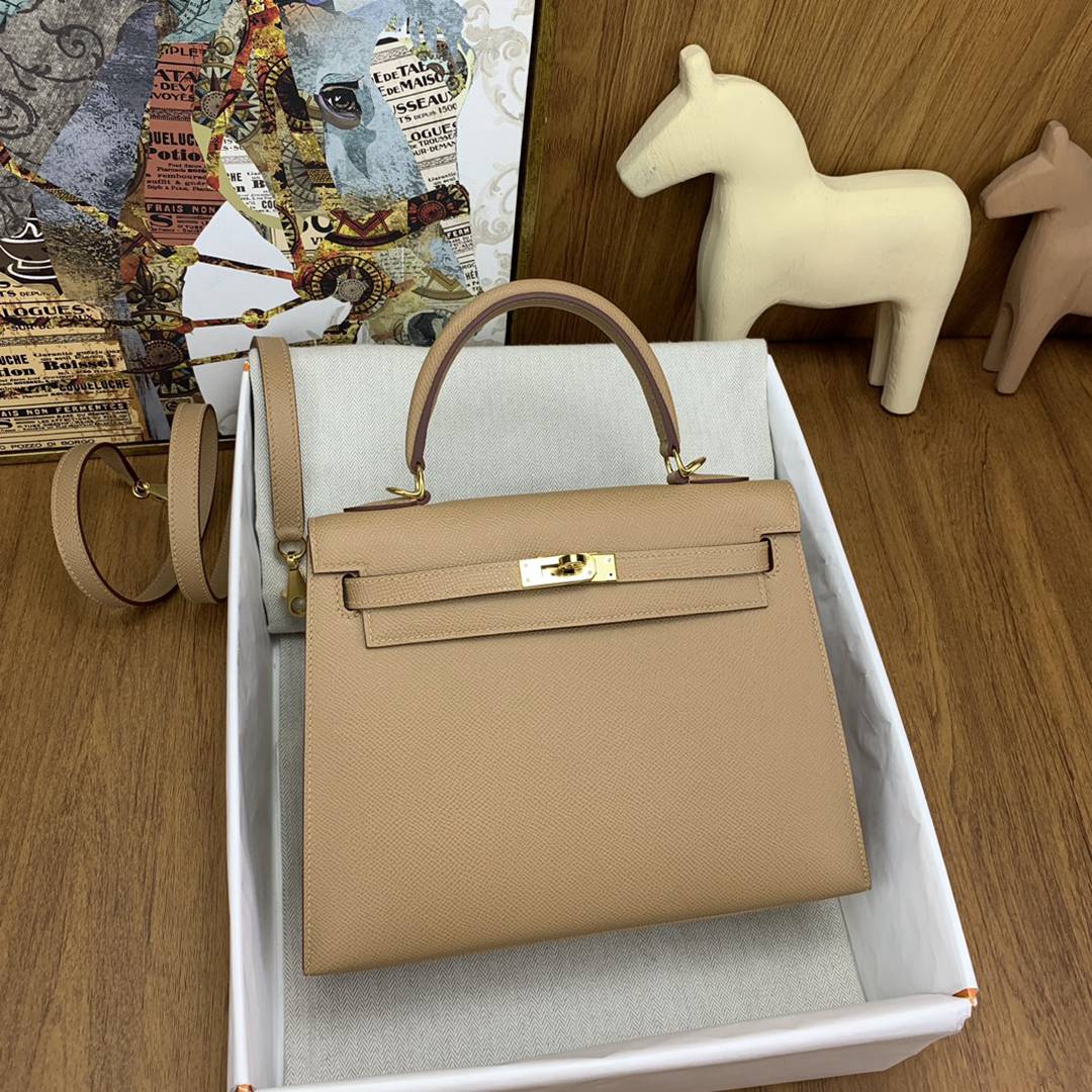 Hermes Kelly 25 Epsom Handbag in Chevre Gold