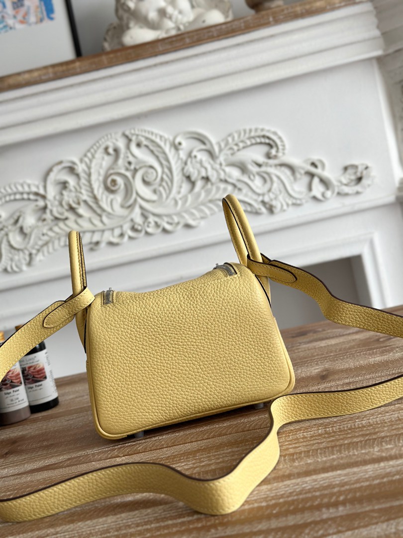 Hermes Mini Lindy Taurillon Clemence 19 Jaune Poussin