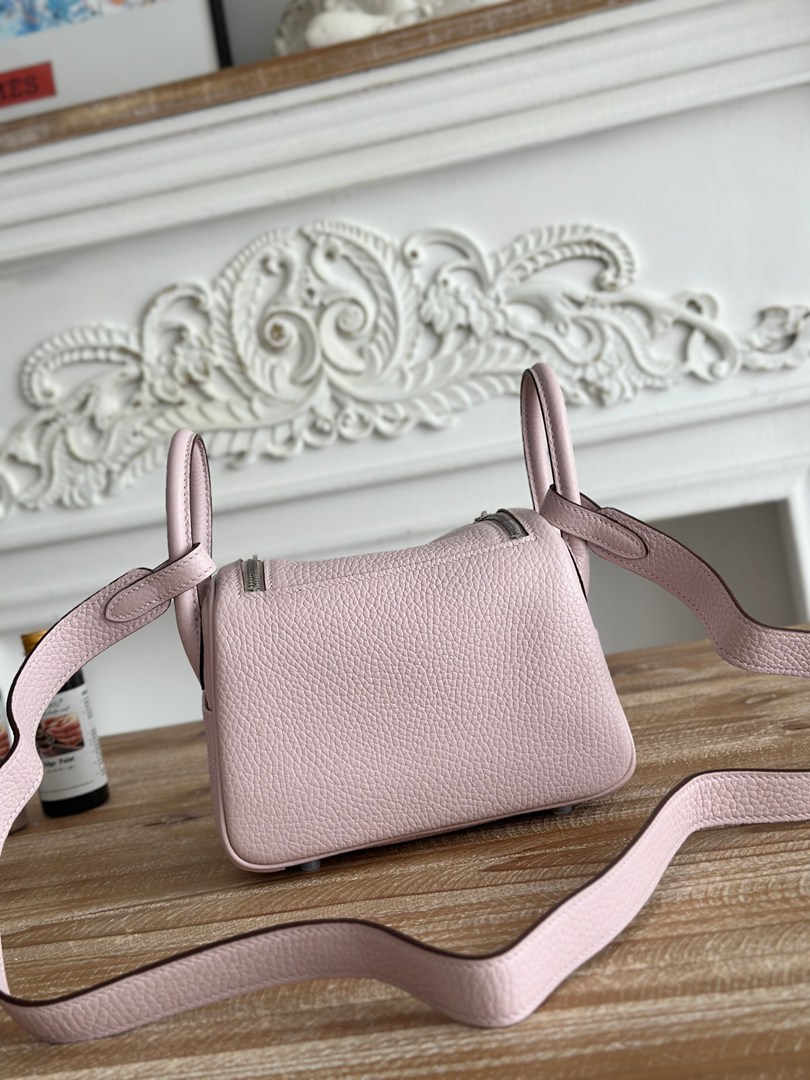Hermes Mini Lindy Taurillon Clemence 19 Mauve Pale