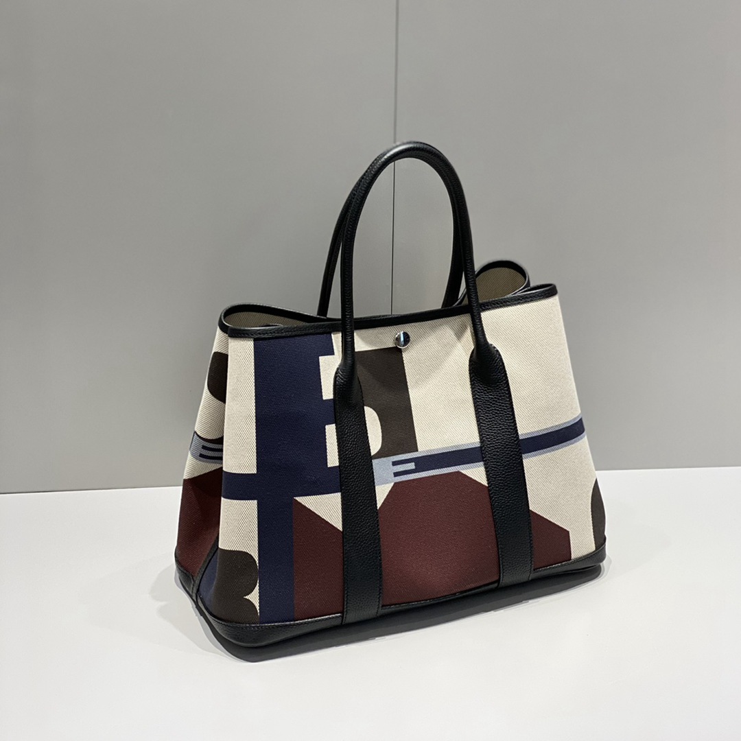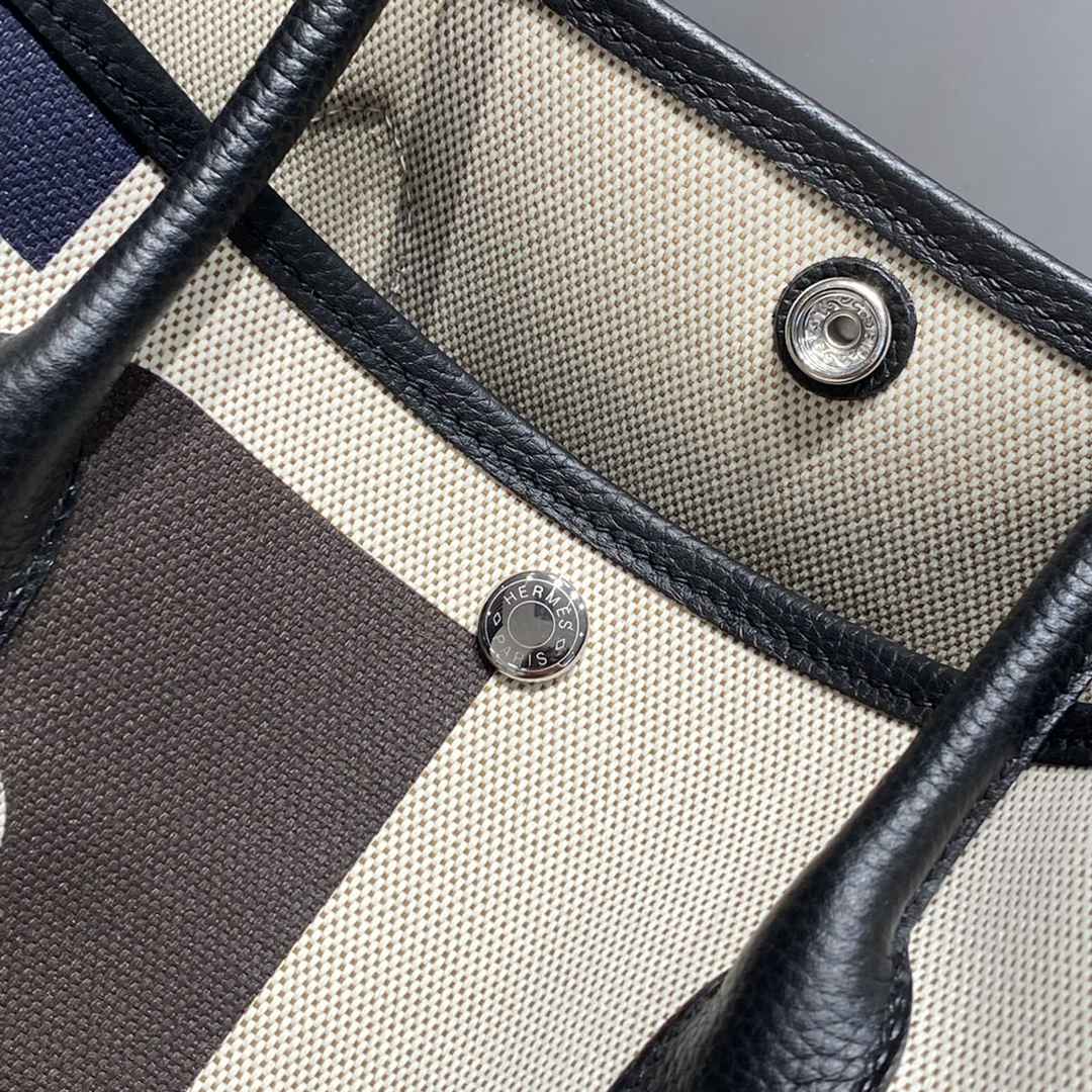 Hermes Garden Party GM Voyage Canvas Shoulder Bag Multiple Colors Blue Saphir